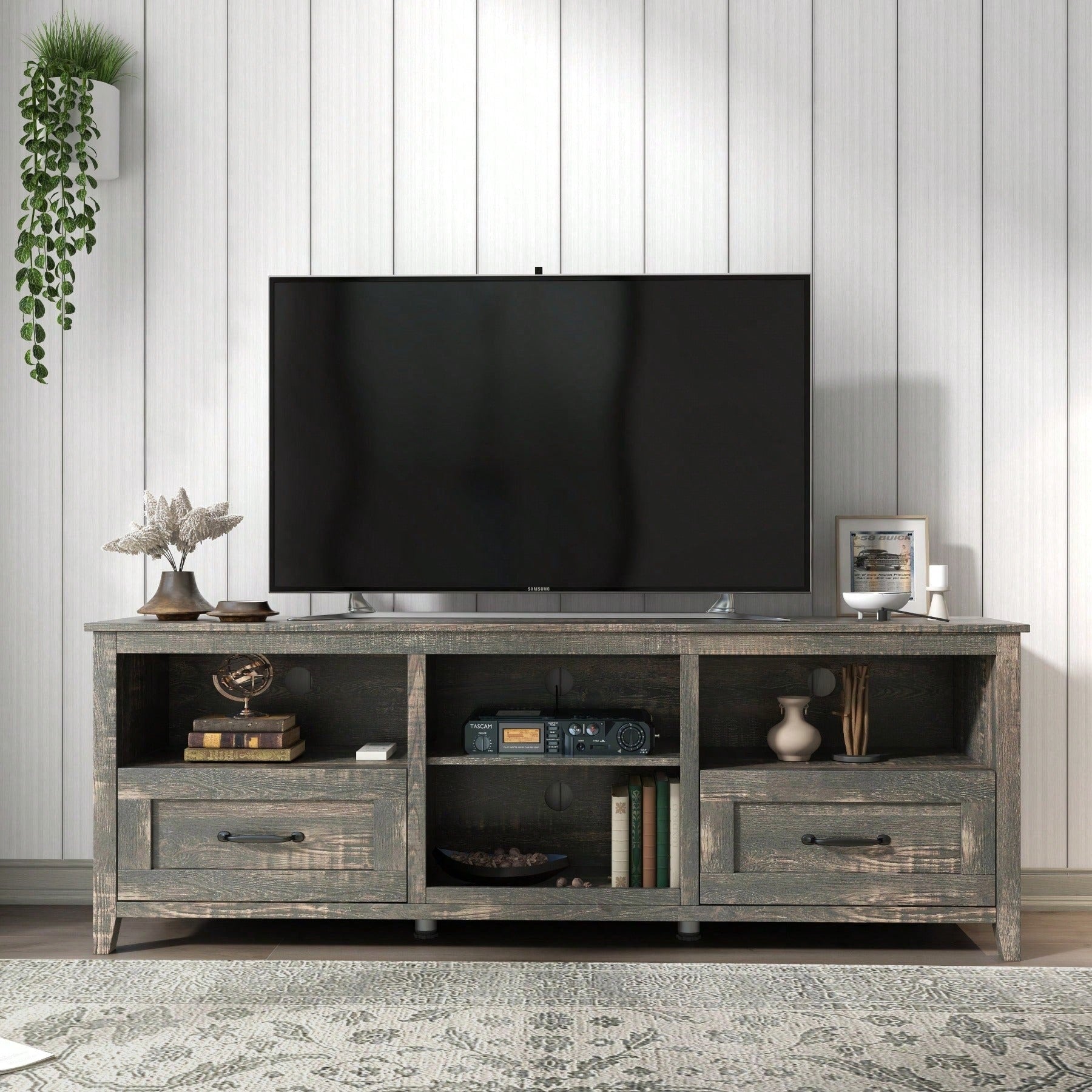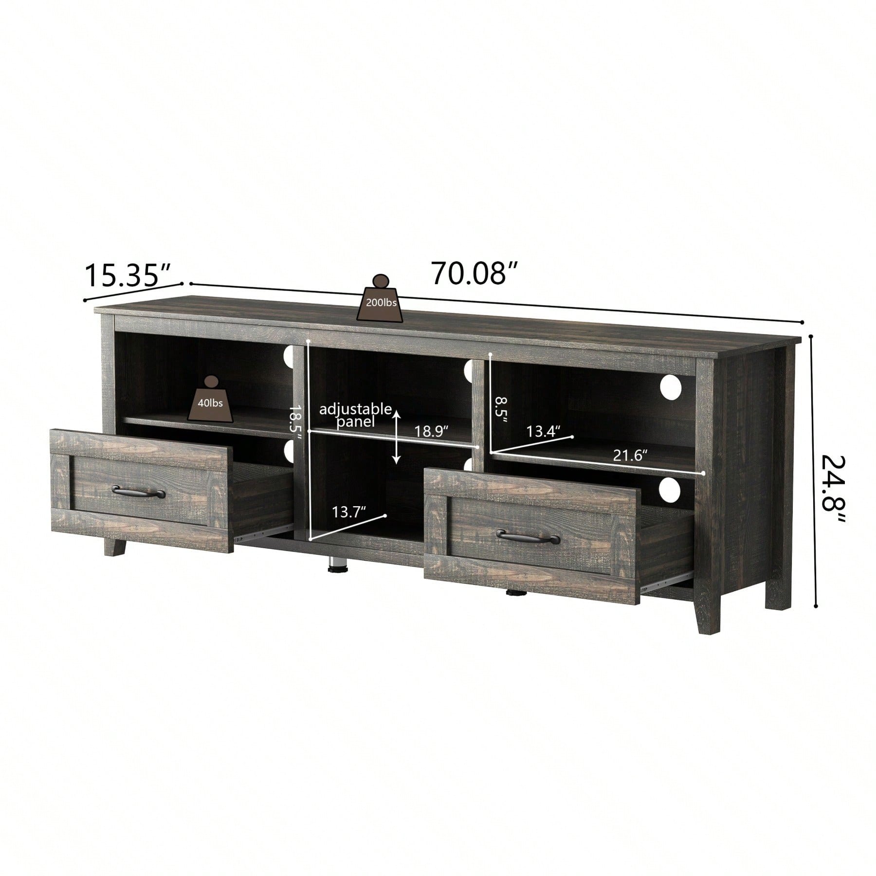 70 Inch Length TV Stand For Living Room And Bedroom, With 2 Drawers And 4 High-Capacity Storage Compartment