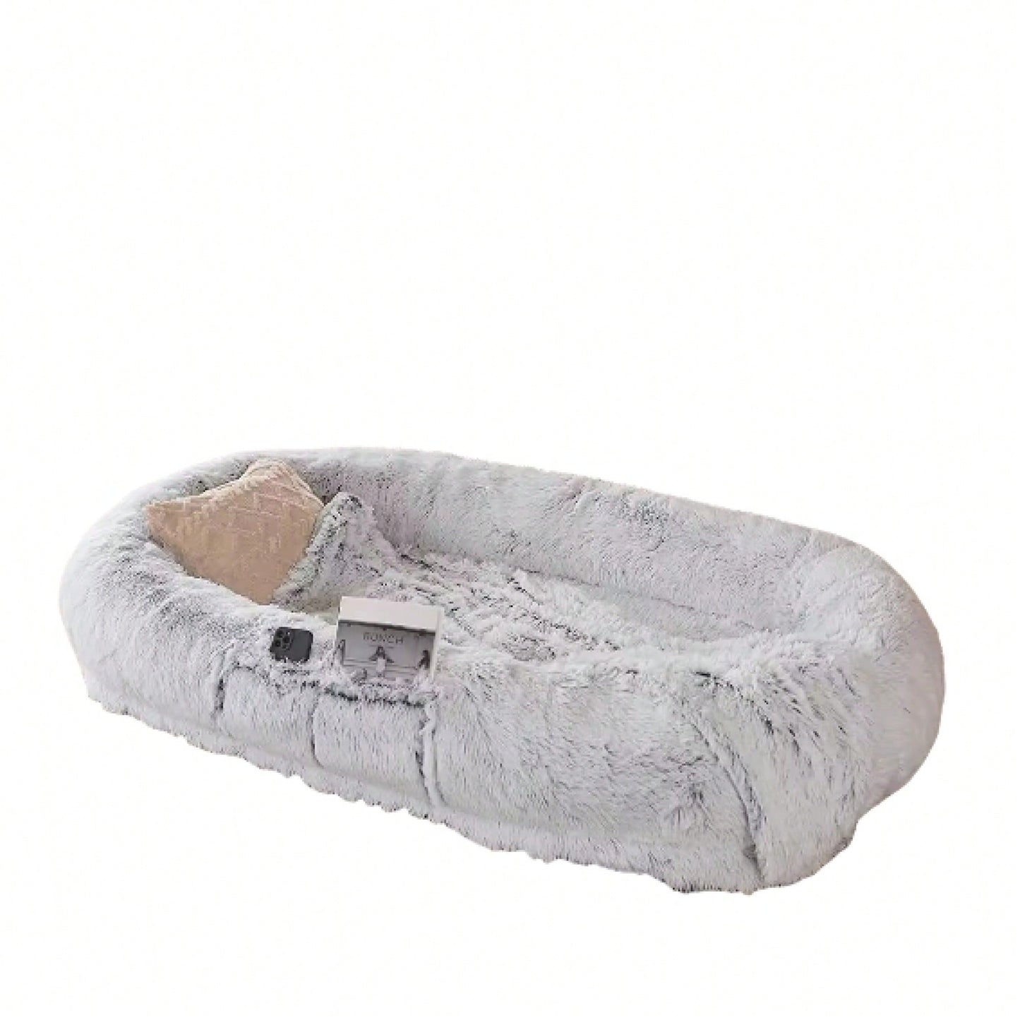 71''x40''x12'' Washable Faux Fur Human And Dog Bed - Orthopedic Comfort For Napping And Relaxing - Stylish Grey Design