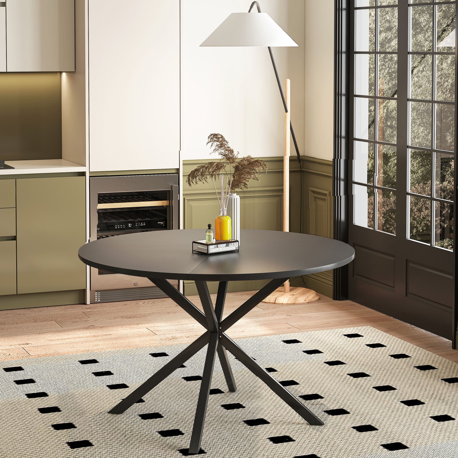 47.24'' Modern Cross Leg Round Dining Table, Black Top Occasional Table, Two Piece Removable Top, Matte Finish Iron Legs