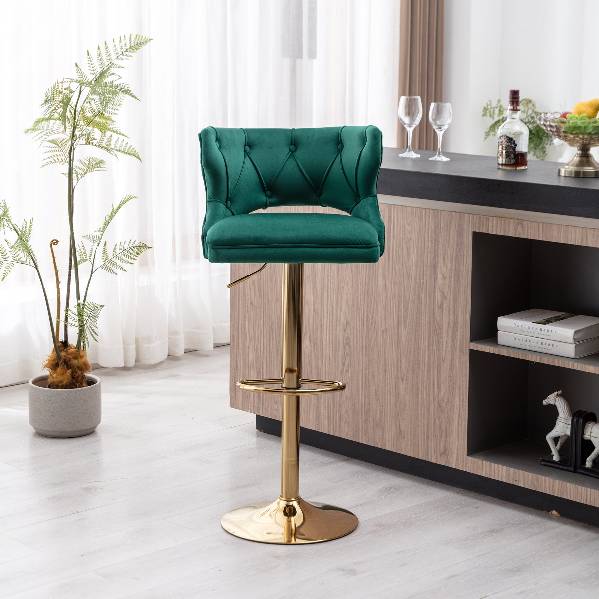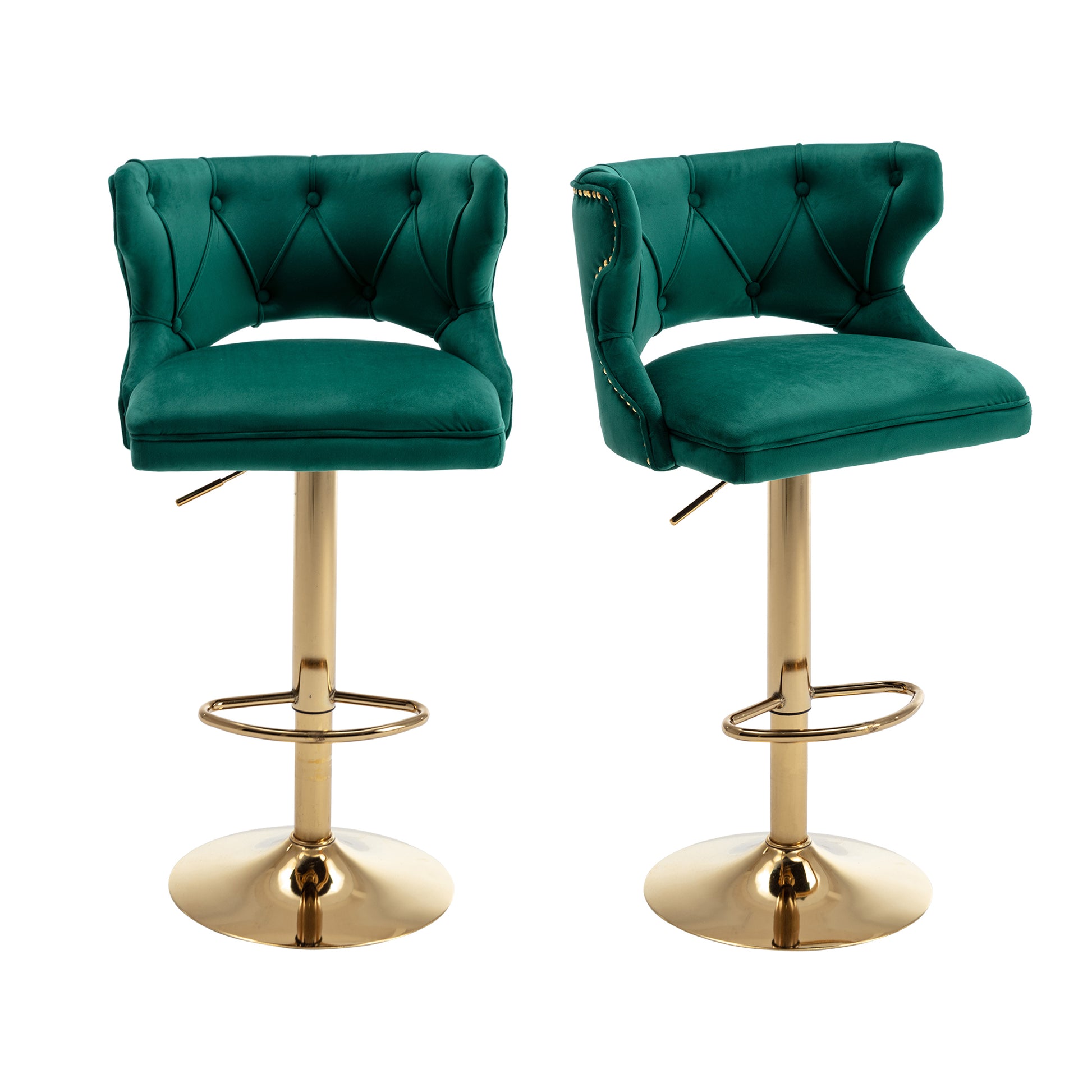 Bar Stools With Back and Footrest Counter Height Dining Chairs-Velvet Green-2PCS/SET