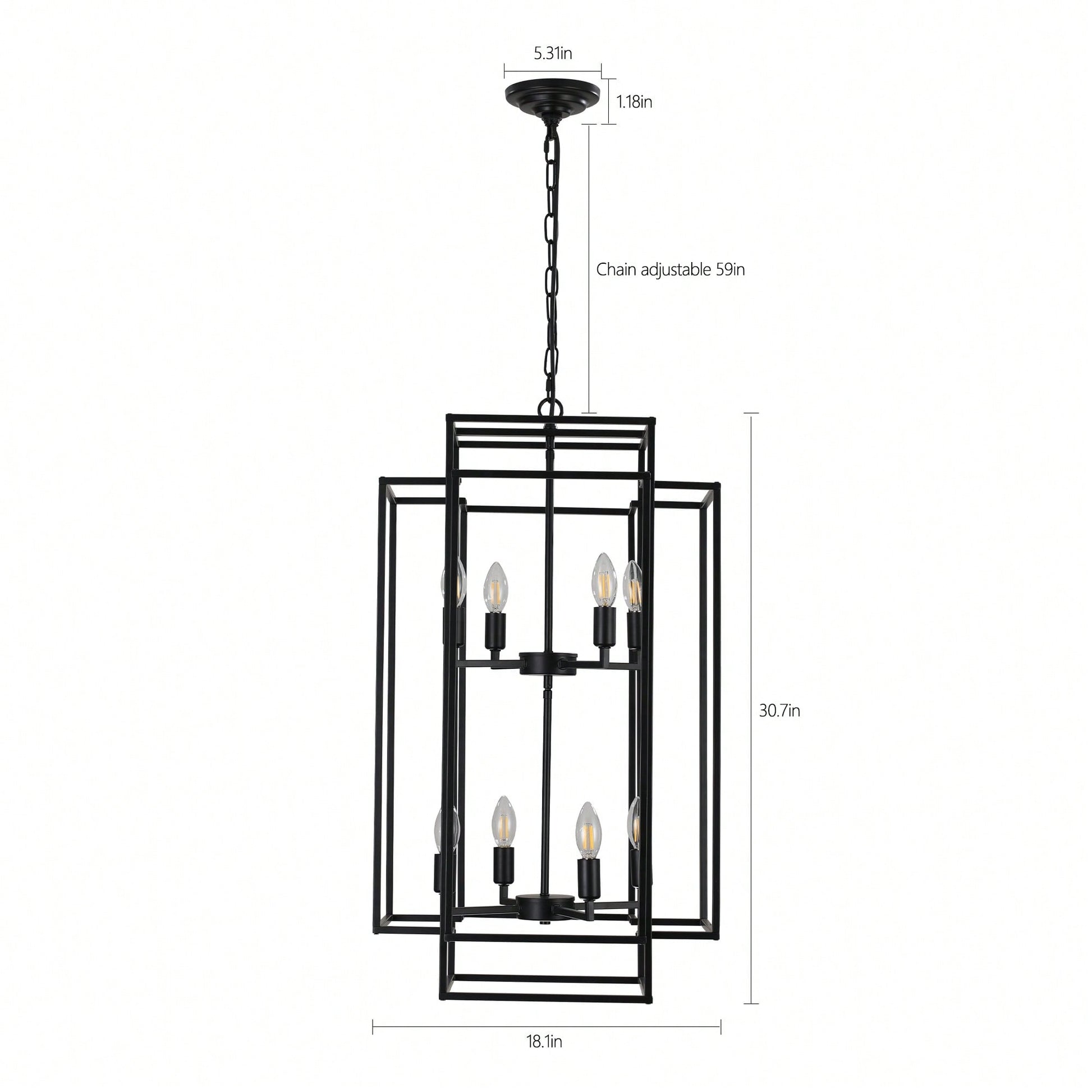 8-Light Black Tiered Lantern Pendant Chandelier Industrial Farmhouse Hanging Light Fixture