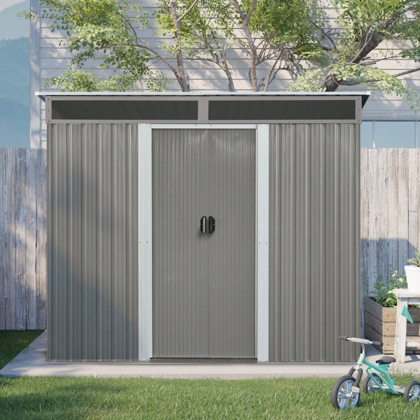8ft X 6ft Outdoor Metal Storage Shed With Lockable Sliding Doors And Transparent Panel For Garden And Lawn Use Gray