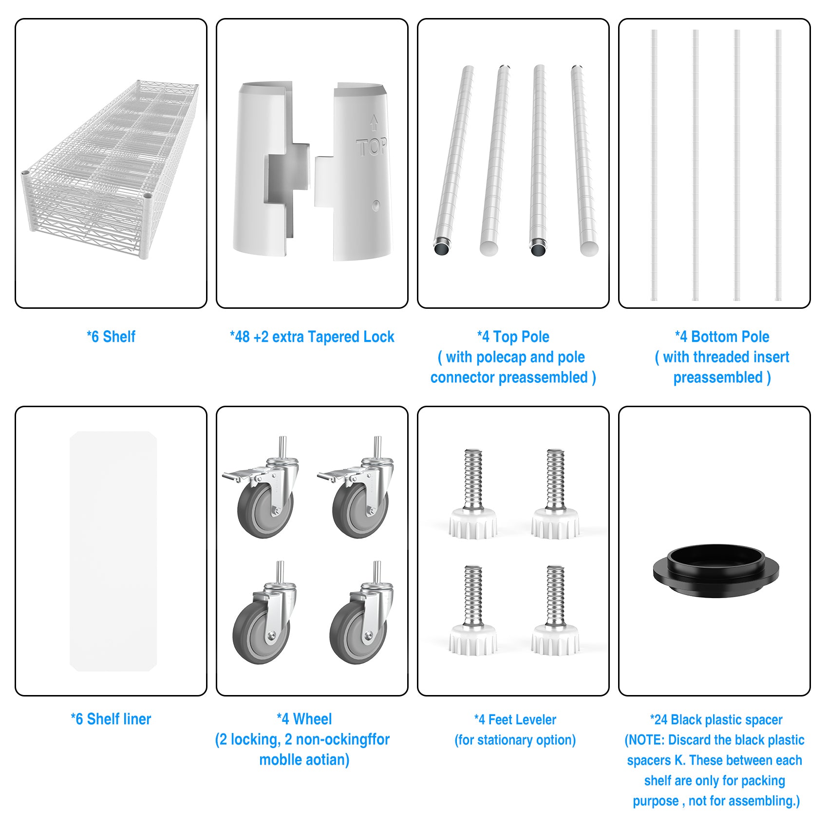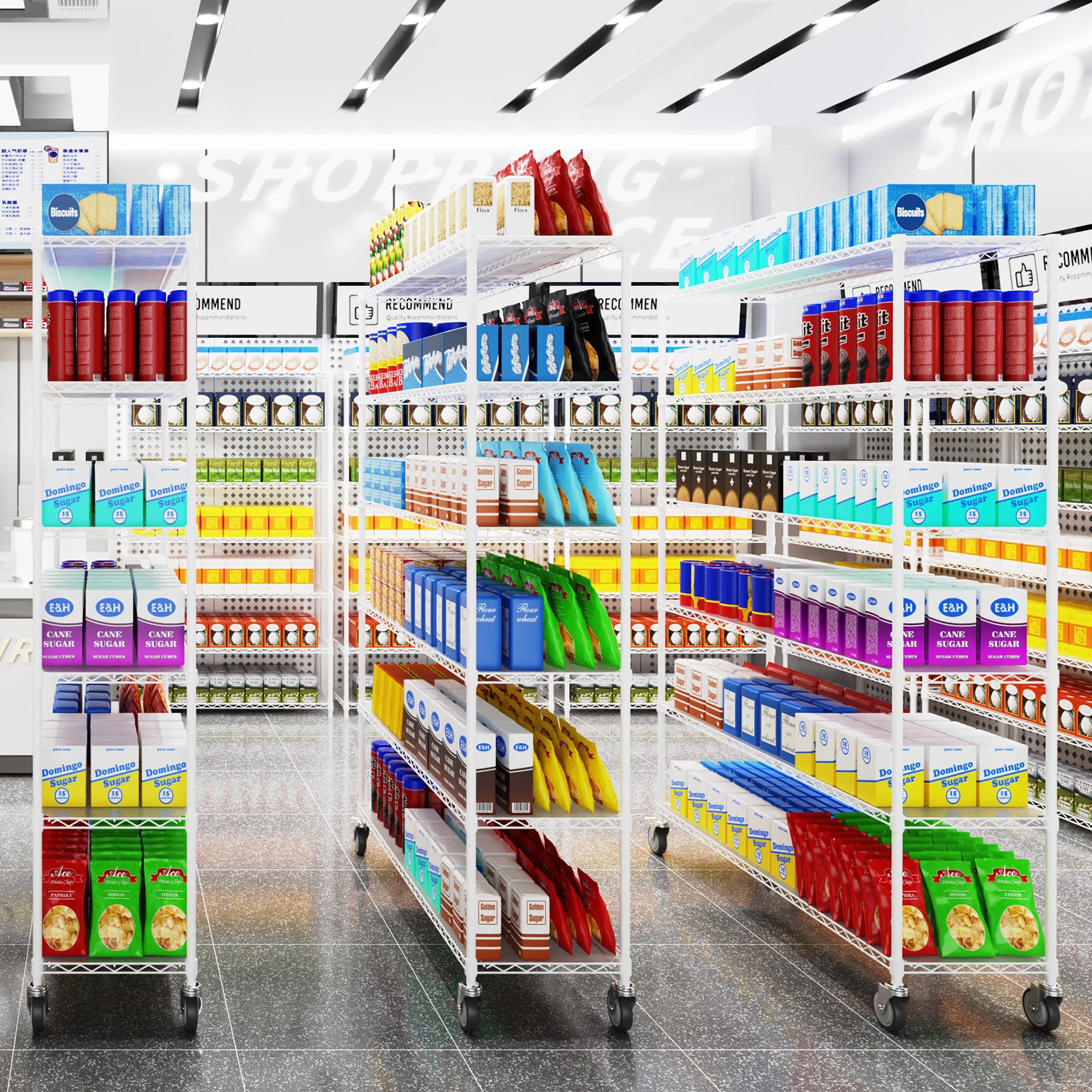 6 Tier Wire Shelving Unit Heavy Duty Adjustable Metal Garage Storage Shelves with Wheels 6000 LBS Capacity White