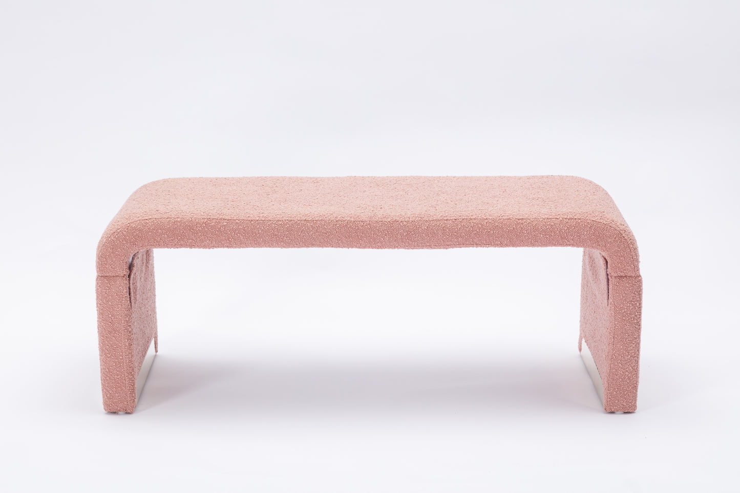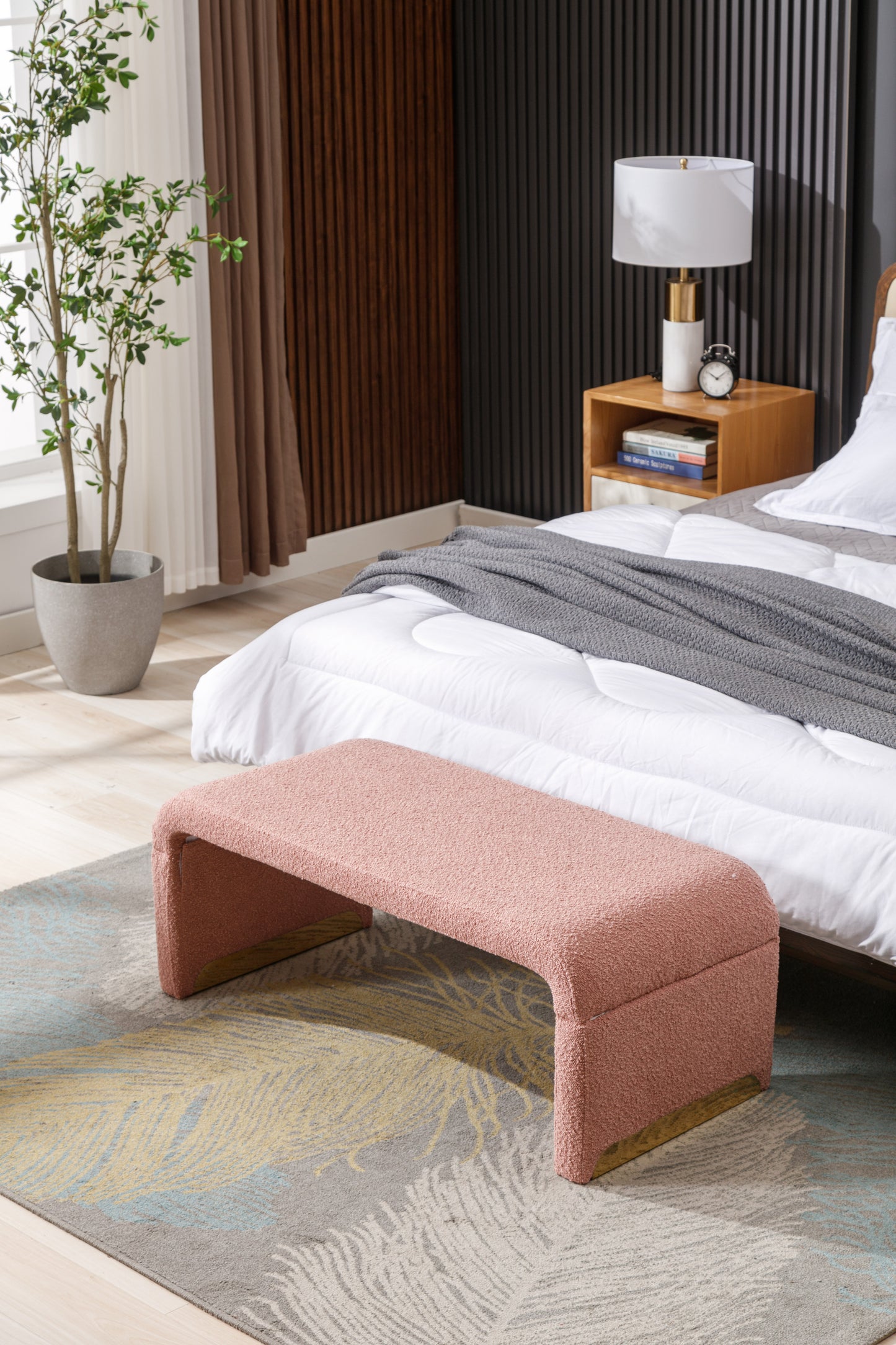 Boucle Fabric Loveseat Ottoman Footstool Bedroom Bench Shoe Bench with Gold Metal Legs Coffee Pink
