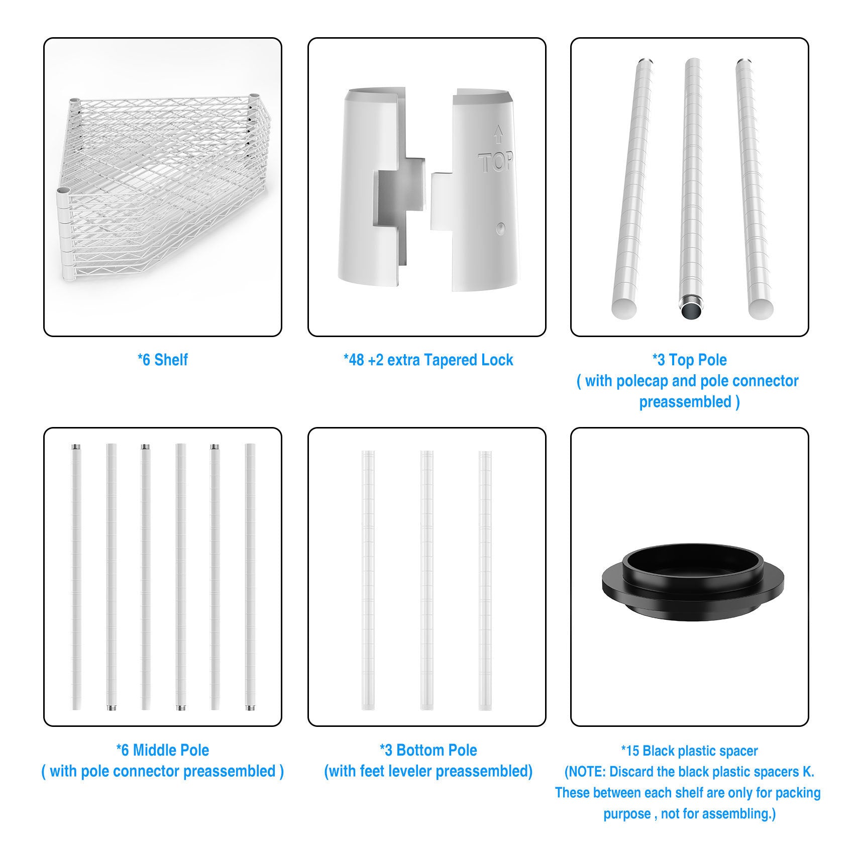 - 6-tier design provides large storage capacity with a maximum load of 600lbs