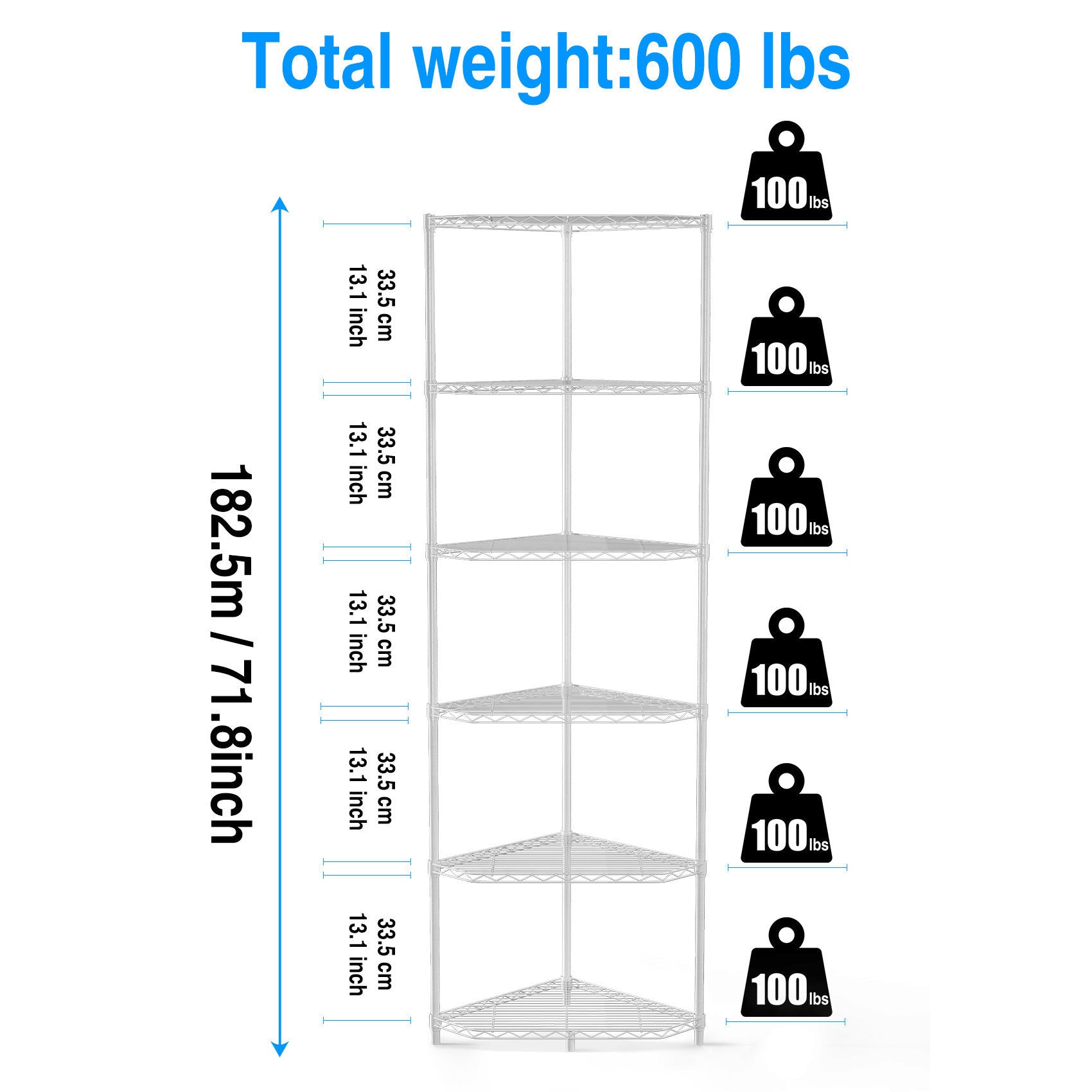 6 Tier Corner Wire Shelf Rack Adjustable Metal Heavy Duty Free Standing Storage Display for Bathroom Living Room Kitchen White