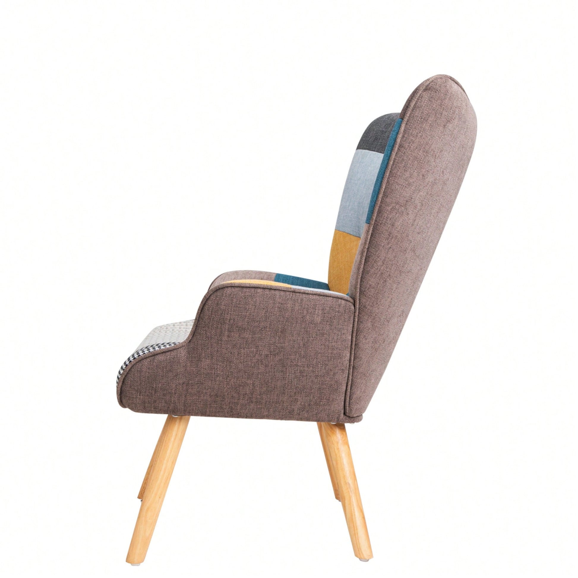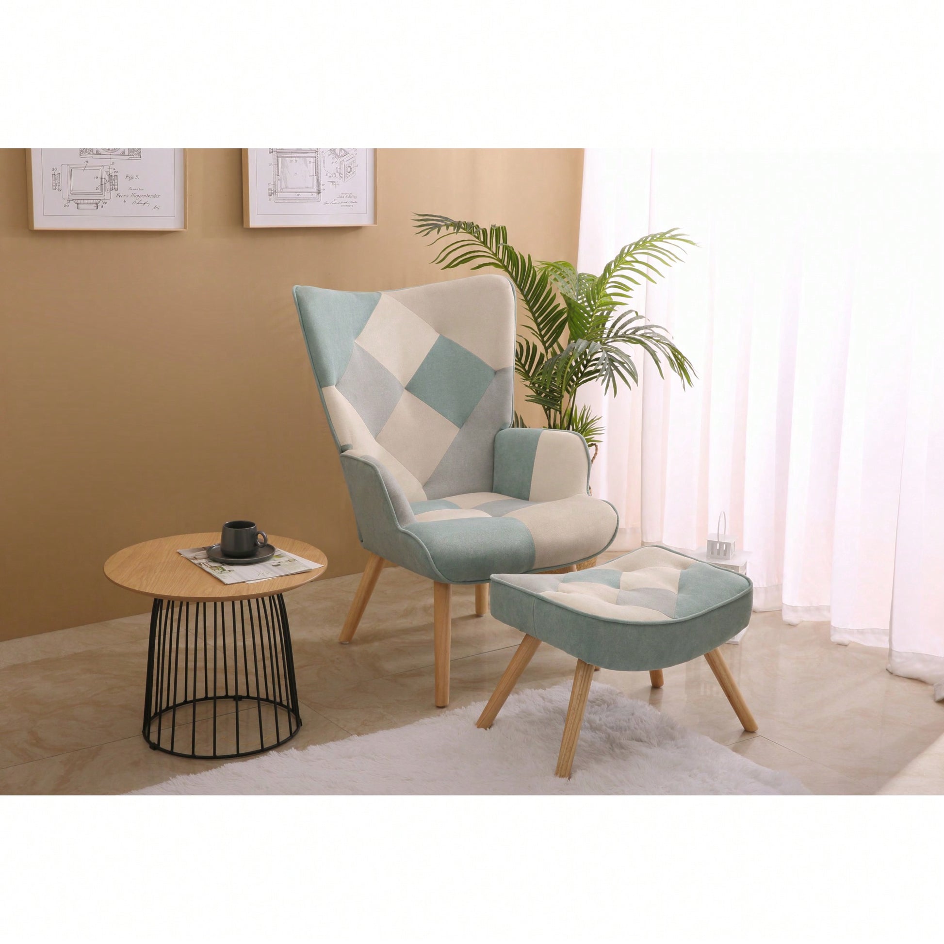 Accent Chair And Ottoman Set For Living Room And Bedroom Comfortable Side Armchair With Creative Splicing Fabric Design
