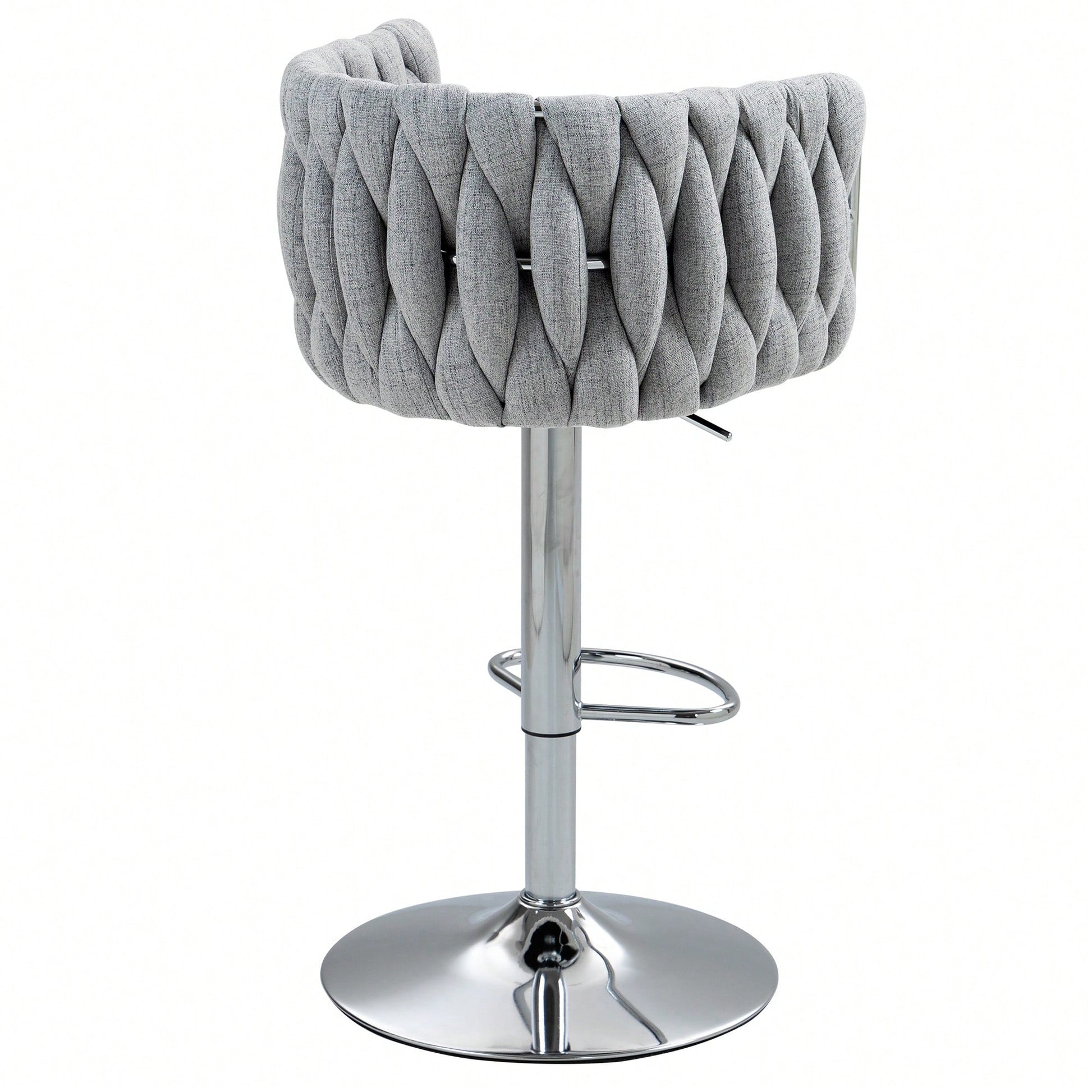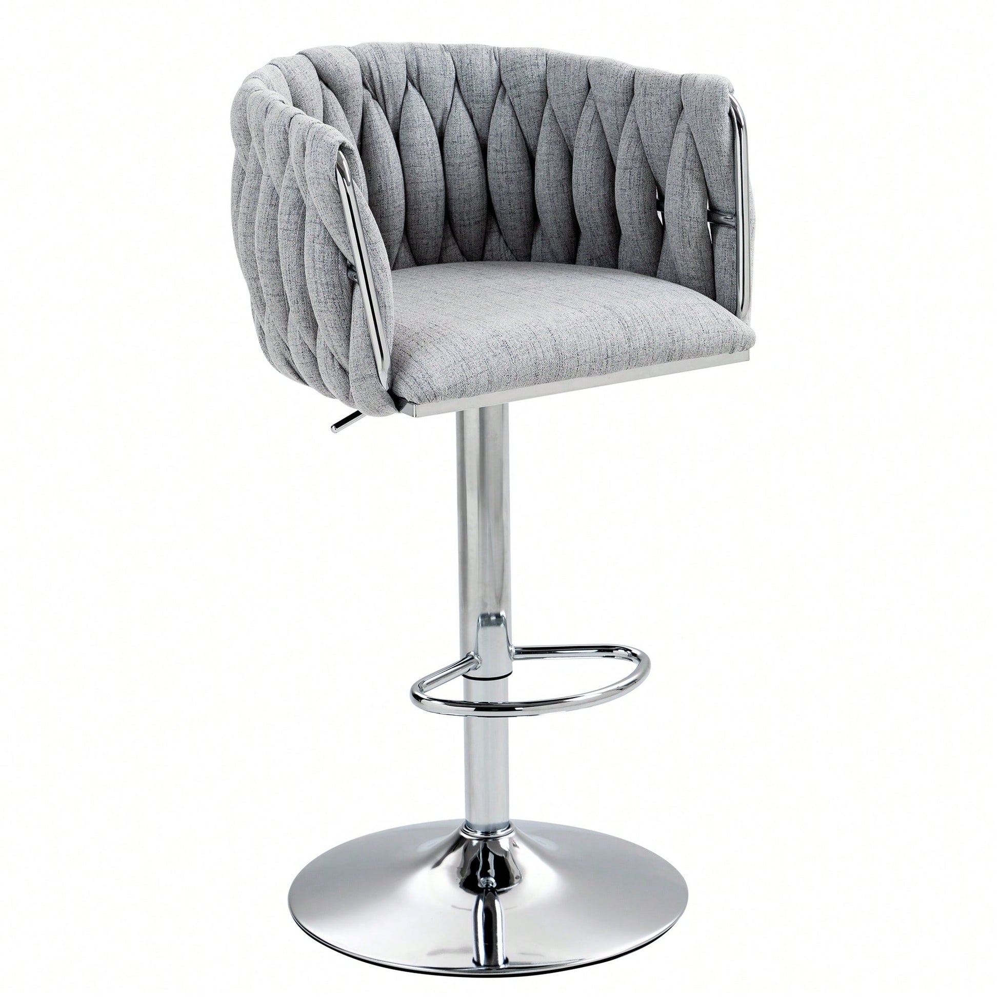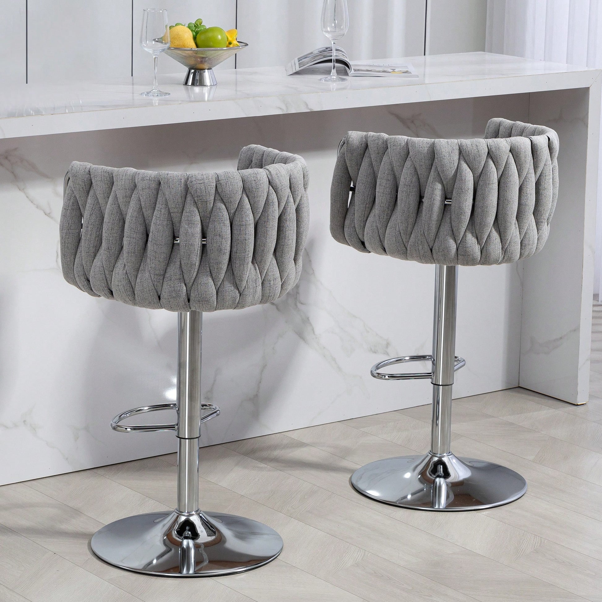 This set of 2 swivel bar stools combines a sleek silver metal frame with a stylish woven fabric cover, making it a perfect addition to restaurants, kitchens, cafes, and bars. The stools are designed for versatility, featuring adjustable height and a 360° swivel function to accommodate different needs and preferences. The high-density sponge cushioning ensures comfort, while the sturdy construction provides stability and support. Easy to assemble in about 15 minutes, these modern bar stools enhance any decor theme and create an inviting atmosphere in your space.