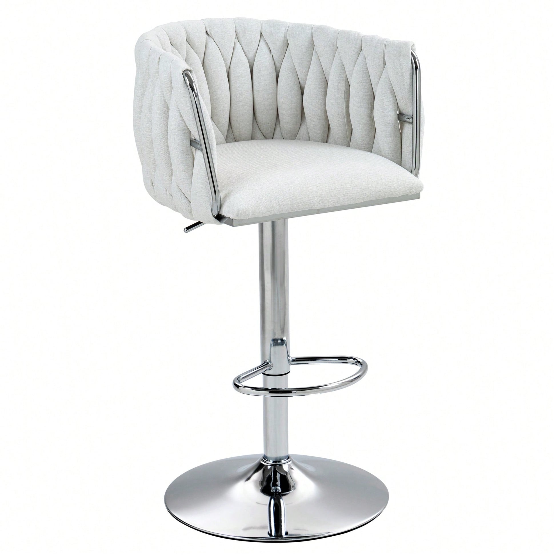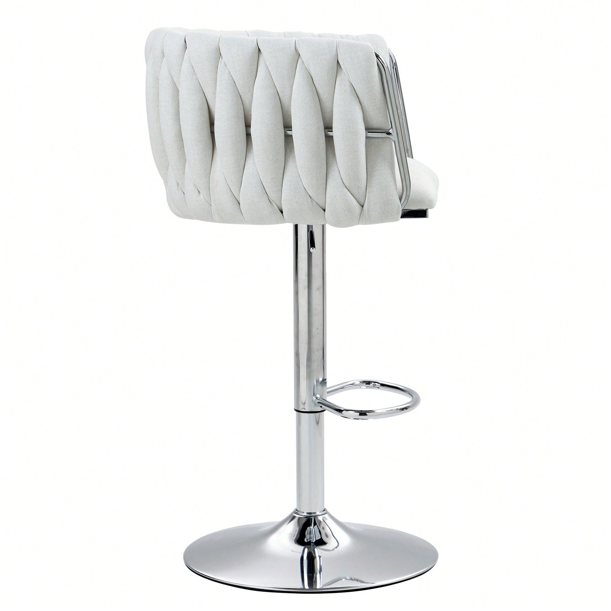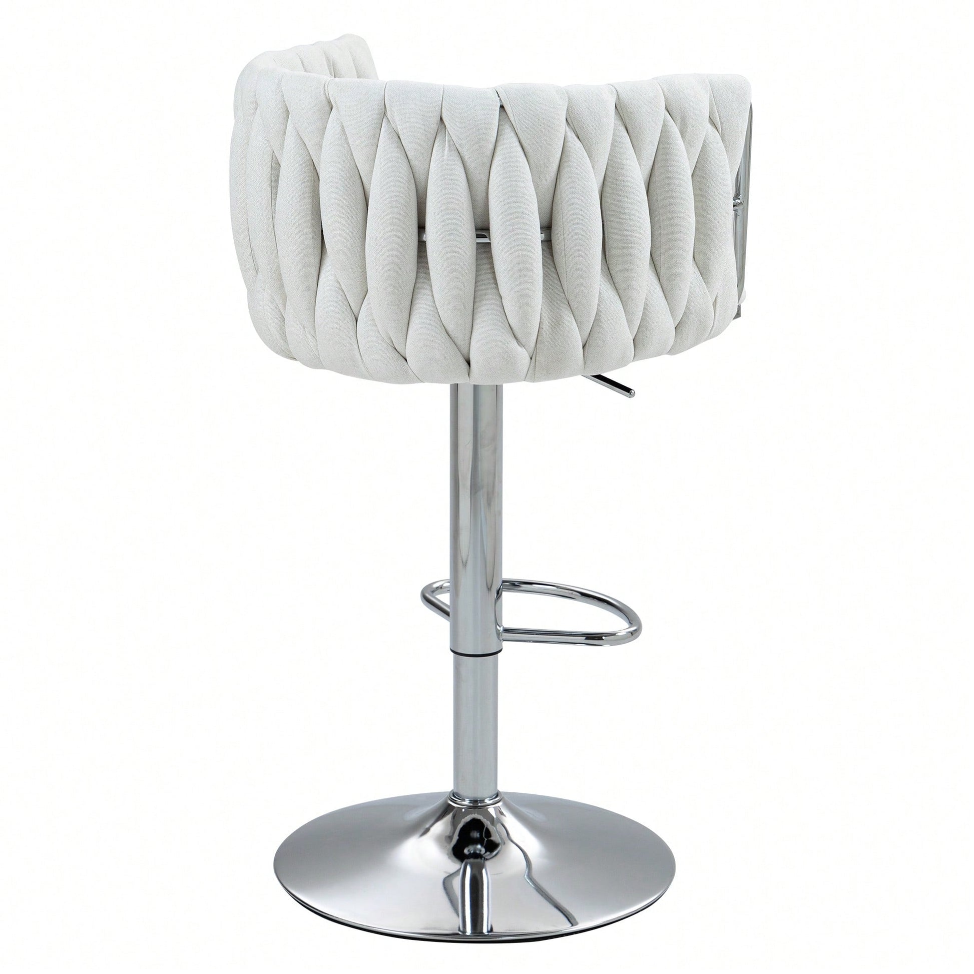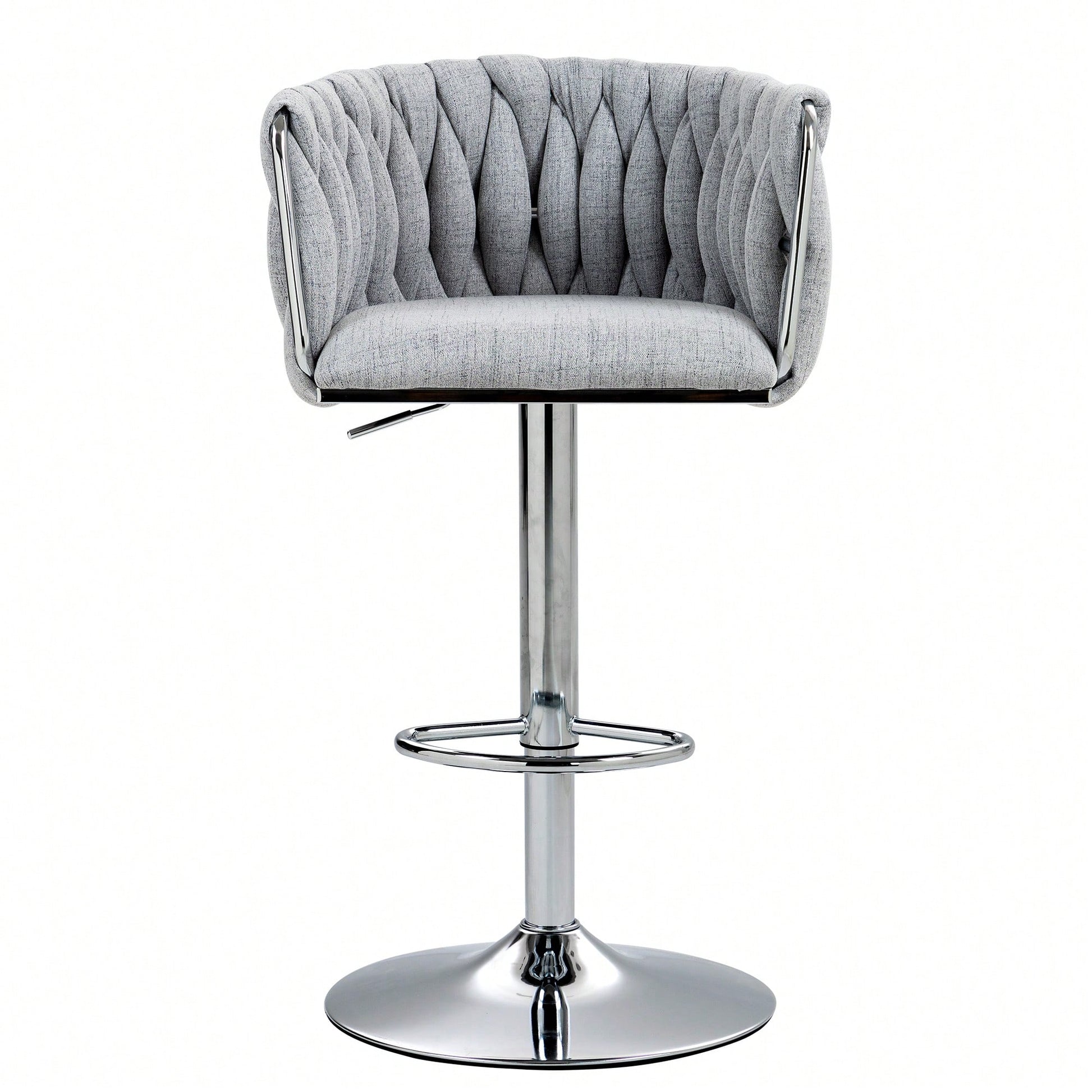 This set of 2 swivel bar stools combines a sleek silver metal frame with a stylish woven fabric cover, making it a perfect addition to restaurants, kitchens, cafes, and bars. The stools are designed for versatility, featuring adjustable height and a 360° swivel function to accommodate different needs and preferences. The high-density sponge cushioning ensures comfort, while the sturdy construction provides stability and support. Easy to assemble in about 15 minutes, these modern bar stools enhance any decor theme and create an inviting atmosphere in your space.