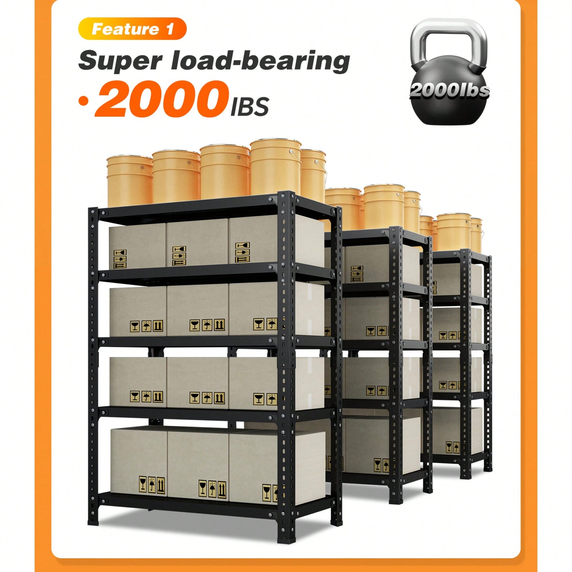 Adjustable Carbon Steel Storage Rack For Home And Basement, 5-Tier Display Shelf, 120cm X 40cm X 180cm, Black