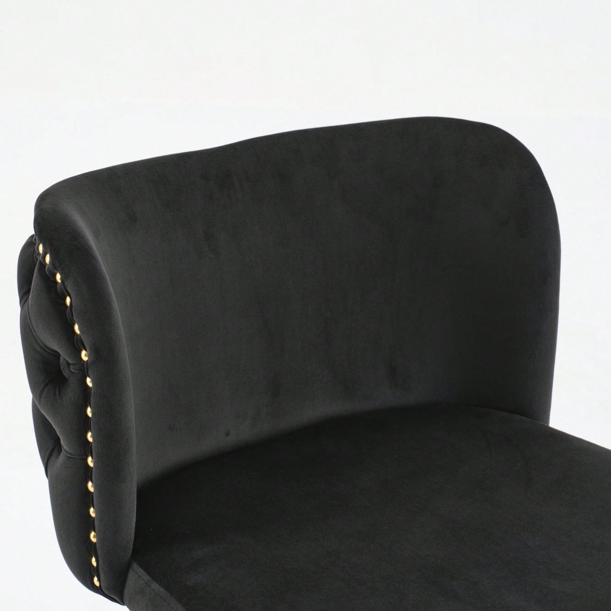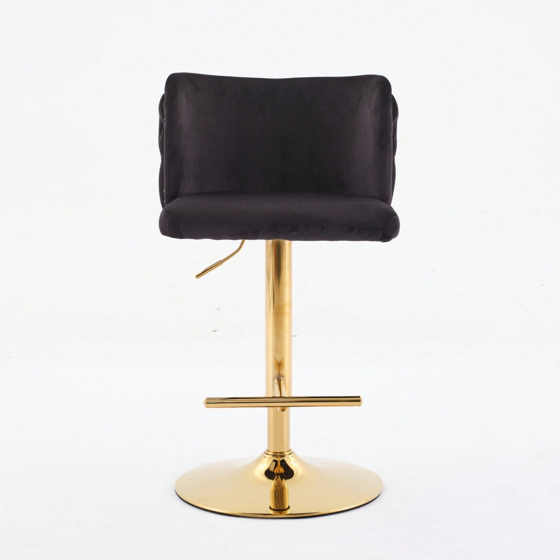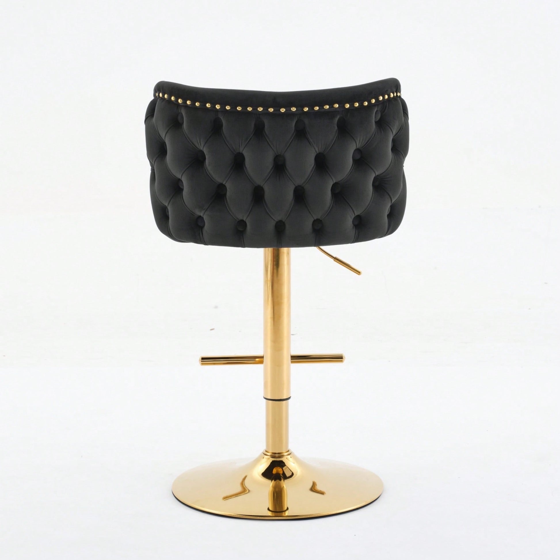 Elegant Adjustable Swivel Barstools with Gold Base Velvet Upholstered Tufted Back for Kitchen Islands and Home Bars Set of 2 Black