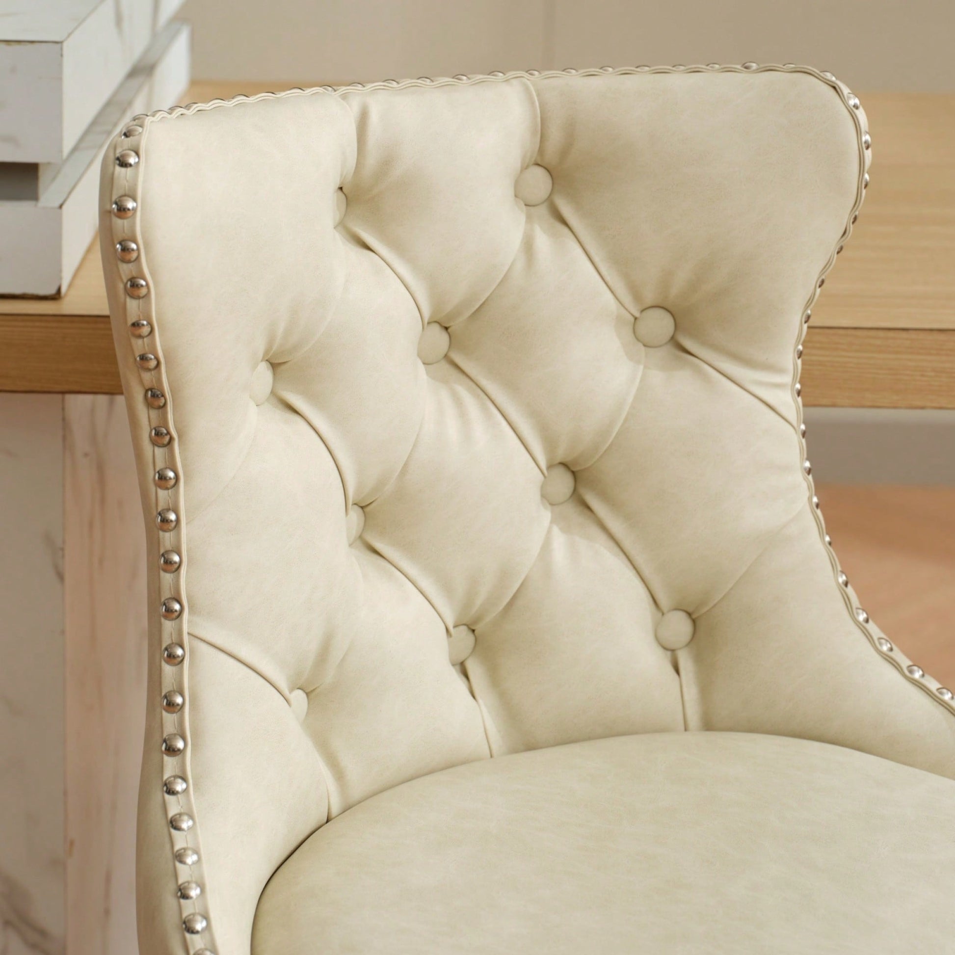 Beige Adjustable Swivel PU Leather Bar Stools with Tufted Backs Chrome Base Set of 2 Height 25-33 Inches for Home Pub and Kitchen Island