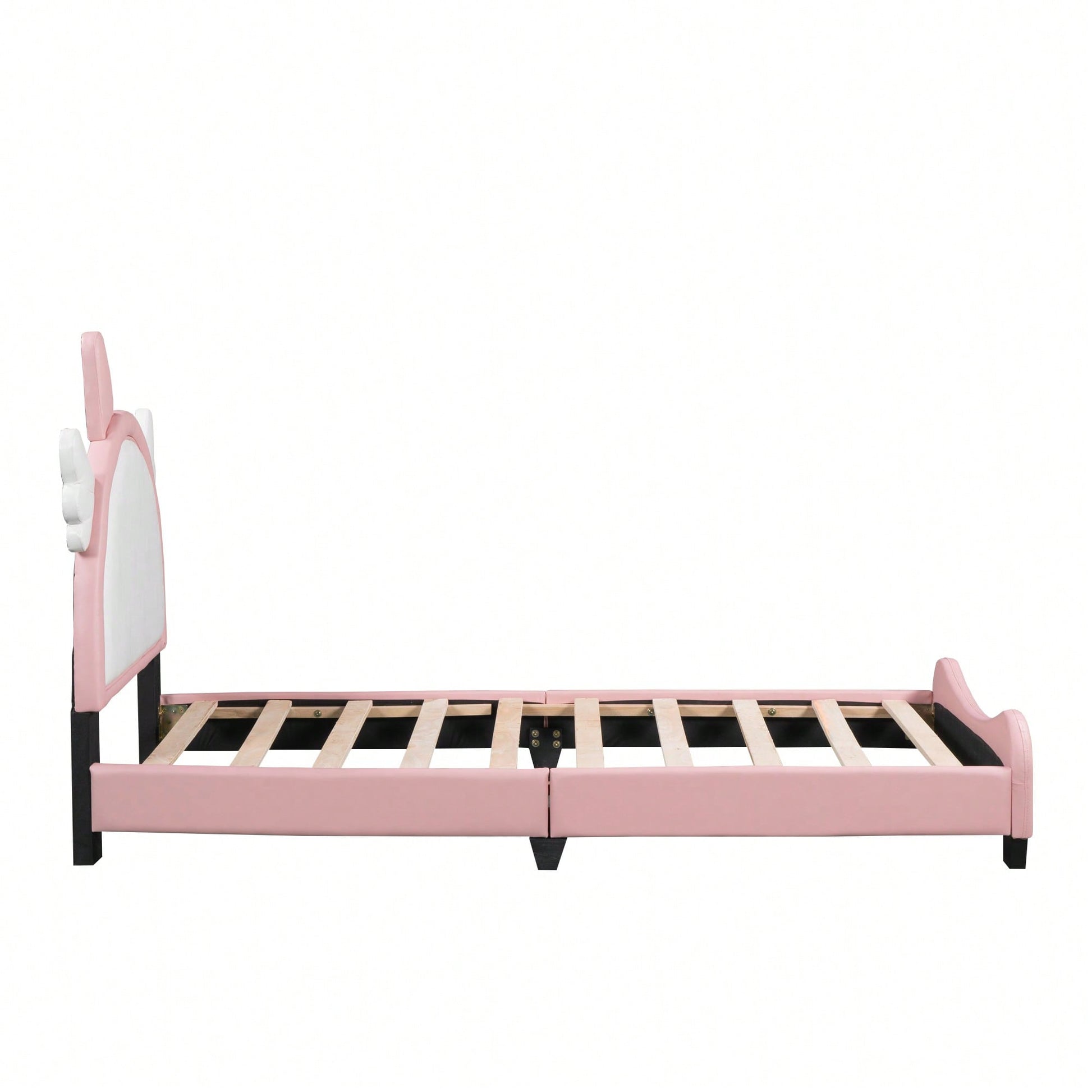 This twin size upholstered bed features an adorable unicorn shape headboard that will delight any child. The design seamlessly integrates with various home decor styles, making it a perfect addition to any bedroom. Crafted from premium pine wood, the bed frame is resistant to humidity, ensuring long-lasting use without cracking. The robust construction includes strong legs and ten slats that provide excellent stability and support, accommodating up to 250 lbs. The slatted frame eliminates the need for a box spring, and the PU leather upholstery adds a touch of elegance. Assembly is straightforward with detailed instructions provided, and customer service is available for any inquiries.