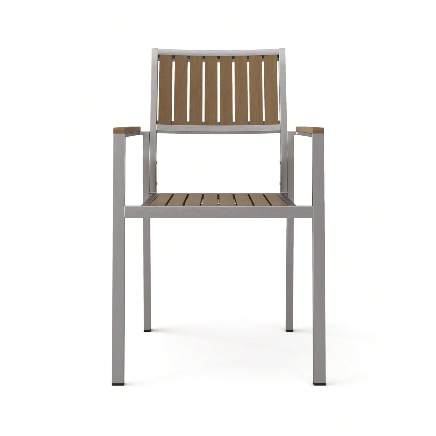 Enhance your outdoor space with this stylish set of dining chairs, designed for comfort and durability. Featuring a sleek combination of faux wood and smooth aluminum, these chairs offer a contemporary look that fits seamlessly into any patio or backyard decor. The classic slat design ensures effortless relaxation, making them perfect for outdoor meals or leisure time during the summer.