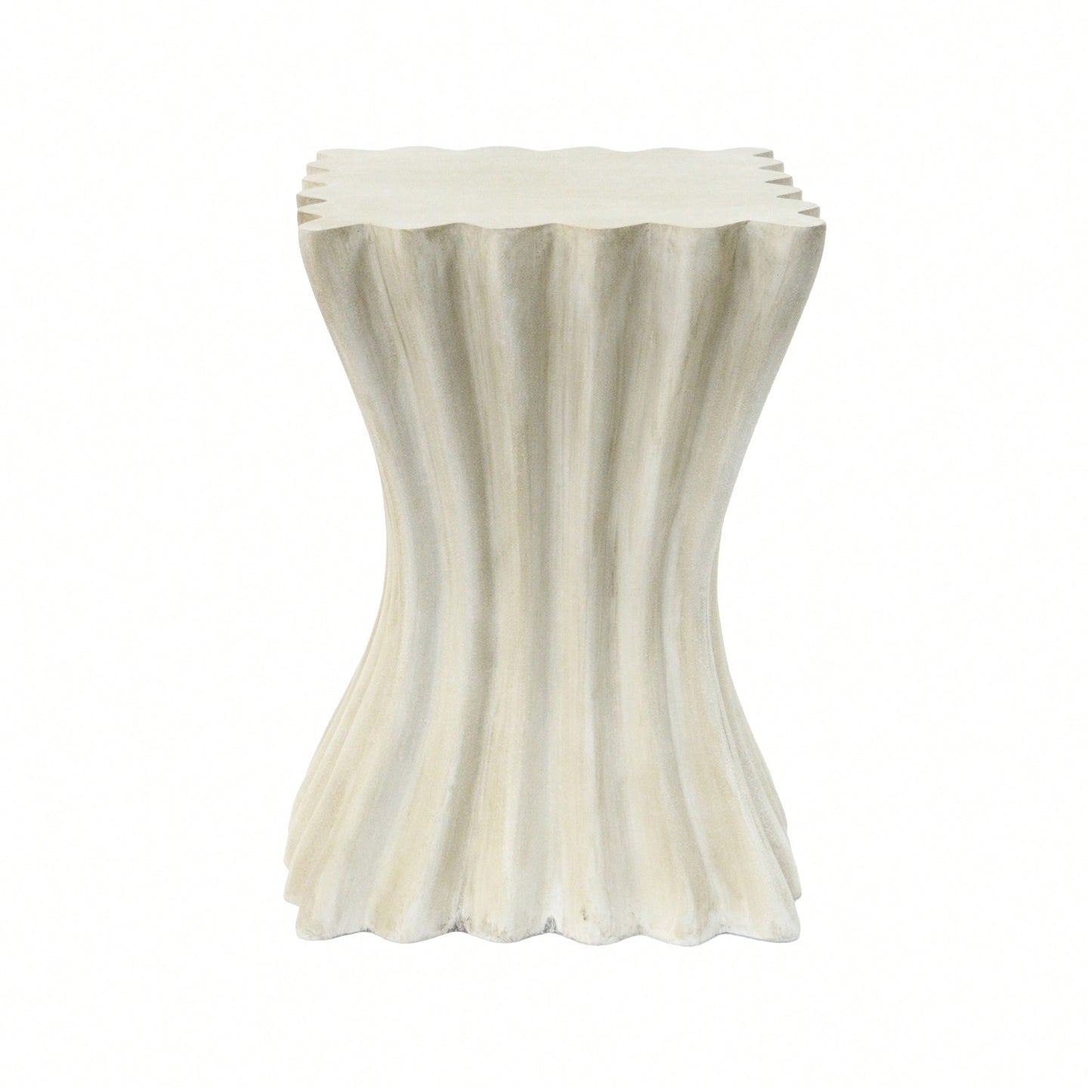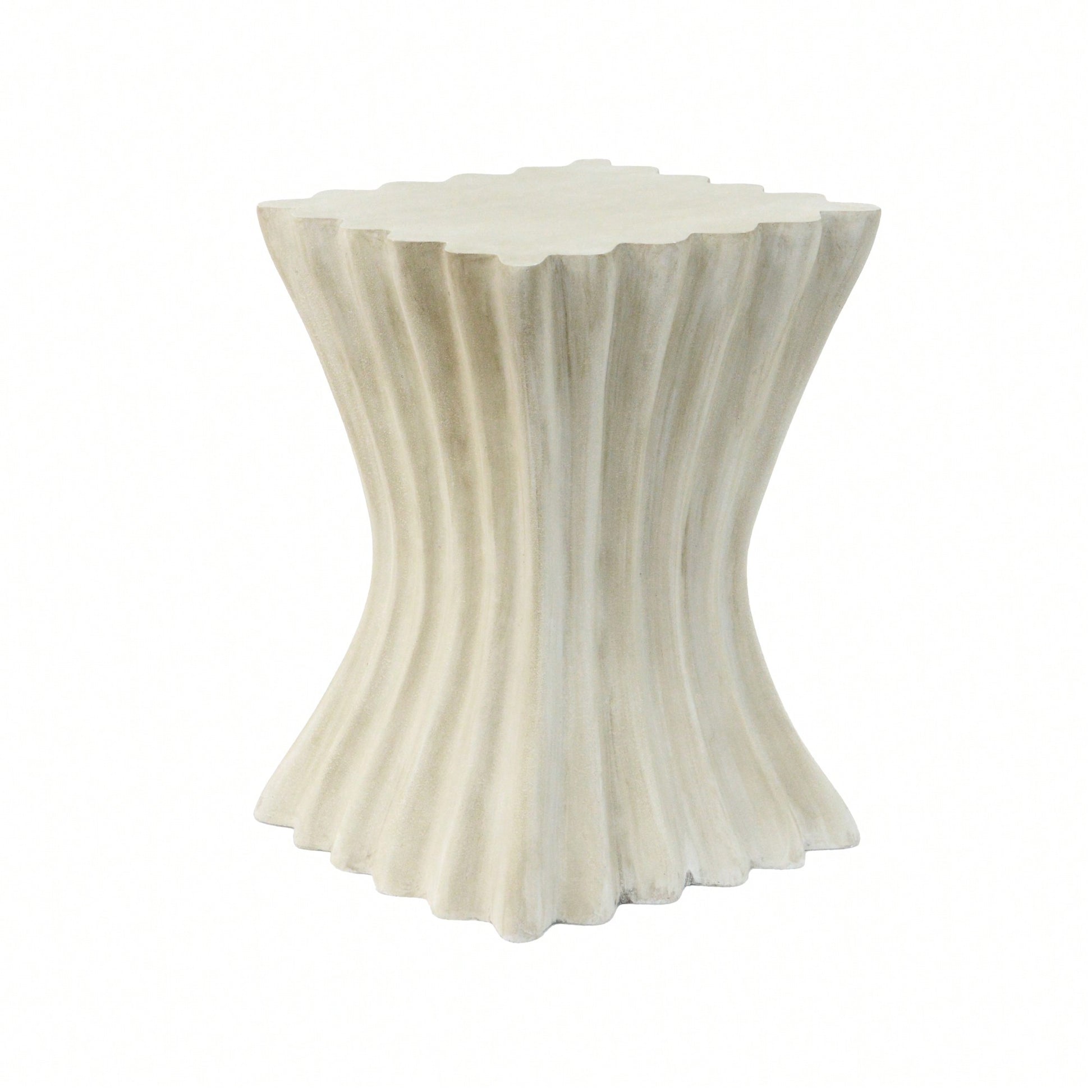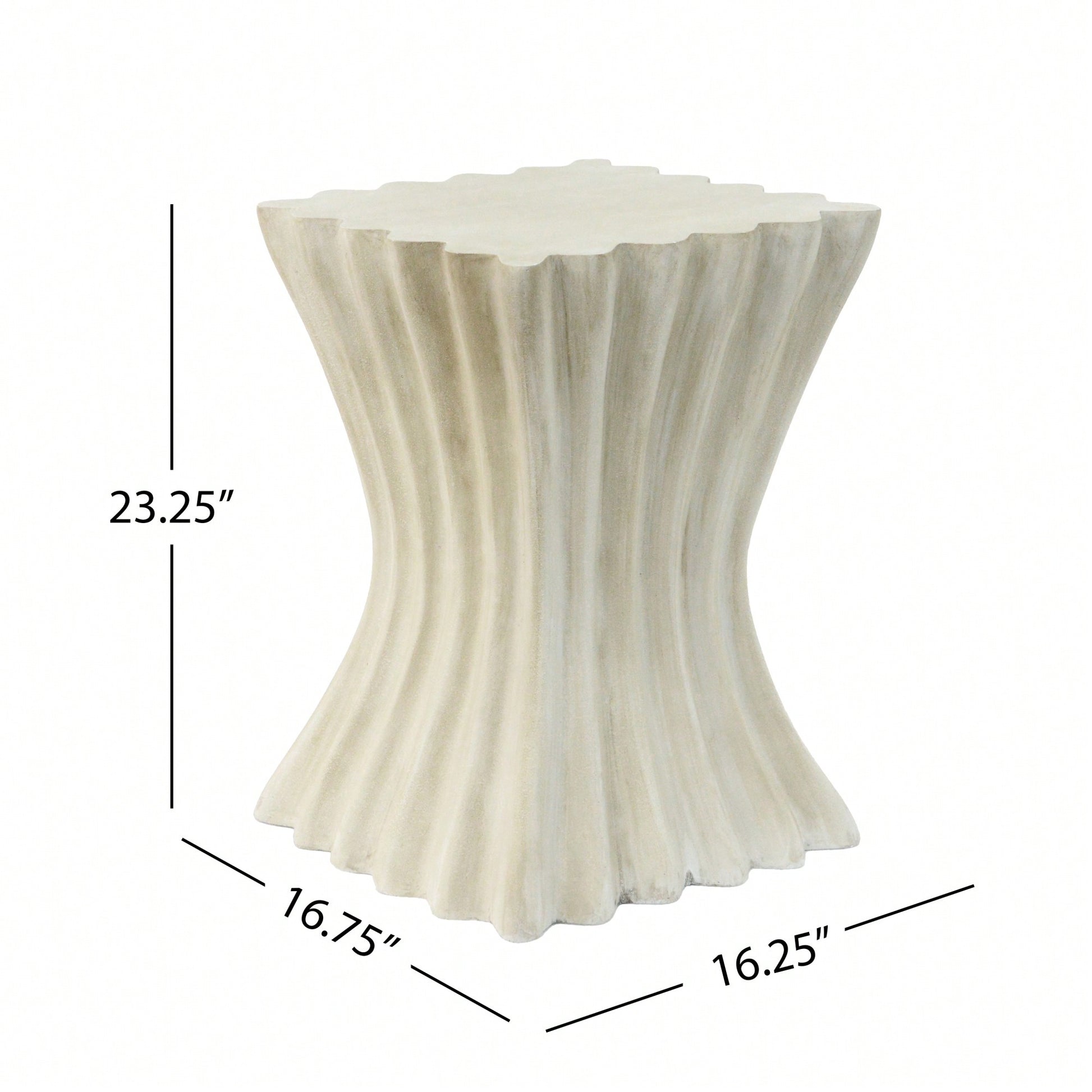 This graceful side table features a distinctive undulating wave shape that enhances its luxurious and elegant appeal. Finished with an antique sandstone effect, it brings a tasteful touch to your decor. Made from high-quality magnesium oxide, the table offers sturdiness and durability, with excellent weather and water resistance for long-lasting use. Versatile in design, it can hold coffee, books, plants, and more, making it suitable for various settings. The dimensions of the table are 16.75 inches in length, 16.25 inches in width, and 23.25 inches in height, ensuring it fits perfectly in your space.