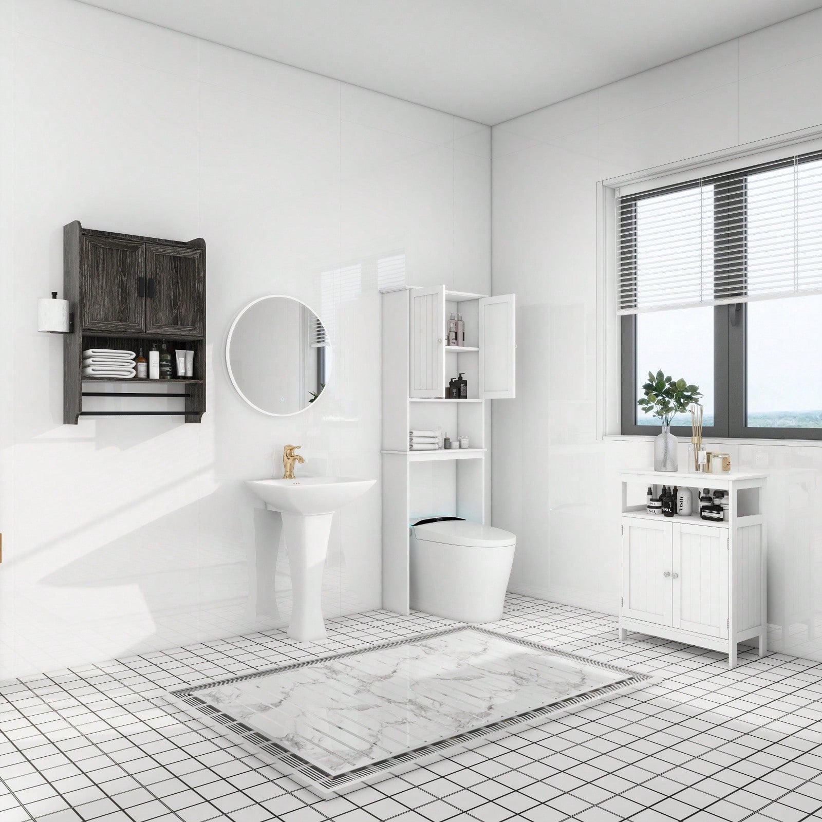 Bathroom Wall Cabinet With Doors, Adjustable Shelf, Towel Bar And Paper Holder