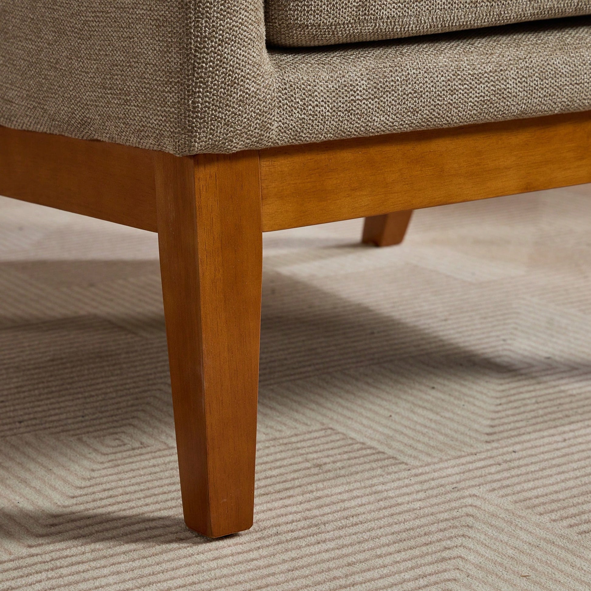 This modern accent chair is designed for comfort and style, making it ideal for your living room, bedroom, reading corner, or office. The chair features a spacious 26.18-inch wide seat and a high back that creates a classic silhouette. Wrapped in a luxurious polyester blend fabric, it offers excellent elasticity and a plush touch for an indulgent seating experience. The seat cushion, filled with springs, ensures lasting support, while the walnut wood legs add a refined touch to its overall design. Built with solid wood and plywood frames, this chair is sturdy enough to support up to 250 pounds. Assembly is quick and easy, taking only about 10 minutes to set up.