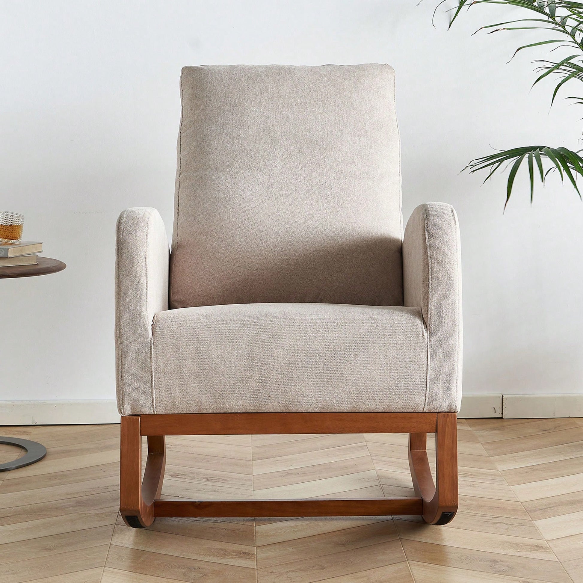 Beige Linen Rocking Chair 27.56 Inch Wide Accent Chair For Living Room And Nursery