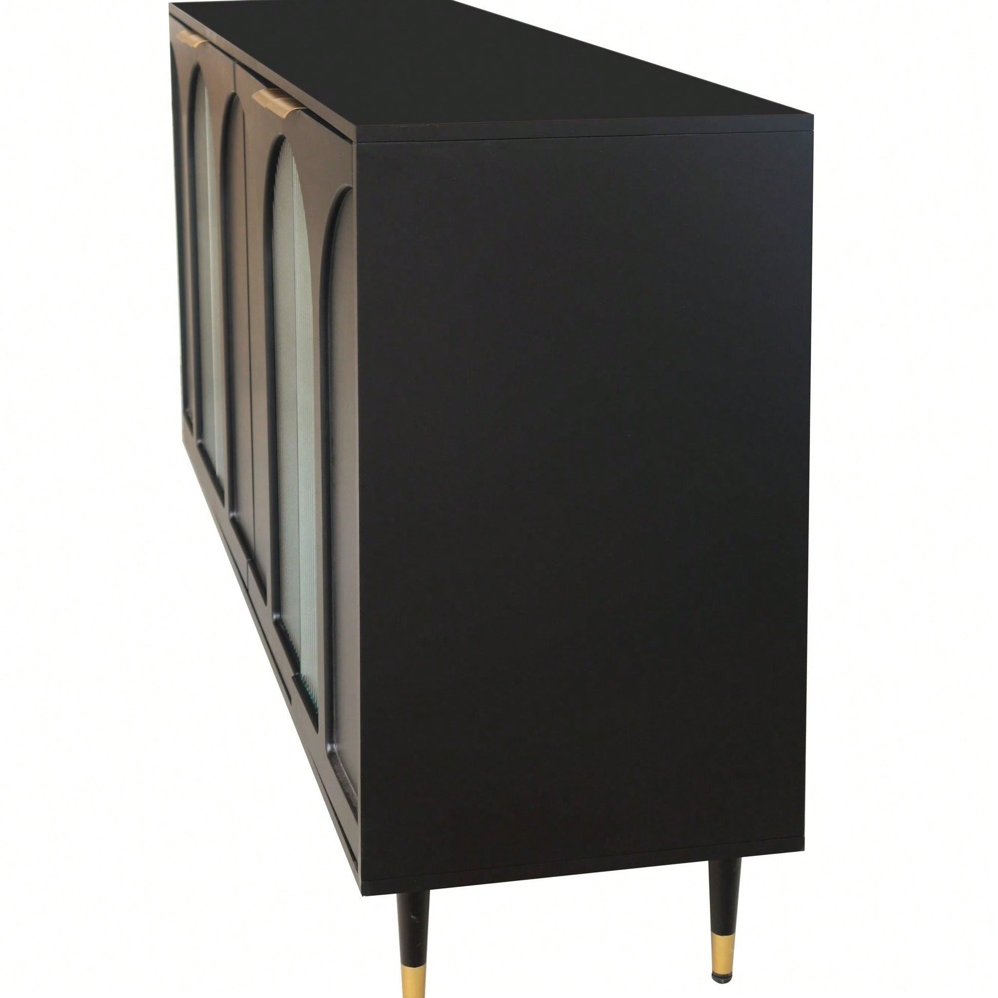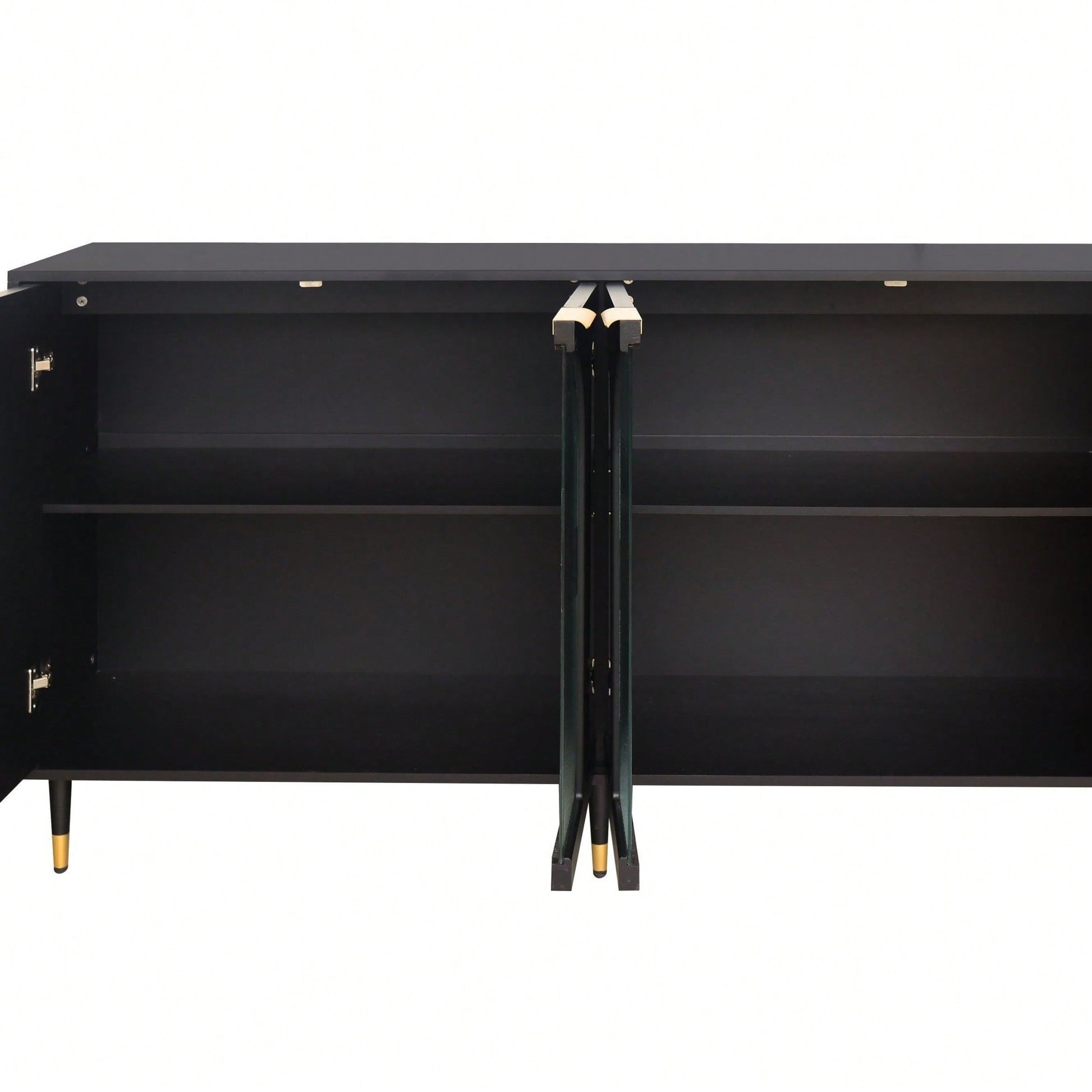 Black Lacquered Wooden Cabinet With 4 Glass Doors Sideboard Buffet Server Cabinet Storage Cabinet