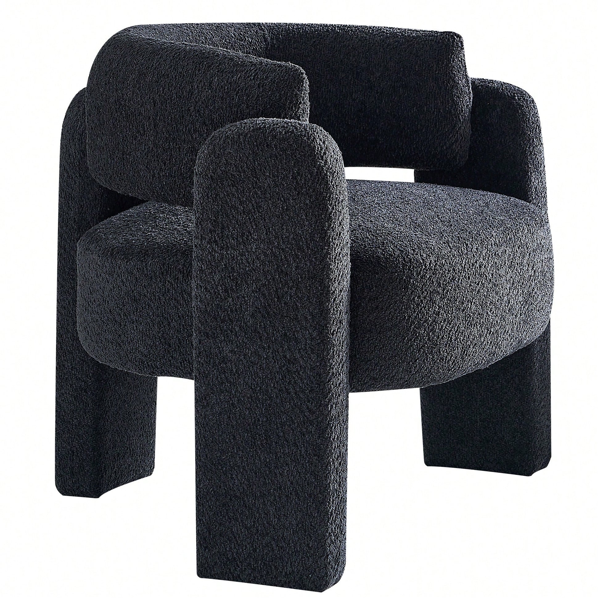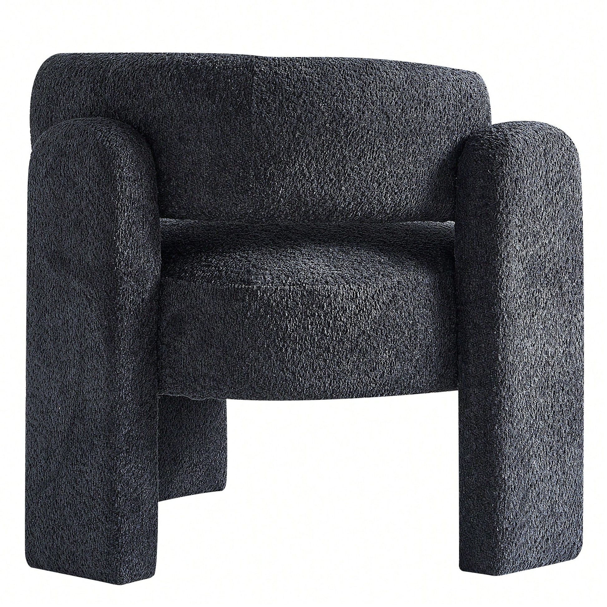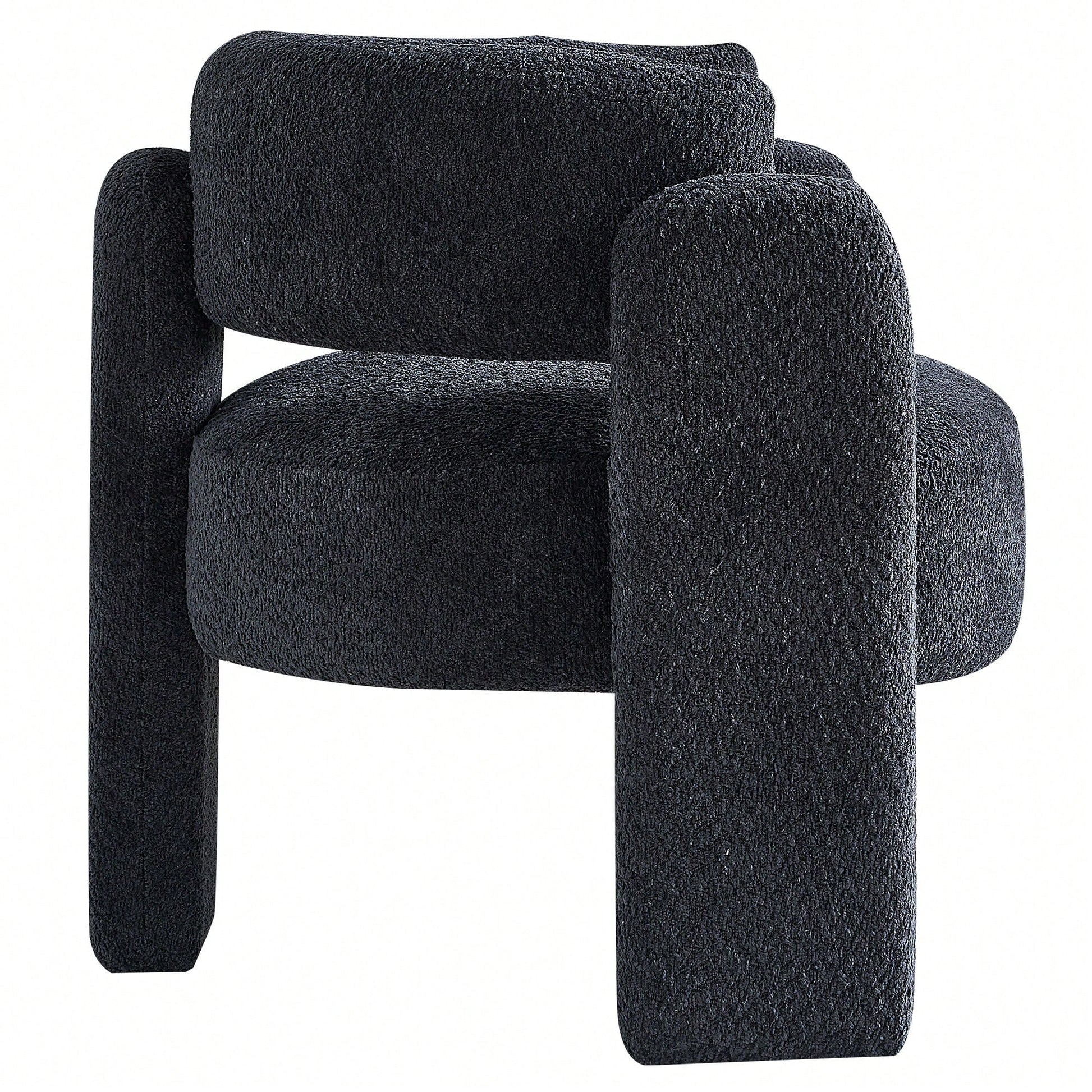 This stylish accent chair features a contemporary design with a wide seating area, perfect for any living space. The plush boucle upholstery provides a luxurious feel, while the high-density foam seat cushion ensures optimal comfort. Built on a solid wood frame, this chair is designed for durability and long-lasting use. Assembly is quick and straightforward, taking only 10 minutes for one person. For maintenance, gently wipe the fabric with a dry or semi-wet towel to avoid damage.