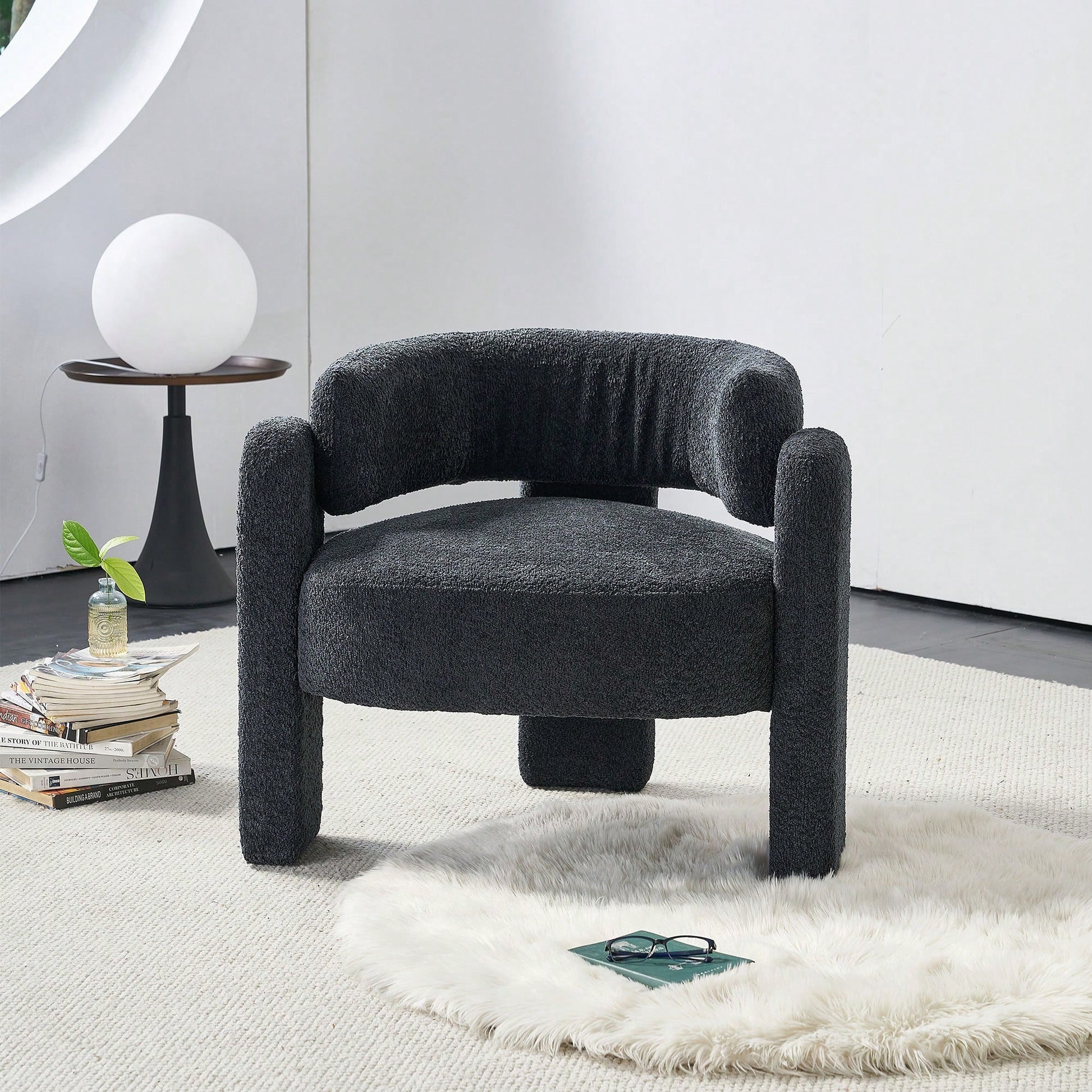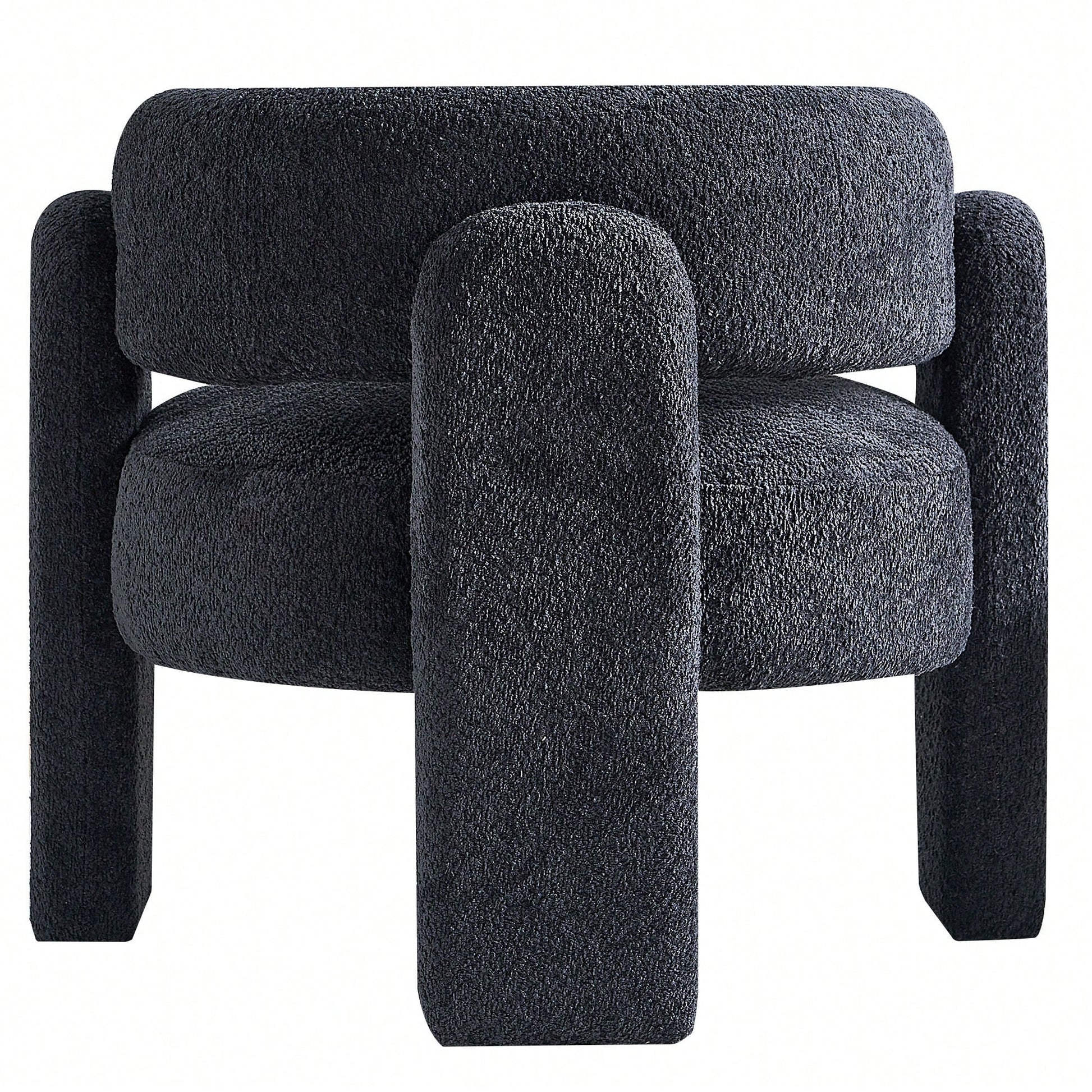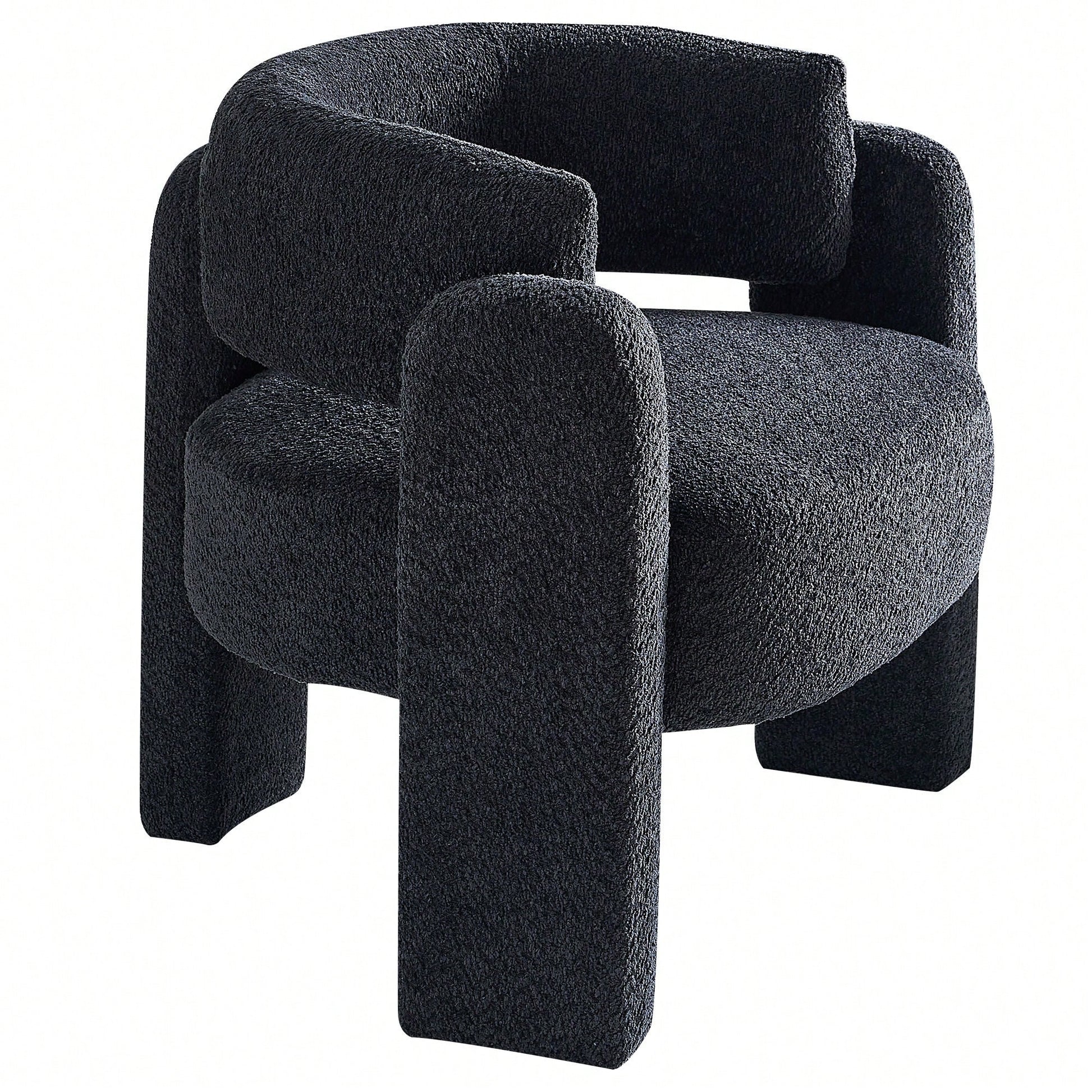 This stylish accent chair features a contemporary design with a wide seating area, perfect for any living space. The plush boucle upholstery provides a luxurious feel, while the high-density foam seat cushion ensures optimal comfort. Built on a solid wood frame, this chair is designed for durability and long-lasting use. Assembly is quick and straightforward, taking only 10 minutes for one person. For maintenance, gently wipe the fabric with a dry or semi-wet towel to avoid damage.