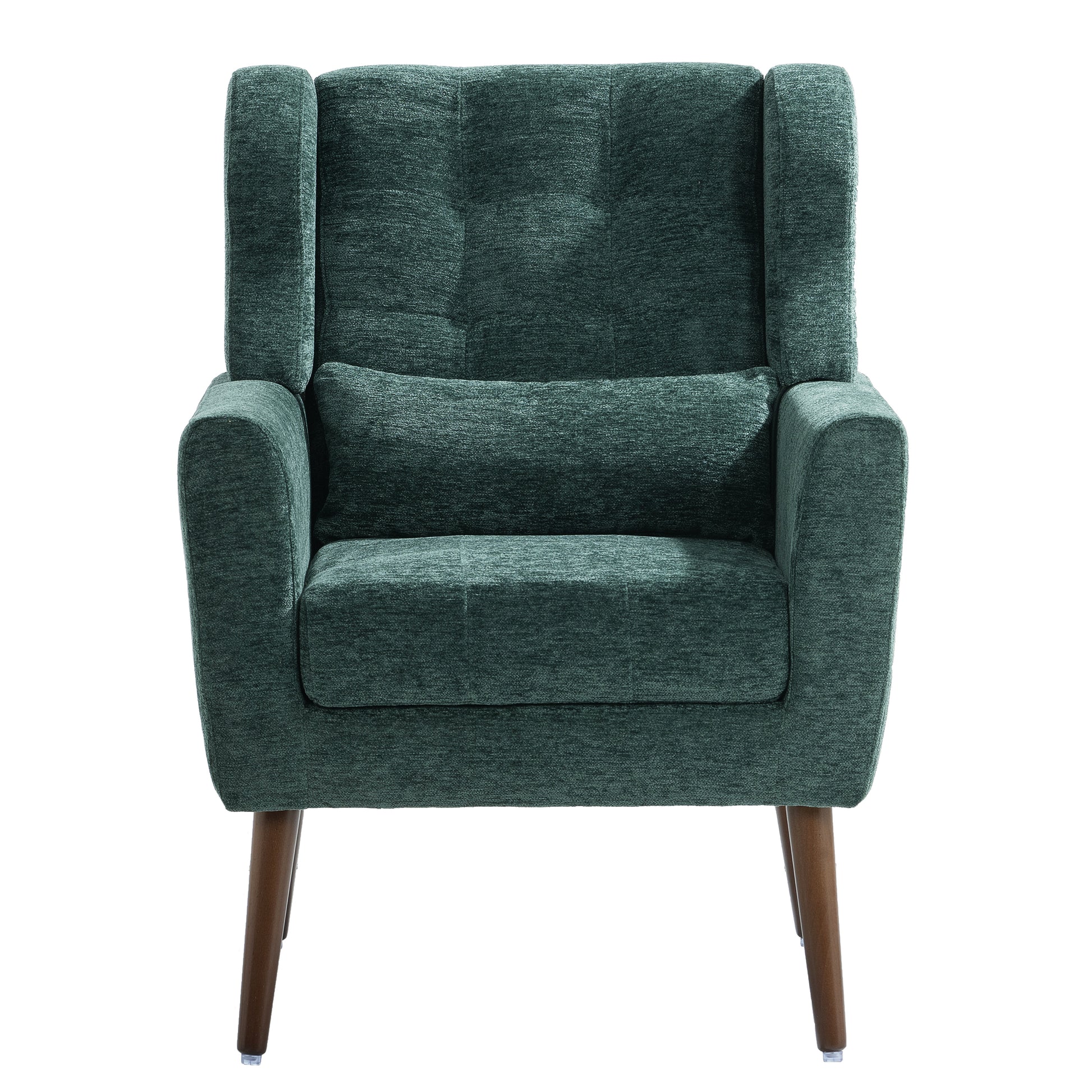 Chenille Modern Accent Chair with Pillow Soft Upholstered Armchair for Living Room Bedroom Solid Wood Legs Blackish Green