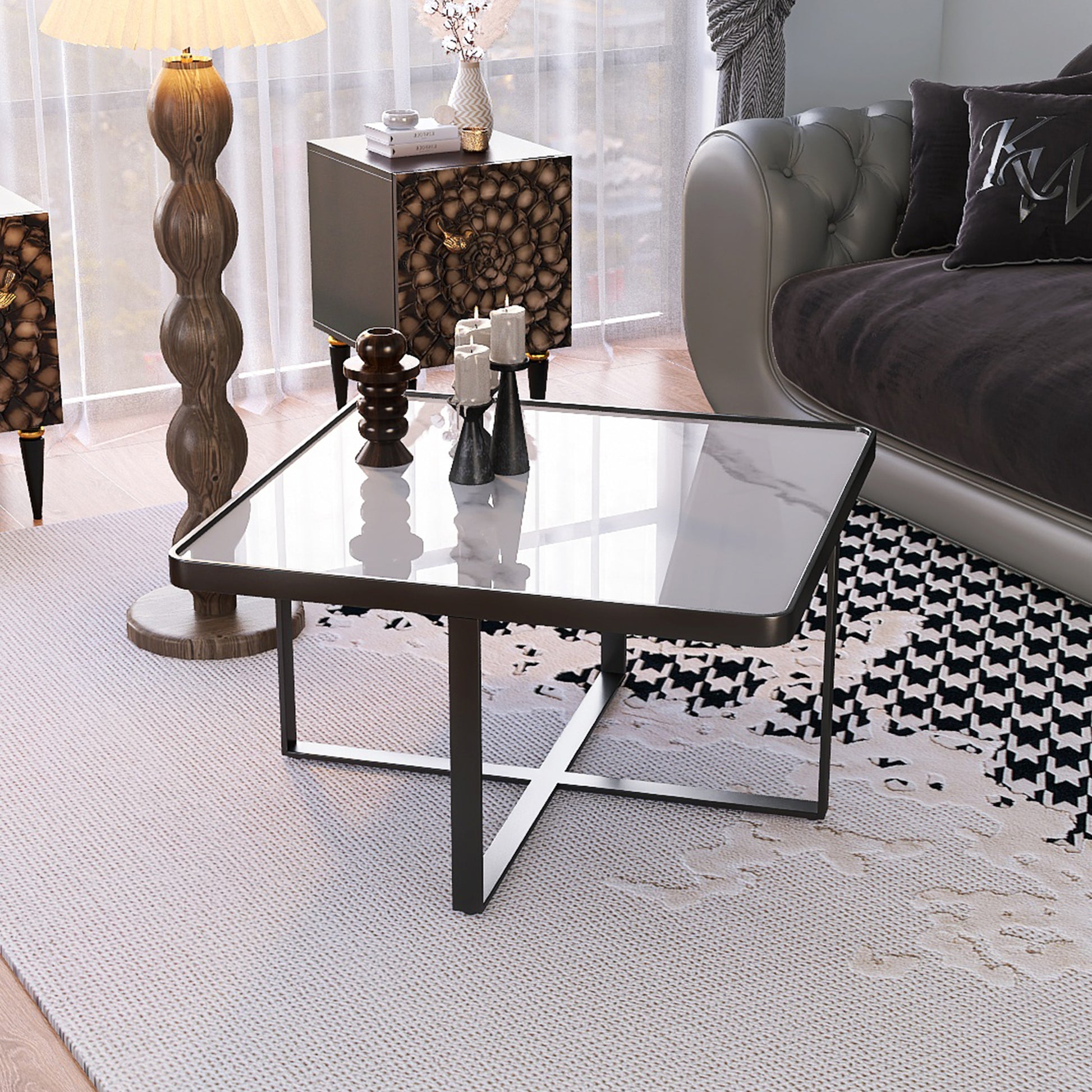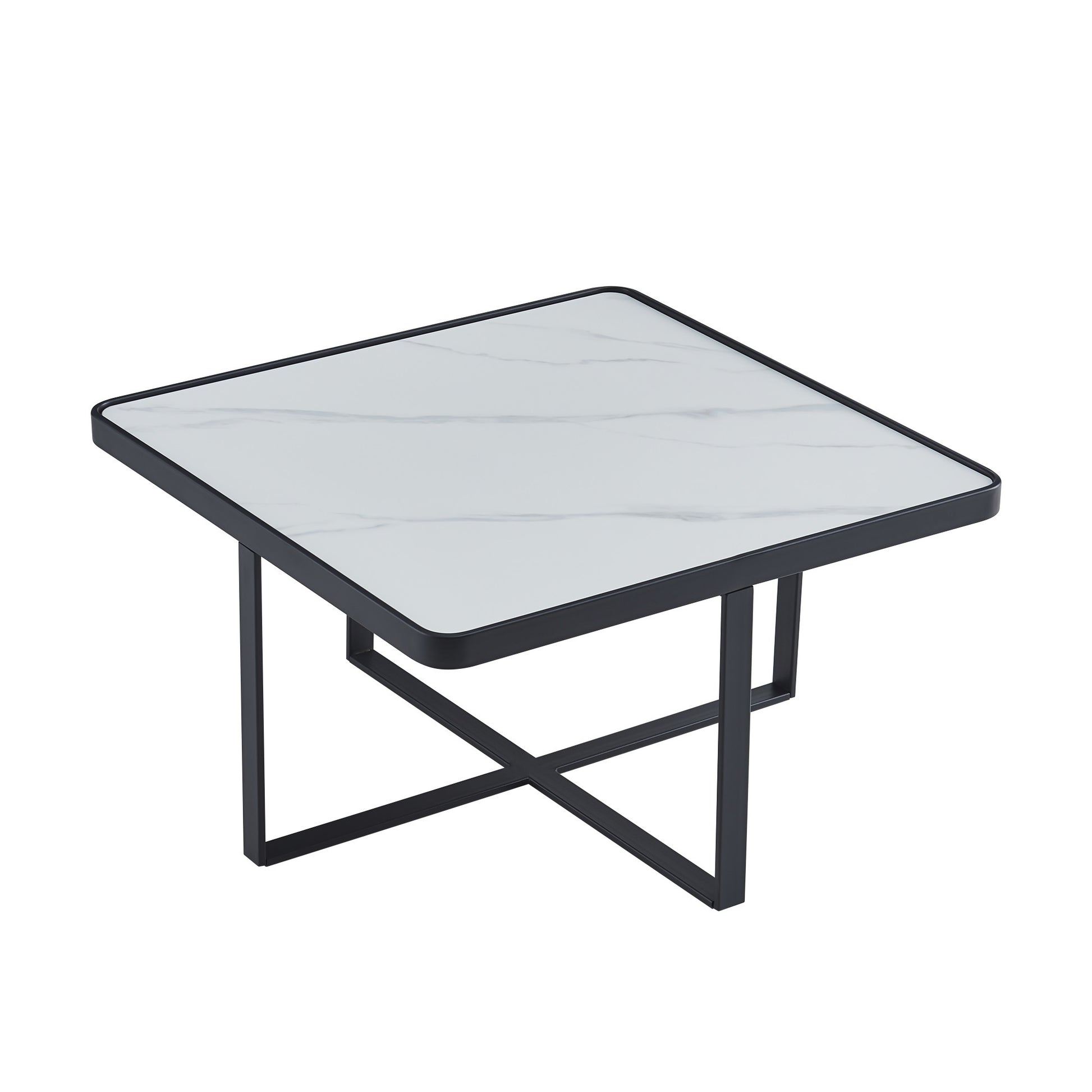 Minimalist Square Coffee Table Black Metal Frame Sintered Stone Top Modern Living Room Furniture
