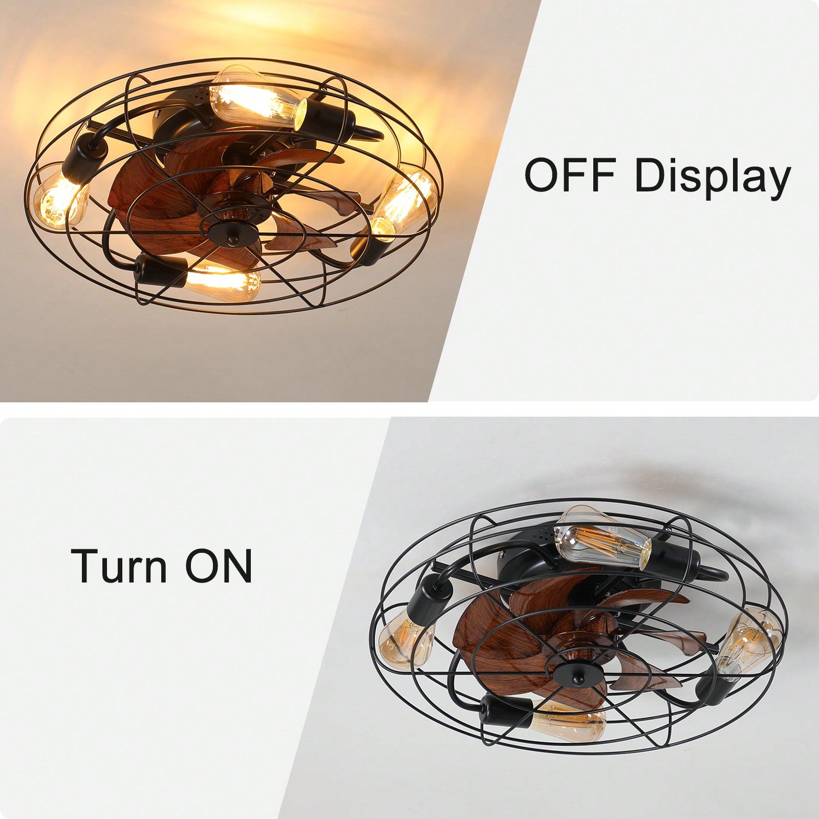 Low Profile Caged Ceiling Fan with Light Remote Control Modern Farmhouse Design Quiet DC Motor 6 Speeds Easy Install