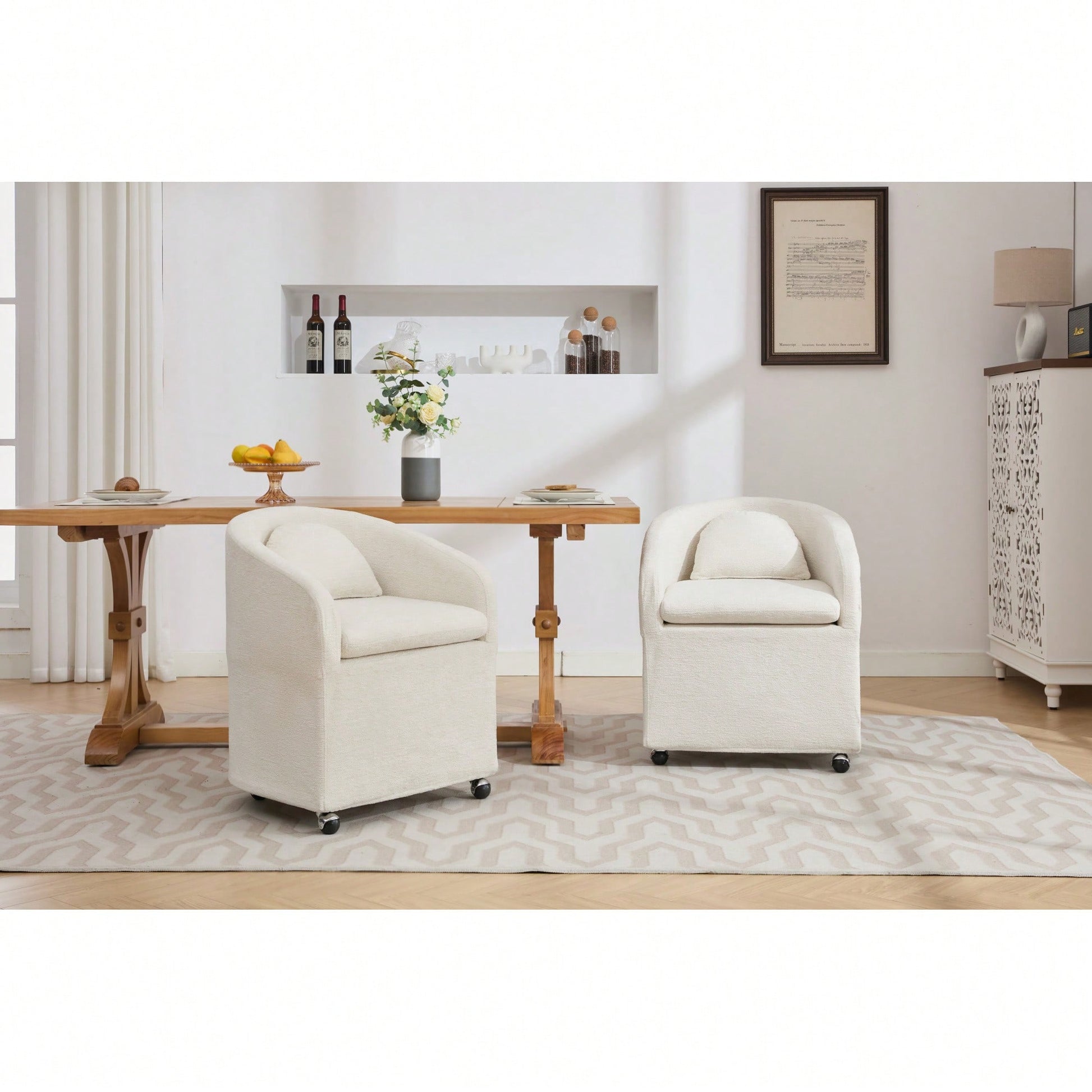 Chenille Fabric Dining Armchair With Back Cushion And Universal Wheels In Beige