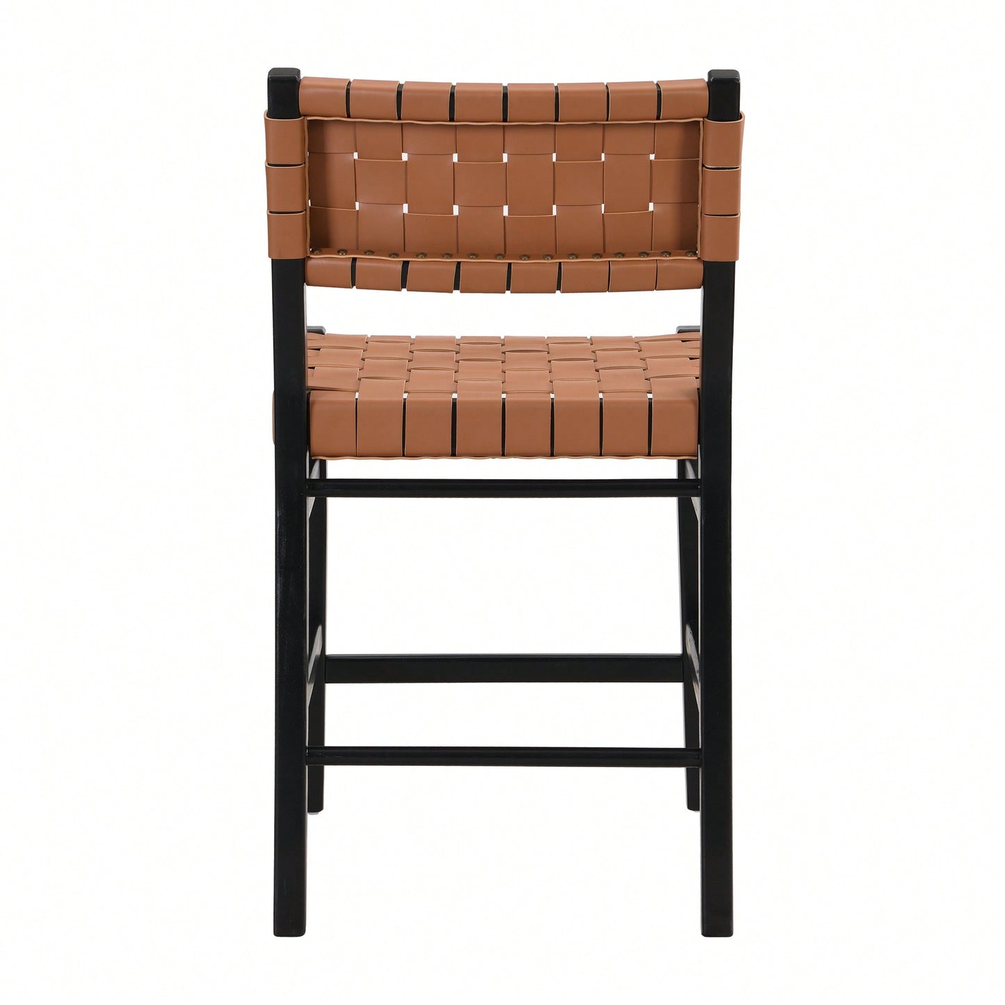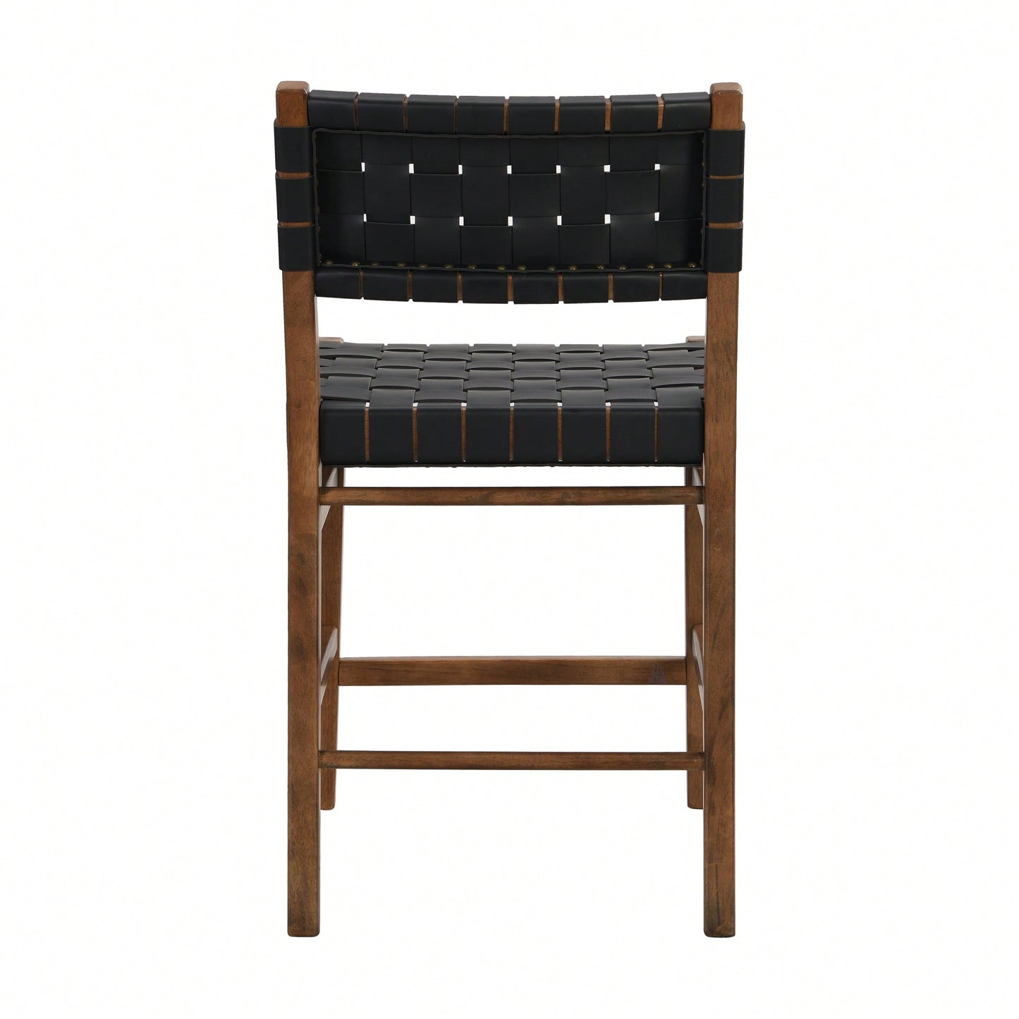 **Key Features:** - Luxurious black leather upholstery adds elegance and sophistication - Unique woven leather backrest for visual interest and standout design - Sturdy rubberwood frame ensures durability and stability - Comfortable, well-padded seat and backrest for extended seating - Versatile style complements various decor schemes, from modern to traditional **Product Description:** This set of 24.25'' counter stools offers a blend of luxury and comfort, making them an ideal addition to any kitchen, bedroom, or dining room. The black leather upholstery provides a soft touch and rich texture, while the distinctive woven leather backrest enhances the overall aesthetic. Built with a robust rubberwood frame, these stools are designed to withstand daily use while maintaining a warm and inviting appearance. The well-padded seat and backrest ensure that you can enjoy long periods of seating without discomfort. Their versatile style allows them to seamlessly integrate into various decor themes, making them a practical yet stylish choice for any space. **Specifications:** - Height: 24.25 inches - Material: Black PU leather, rubberwood frame - Style: Woven leather back and seat surface - Suitable for: Kitchen, Bedroom, Dining Room