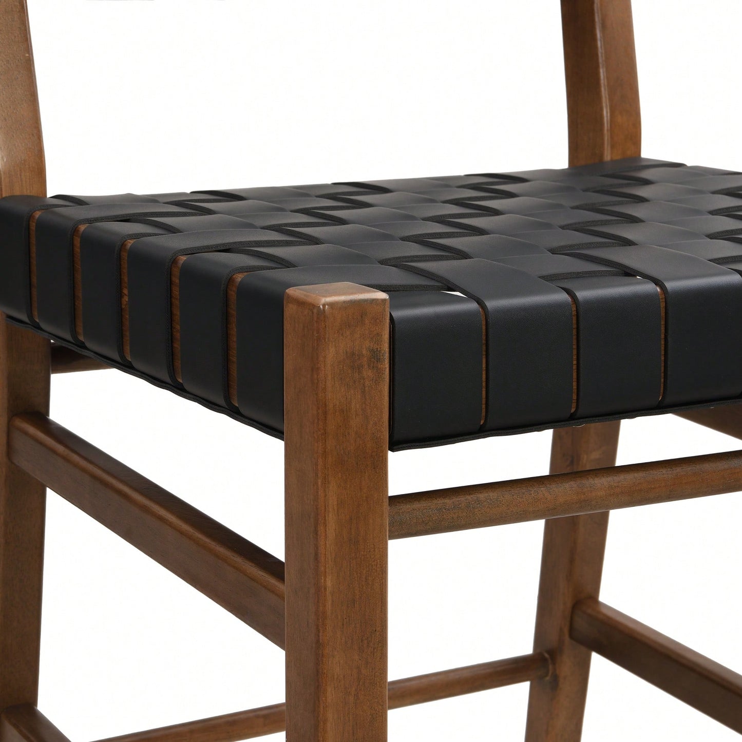 Classic 24.25 Inch Black PU Counter Stools Set Of 2 With Rubberwood Frame And Leather Cross-Woven Back For Kitchen Dining Room Bedroom