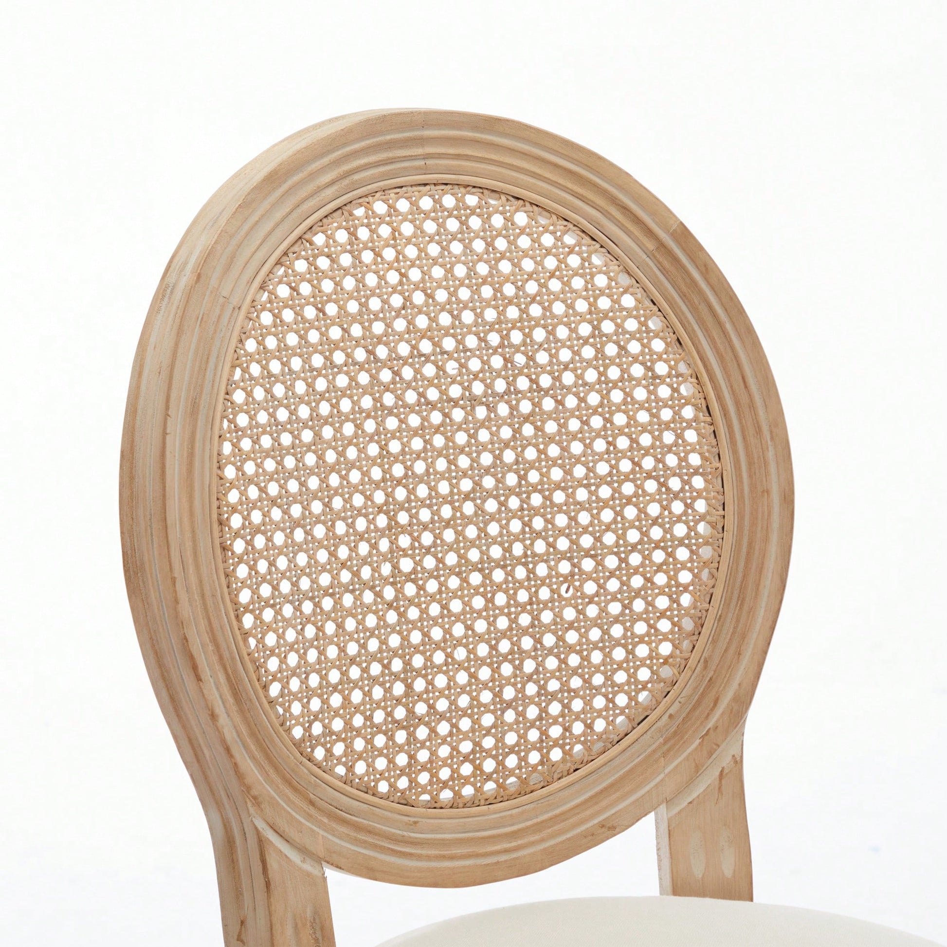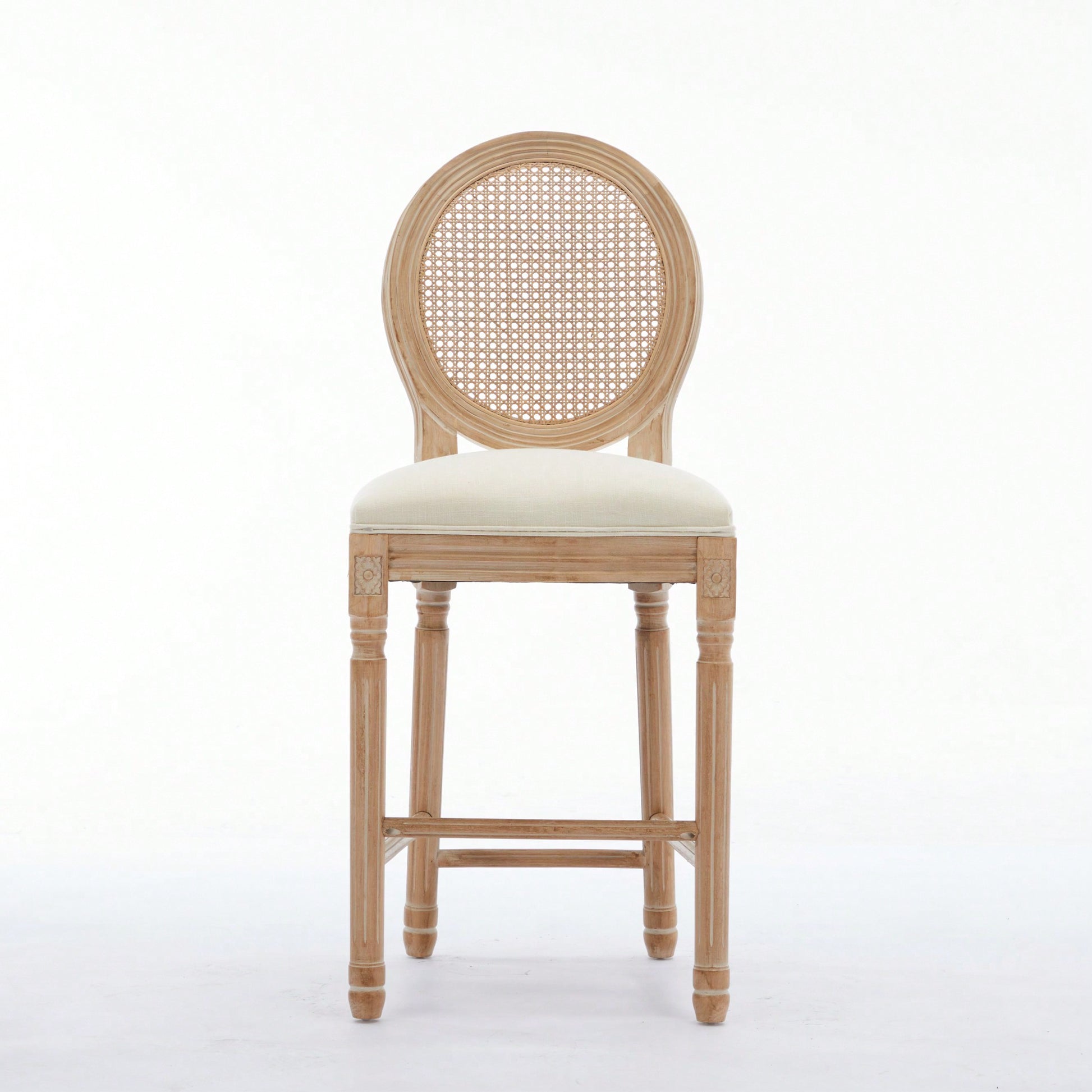 Classic French Country Solid Wood Bar Stools Set Of 2 With Upholstered Seating For Kitchen Counter Beige Rattan