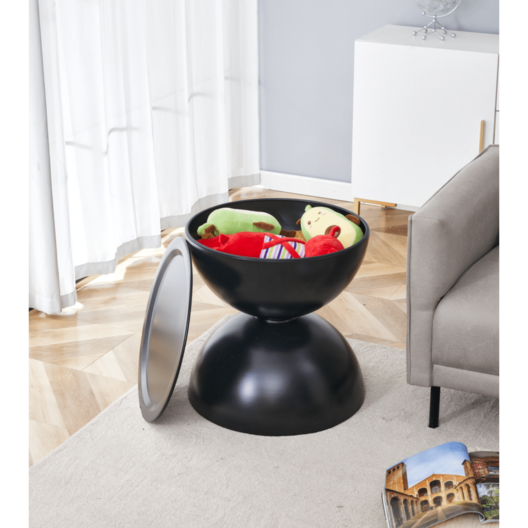- Color: Black with marble-look top