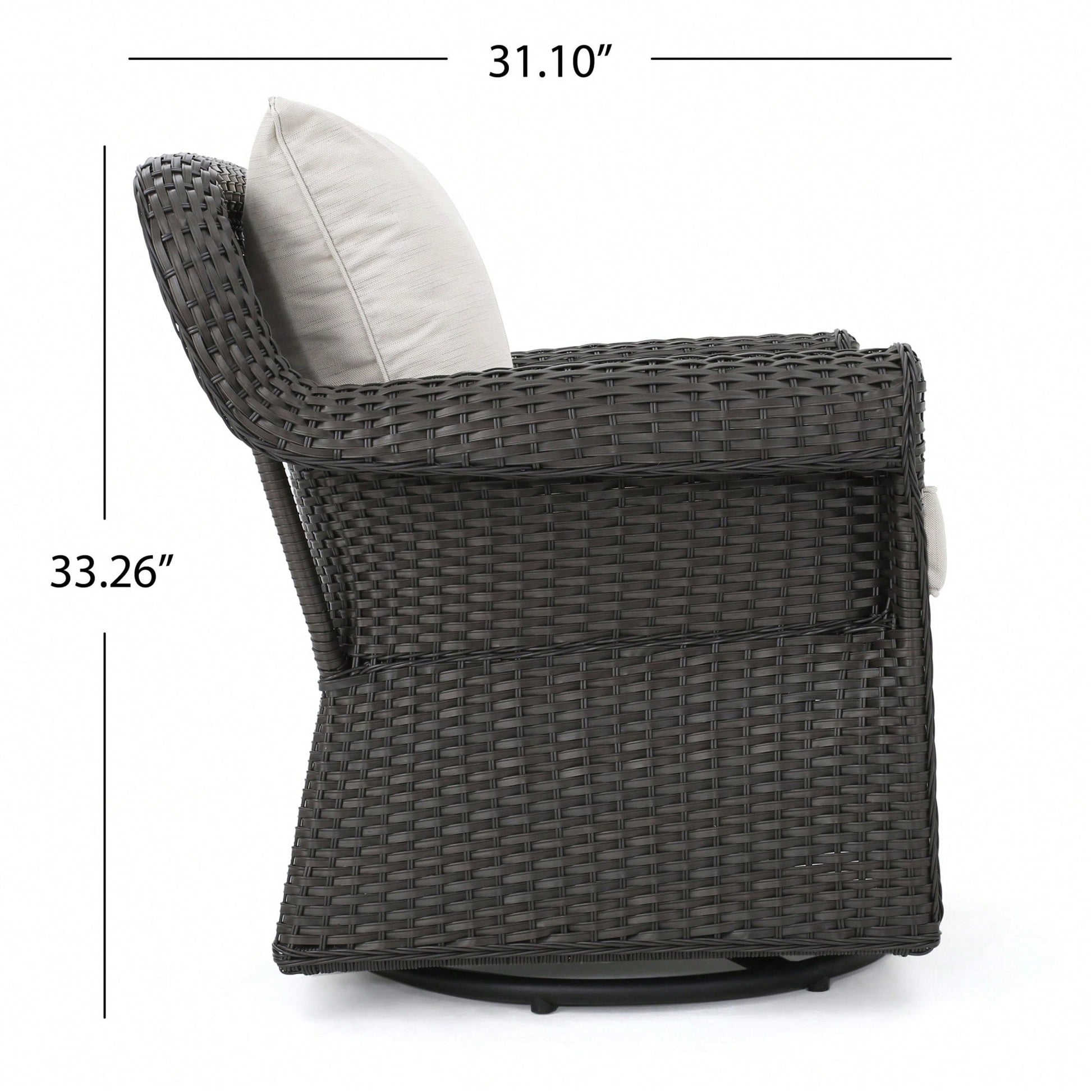 This spacious swivel rocking chair is designed for outdoor enthusiasts. Whether you're soaking up the sun with a good book or simply enjoying your backyard, this chair provides the perfect spot to unwind. Made with premium wicker and equipped with water-resistant cushions, it offers both style and comfort, making your outdoor space a favorite retreat.