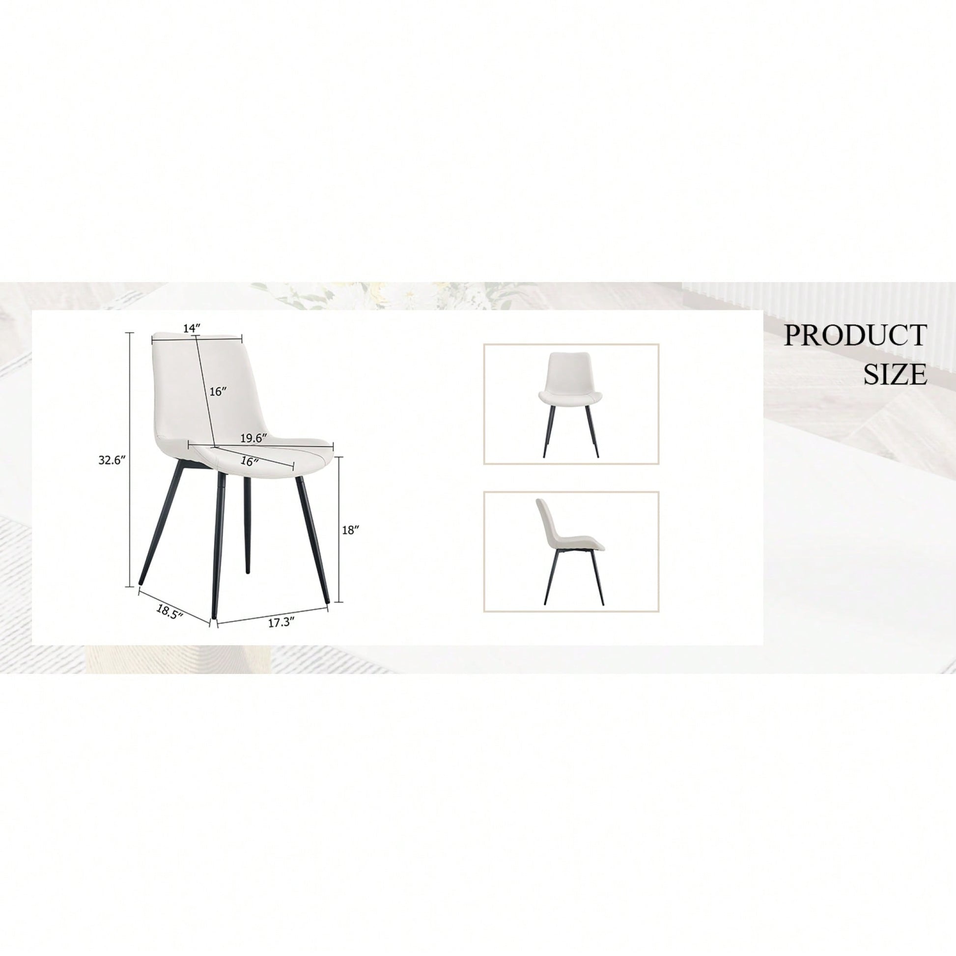 This white artificial leather dining chair features a cushioned backrest and a contemporary design that complements any space. The curved widened cushion ensures a comfortable seating experience, making it ideal for long-term use. Crafted from wear-resistant and age-resistant materials, this chair is easy to clean and maintain. The black metal legs provide stable support, while non-slip pads on the bottom prevent scratching on floors and carpets. Assembly is straightforward, with instructions and tools included, allowing most people to complete it in just 10-15 minutes.