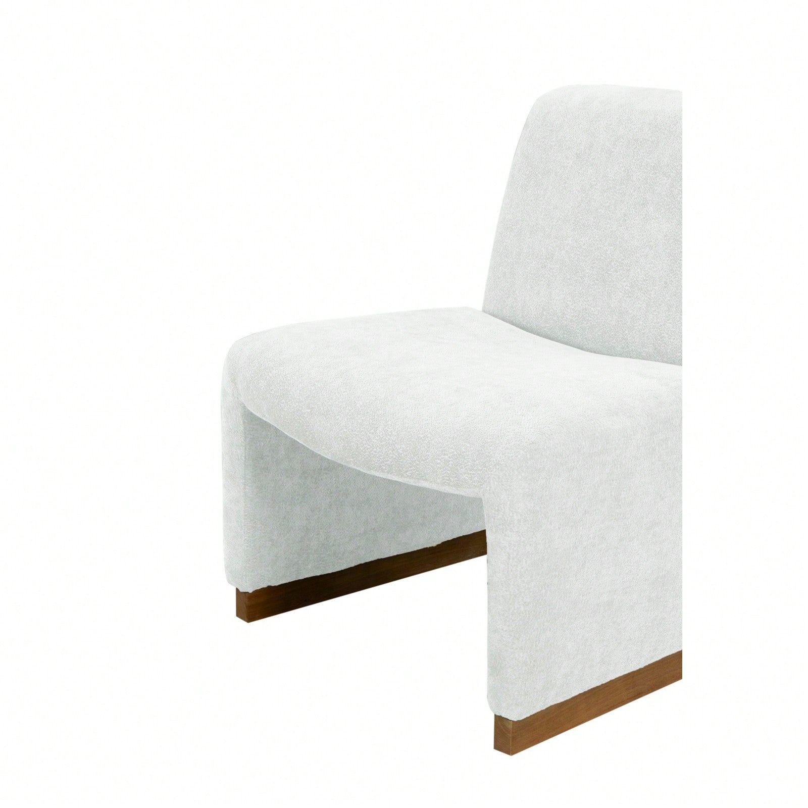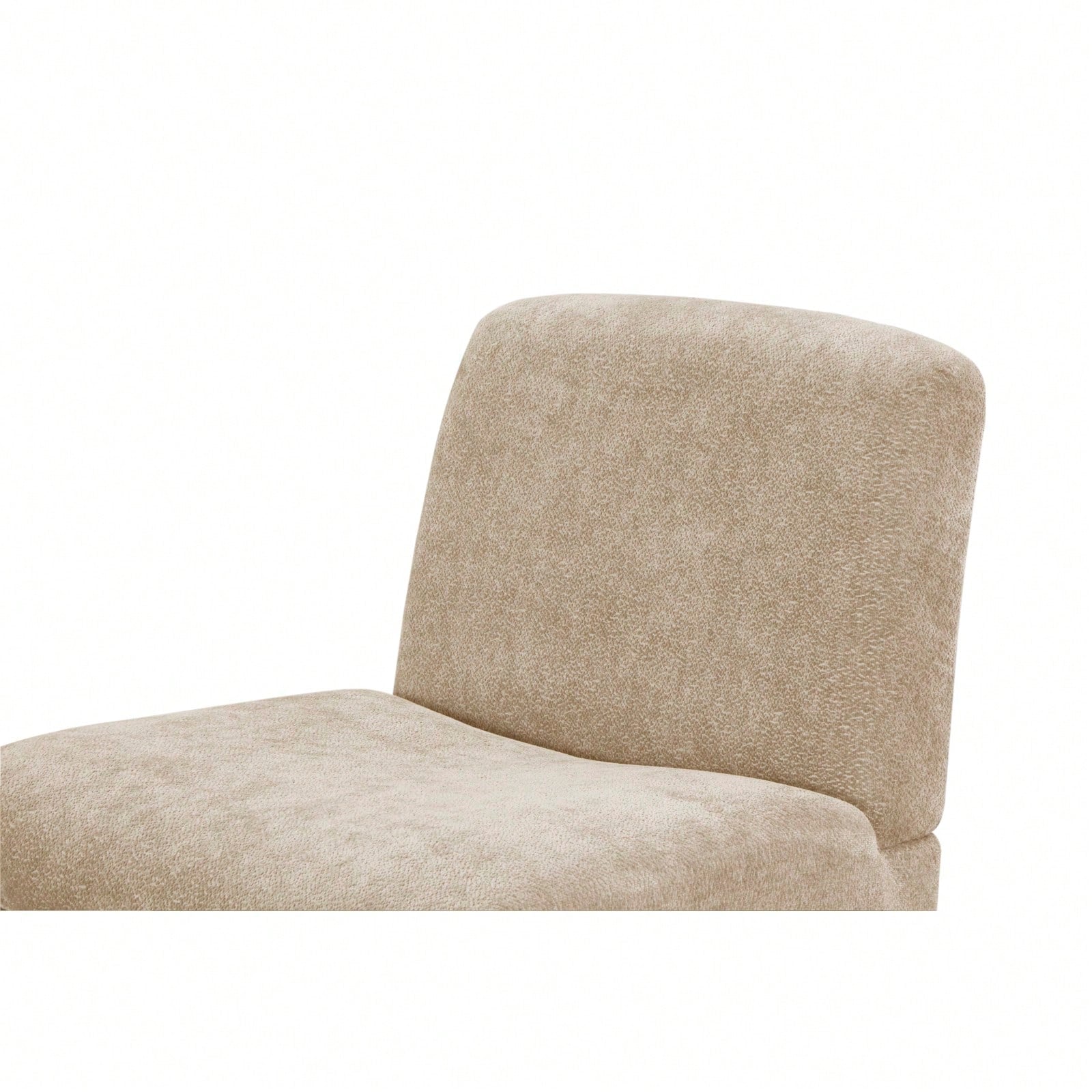 This armless chair embodies a minimalist design philosophy with clean lines, making it a versatile and stylish addition to any setting. Its ergonomic design prioritizes comfort, catering to various needs and environments. The chair's adaptability allows it to seamlessly integrate into bedrooms as a cozy reading nook, living rooms as elegant guest seating, or apartments and lofts as a statement piece. Constructed with a robust wooden frame, this chair ensures durability for everyday use. The inclusion of protective pads on the legs safeguards floors from potential scratches. Upholstered in chenille fabric, the chair offers a luxuriously soft and inviting feel.