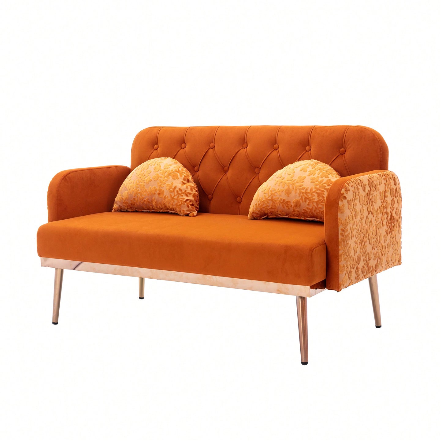 Comfy Orange Velvet Loveseat Sofa With Gold Metal Legs For Living Room And Bedroom Accent