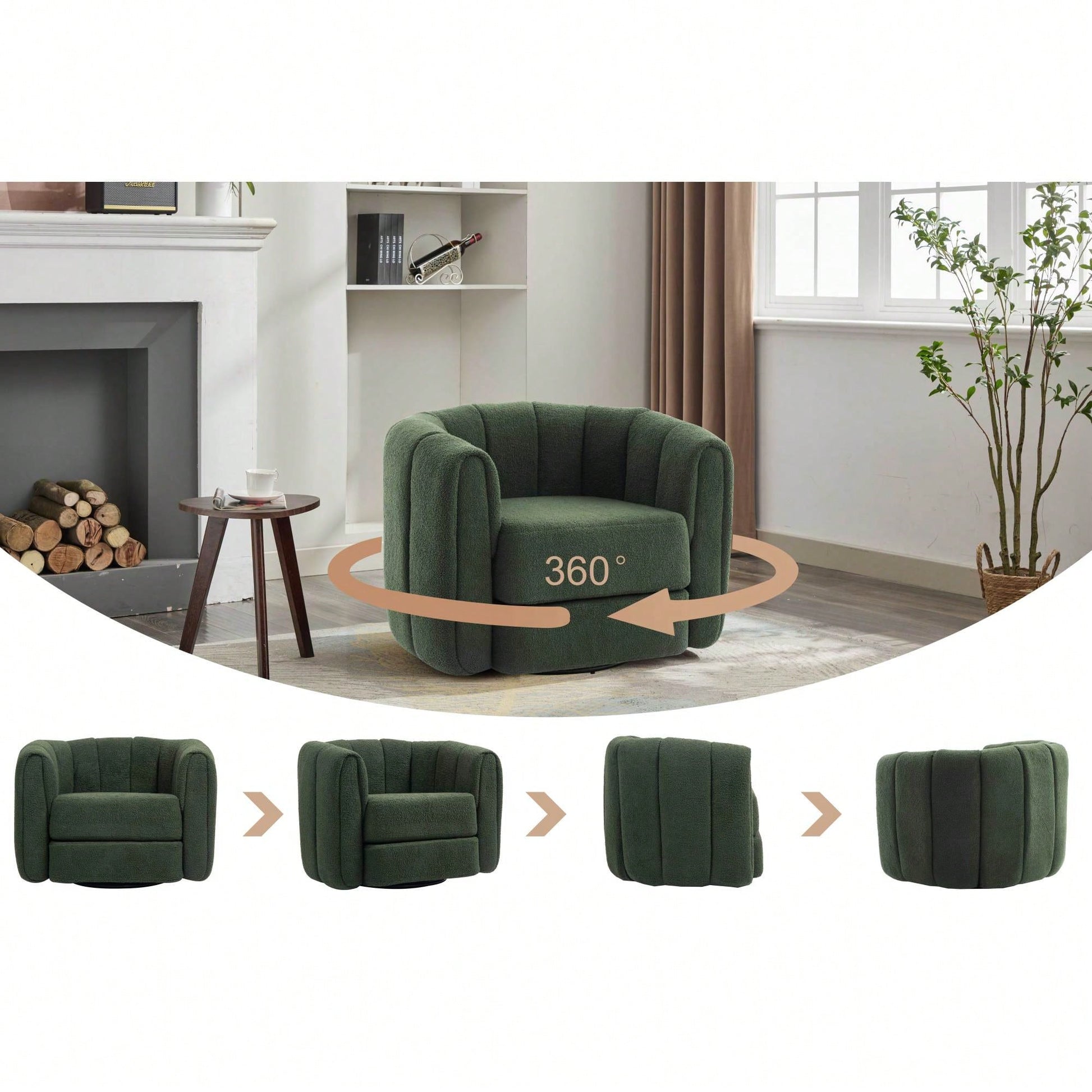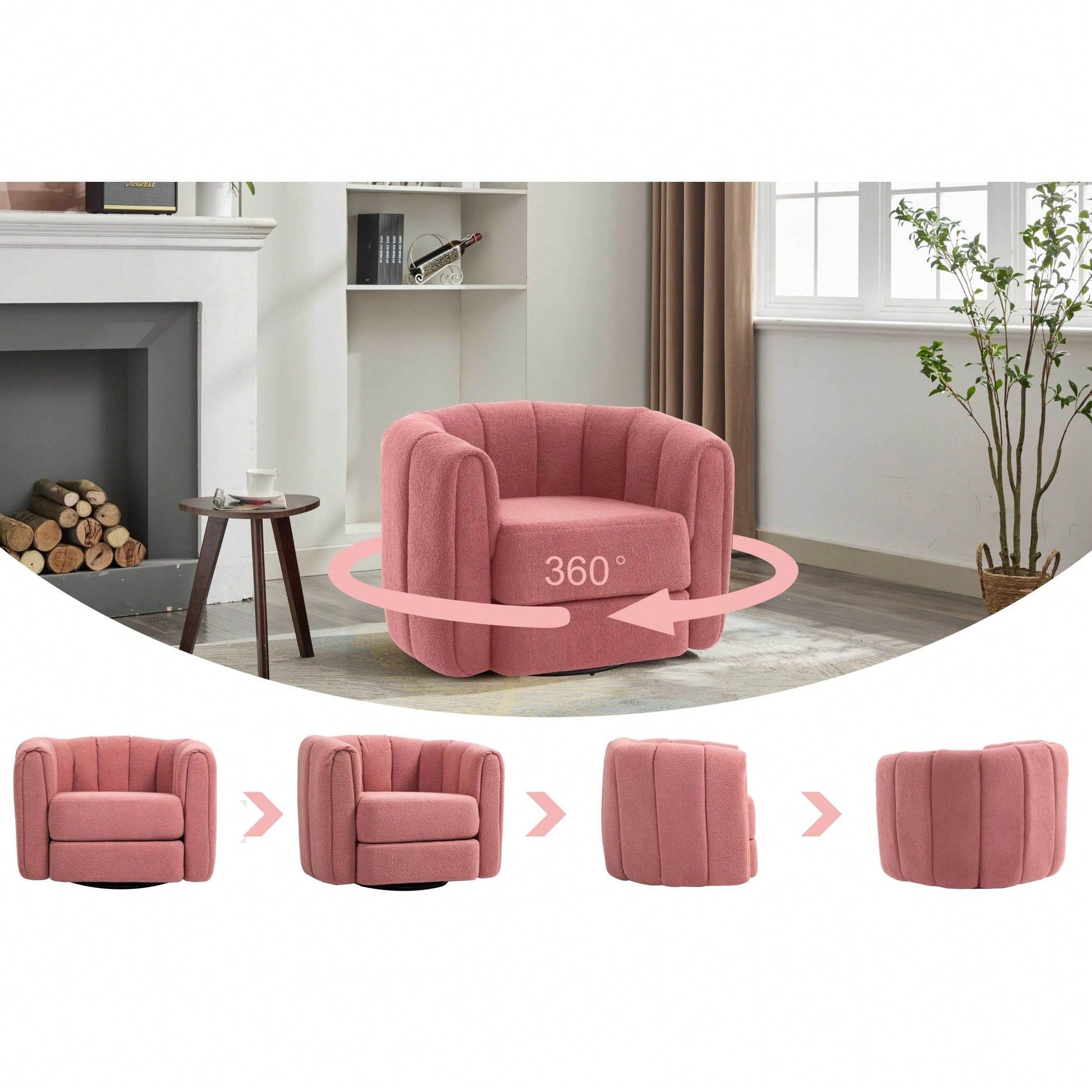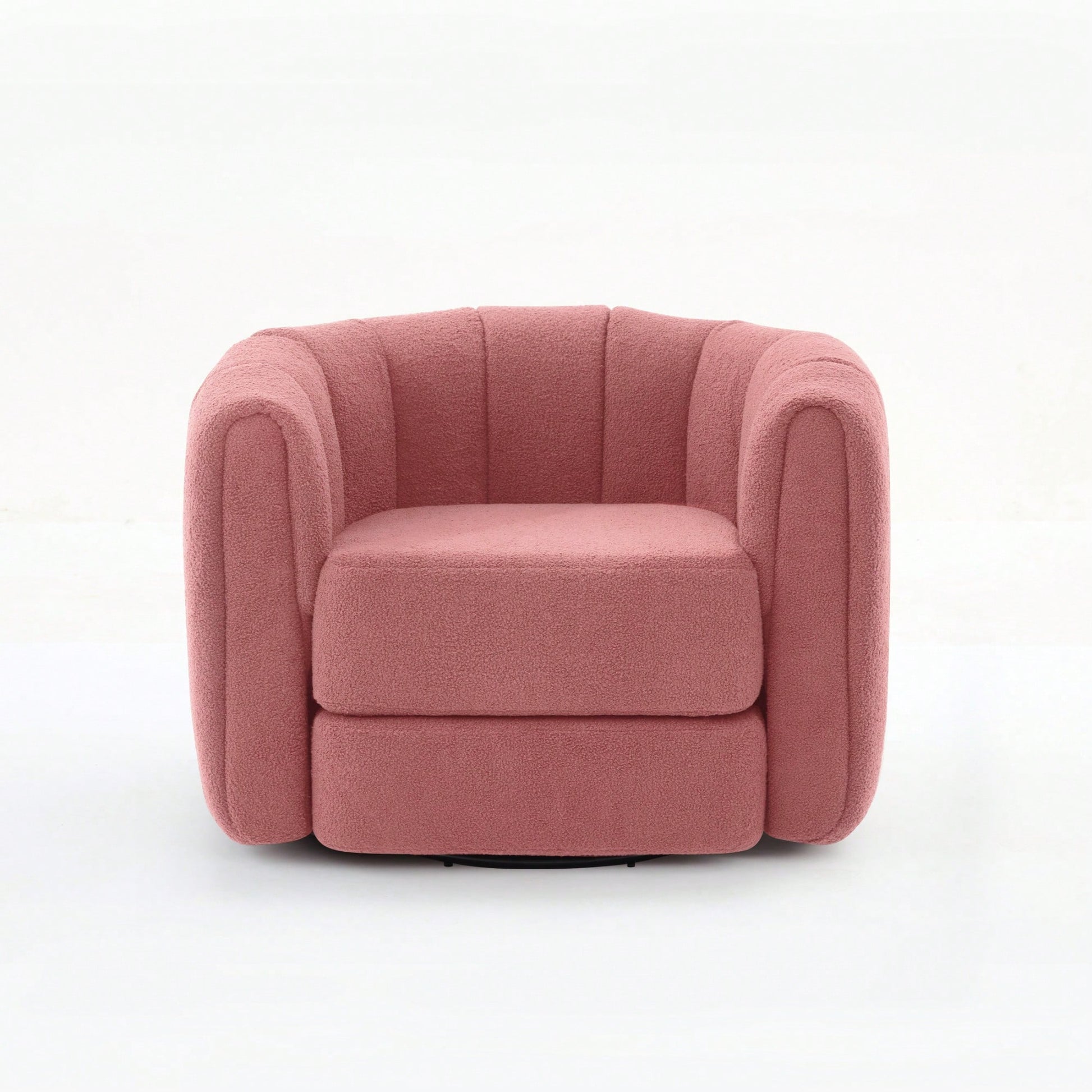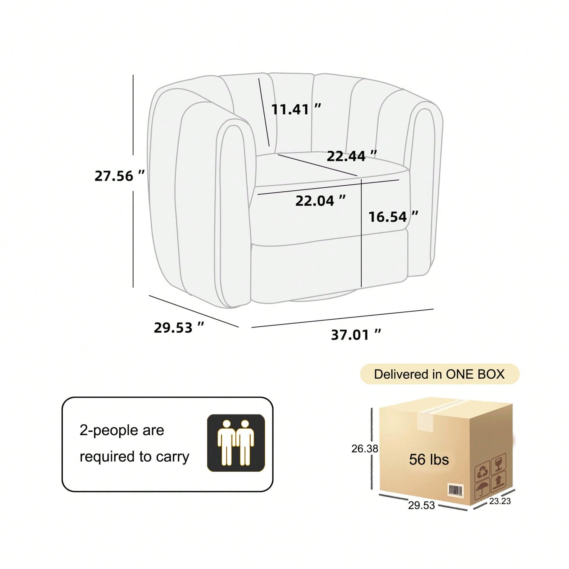 This comfy swivel accent chair is designed to enhance your living space with its modern style and practical functionality. The bucket design allows for effortless 360-degree rotation, making it easy to find your ideal seating position. The chair is clad in soft teddy fabric, providing a luxurious touch while being easy to maintain. Its sturdy construction ensures durability, accommodating up to 400 pounds. With a generous size of D30" x W37" x H27.6", it offers a snug retreat for relaxation. Assembly is a breeze, requiring only the installation of the armrest and back, making it a perfect addition to any cozy corner in your home.