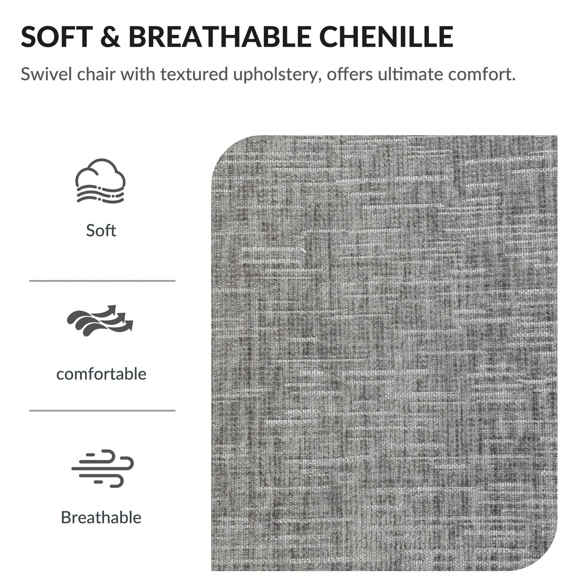 **Key Features:** - 360-degree swivel base with stylish wood accent for flexibility - Compact dimensions: D28.4" x W31.9" x H28.4" for versatile placement - Durable wood construction designed for long-lasting use - Upholstered in soft Chenille fabric with high-density sponge cushioning - Easy assembly with clear instructions and responsive customer support **Product Description:** This swivel accent chair is the perfect addition to any living room, offering both style and comfort. The heavy-duty 360-degree swivel base allows for easy movement, complemented by a tasteful wood accent that enhances its aesthetic appeal. With dimensions of D28.4" x W31.9" x H28.4", it provides a snug retreat or a plush backrest for ultimate relaxation. Crafted from high-quality wood, this chair is built to withstand daily use, making it ideal for work, gaming, or simply unwinding. The soft Chenille fabric surface and thickened seat cushion filled with high-density sponge ensure a comfortable seating experience for hours on end. **Specifications:** - Dimensions: D28.4" x W31.9" x H28.4" - Material: Chenille fabric, high-density sponge, wood base - Swivel: 360-degree swivel capability