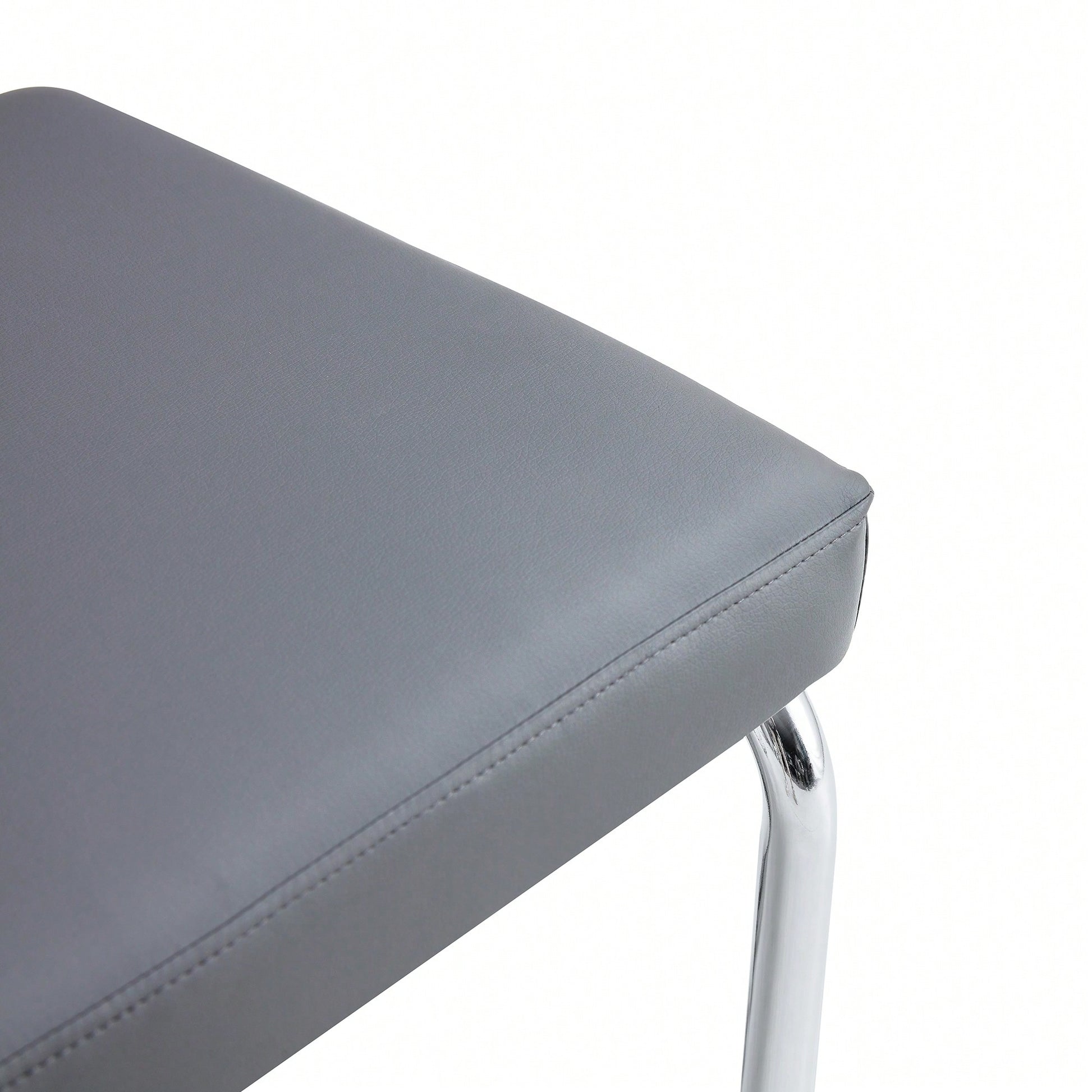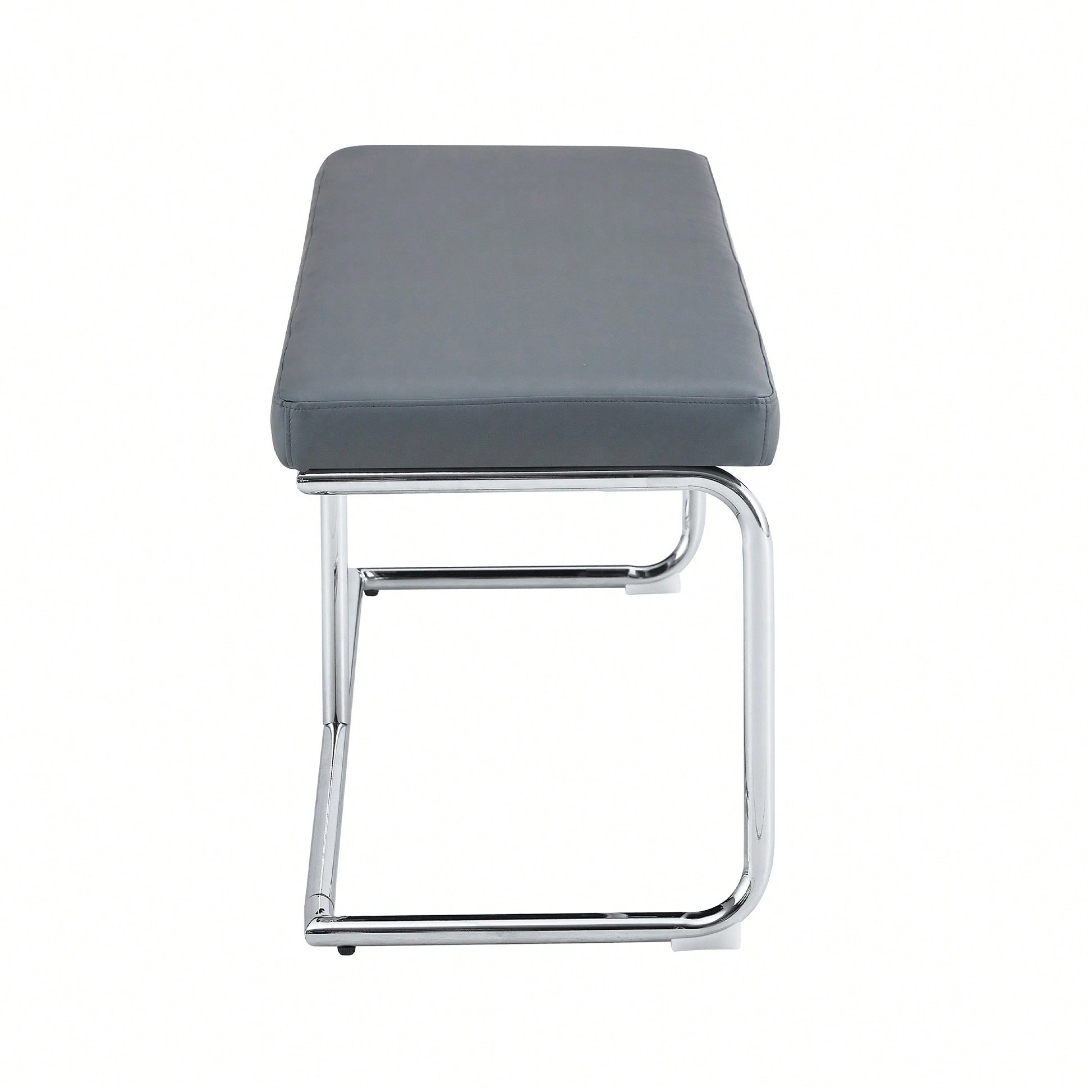 Contemporary 51.5 Inch Decorative Stainless Steel Bench With Faux Leather For Entryway Bedroom Dining And Kitchen Easy Assembly Grey