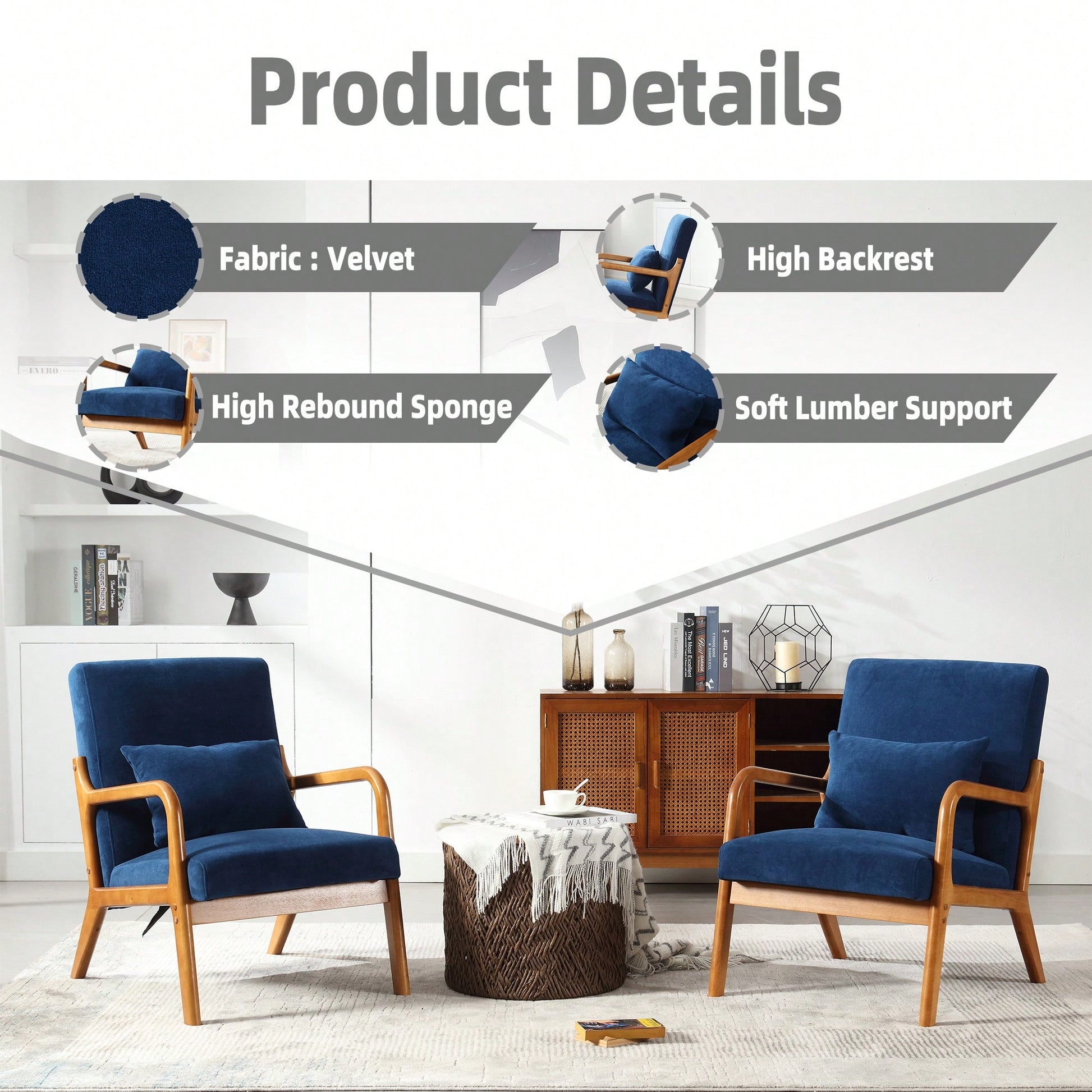 This modern accent chair is designed with a focus on both comfort and style, perfect for any living space. Its solid wood frame and legs provide exceptional stability and durability, while the thick foam padding and soft velvet upholstery ensure a comfortable seating experience. The chair's elegant design complements various interior decor styles, making it an excellent addition to your home. Despite its sleek appearance, the chair is sturdy enough to support up to 300 pounds, accommodating a wide range of users. The versatile chair fits seamlessly in various settings, from relaxing with a book to gaming. Its ergonomic design features slightly reclining wooden arms for added comfort, providing a perfect spot to unwind. Easy to assemble, this accent chair will enhance your space in no time.