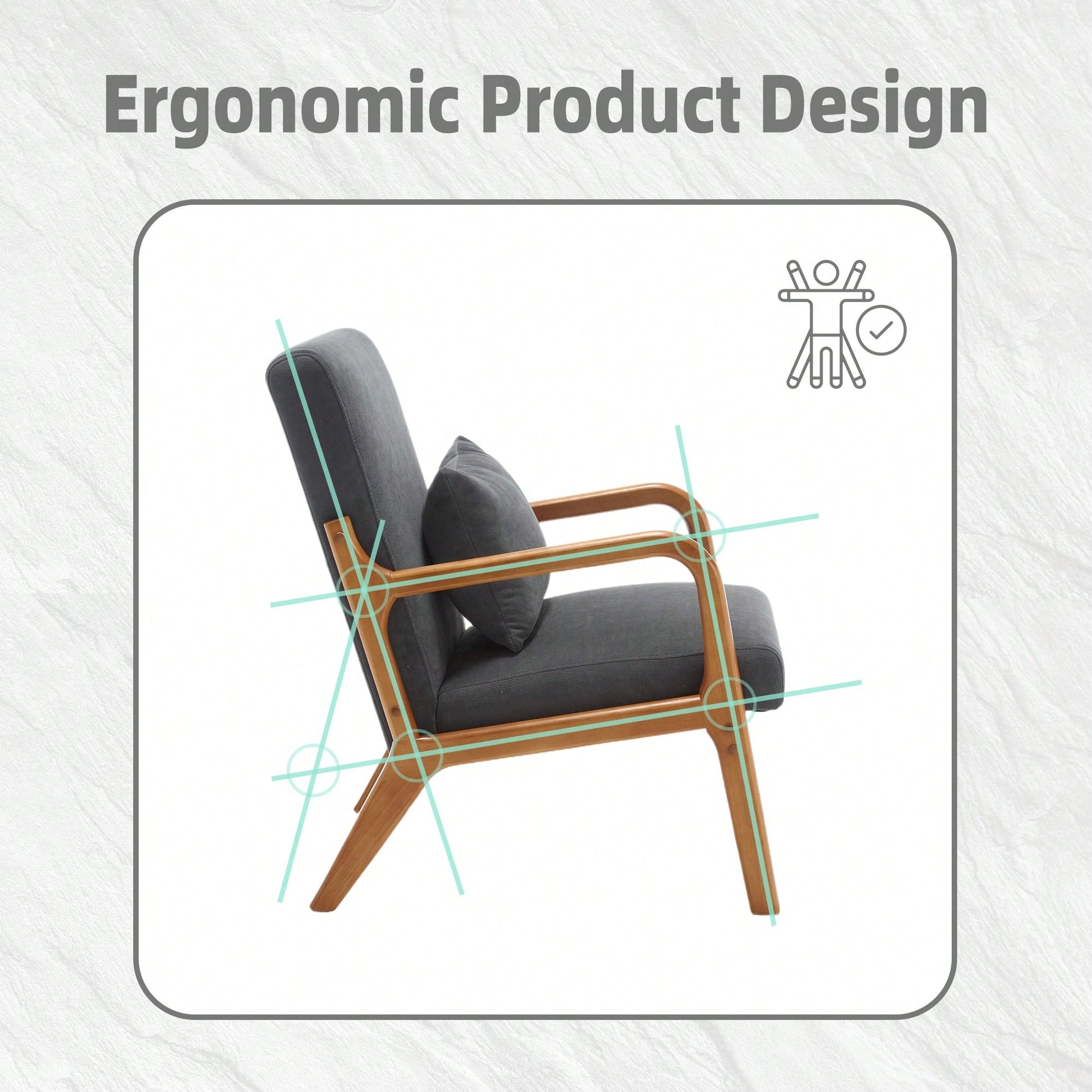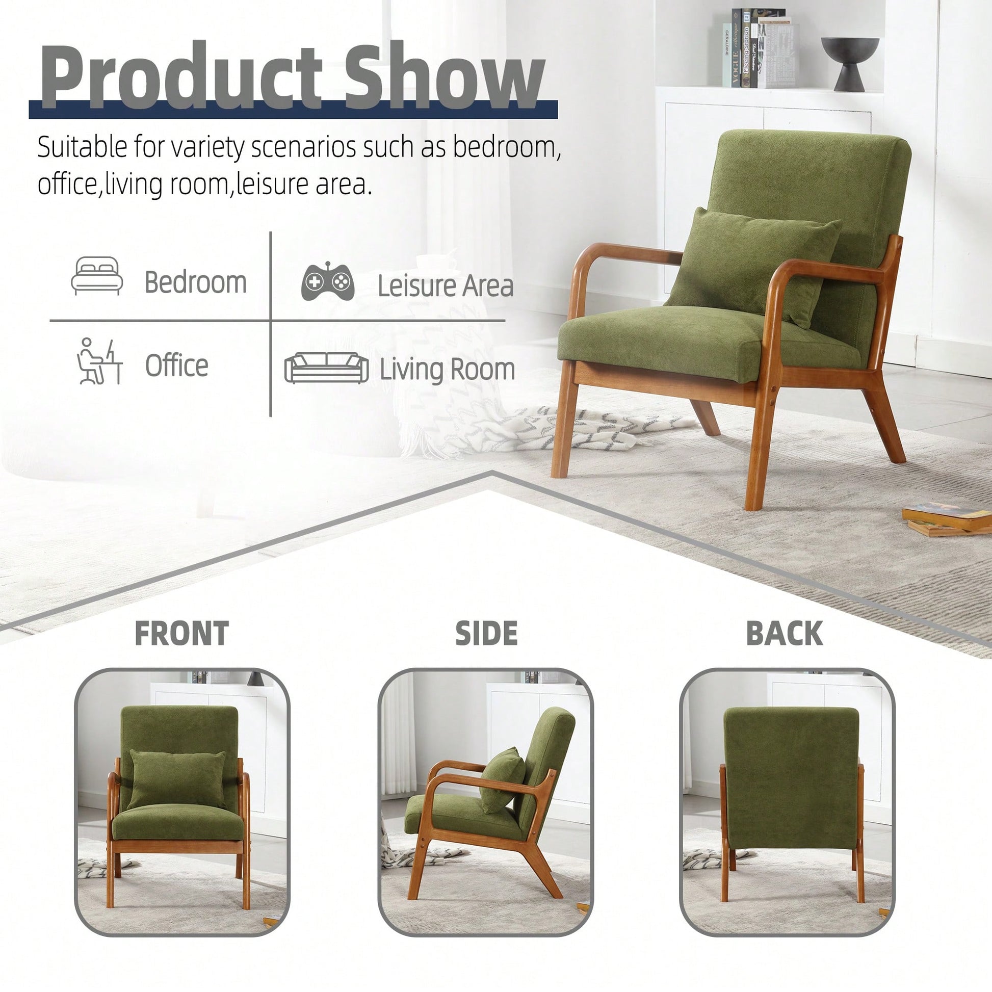 Contemporary Accent Chair With Solid Wood Frame And Pillow For Living Room, Bedroom, Or Guest Room - Beige Lounge Armchair