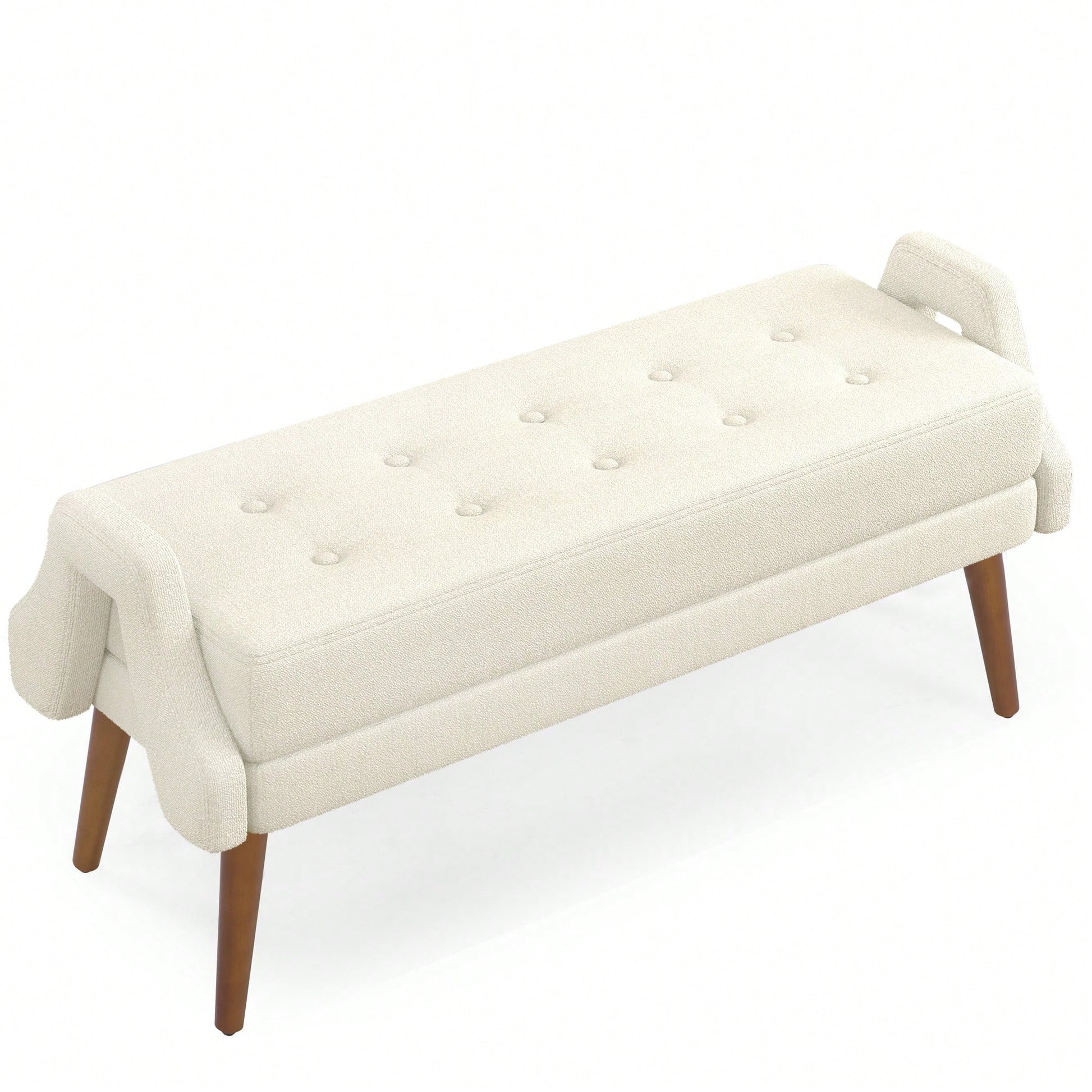 Contemporary Beige Living Room Bench with Soft Cushion, Unique Armrests, and Rubber Wood Legs for Living Rooms, Bedrooms, and Entrances