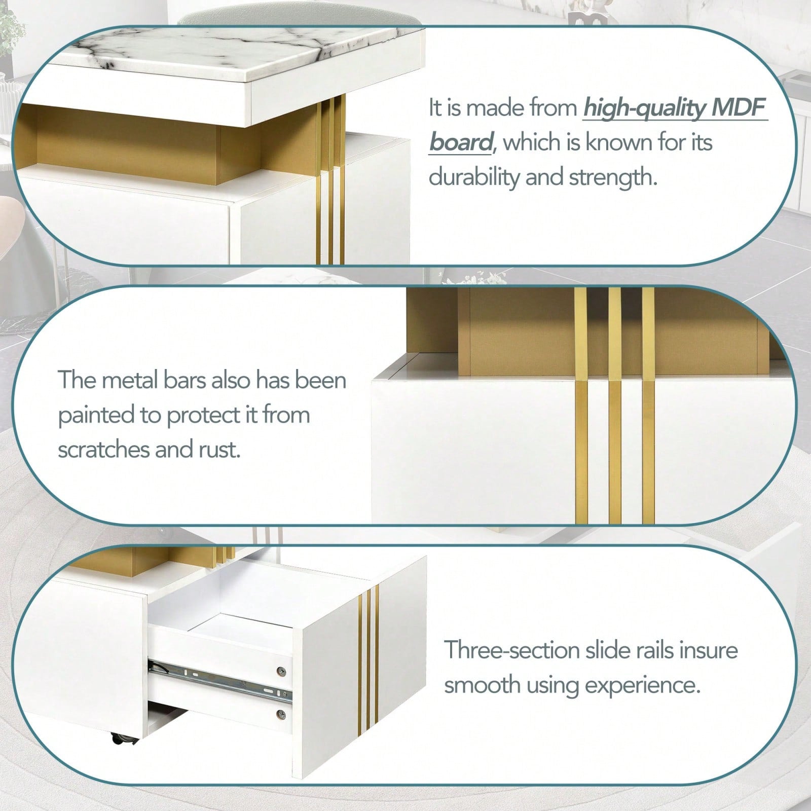 - Table Top Material: MDF with Painted Finish