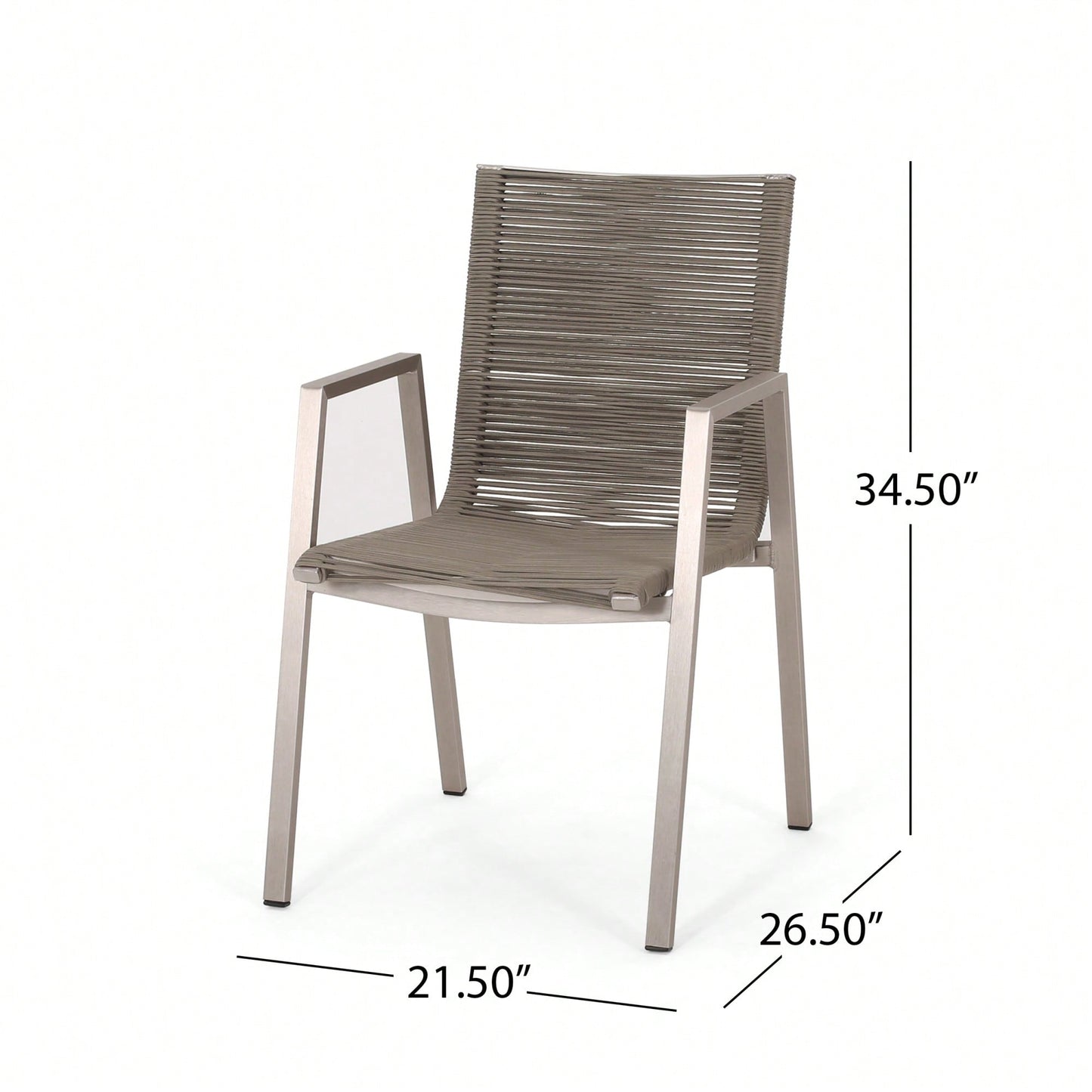 Contemporary Outdoor Aluminum Dining Chairs With Rope Seat Set Of 2 Silver And Taupe