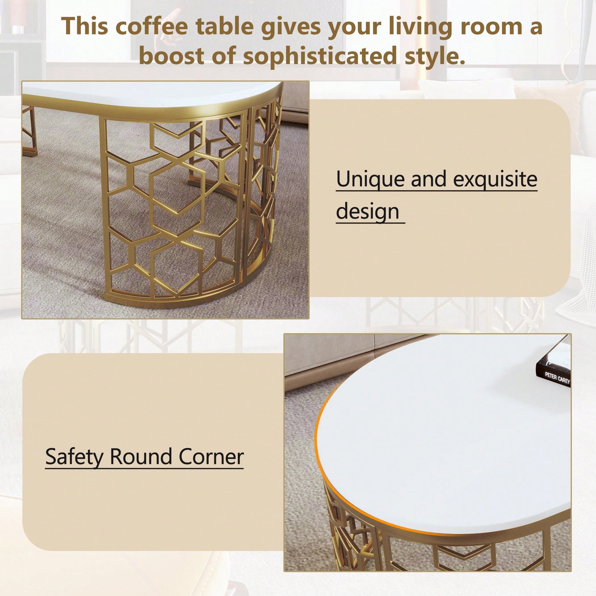 This modern oval coffee table features a stunning cut-out pattern in its gold-colored stainless steel frame, making it a striking centerpiece for any chic living space. The high-quality stainless steel construction ensures long-lasting durability and stability while resisting rust and corrosion. The elegant oval shape adds a soft touch to the table's contemporary design, creating an inviting atmosphere. With its smooth surface, this coffee table is low-maintenance and easy to clean, requiring just a simple wipe down to keep it looking pristine. Ideal for multiple use scenarios, it blends seamlessly with a variety of furniture styles, enhancing the overall aesthetic of your home.