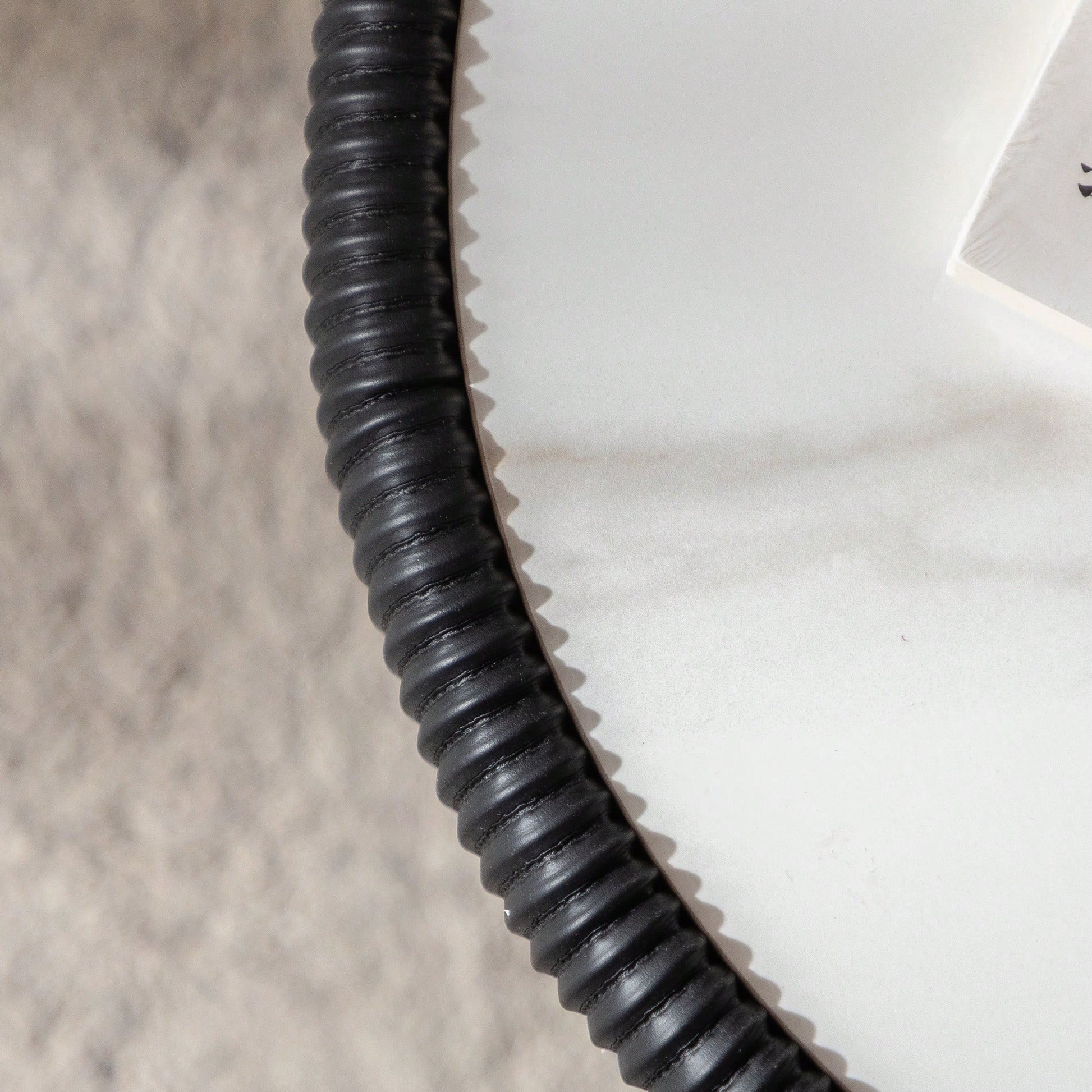 Contemporary Round Drum Coffee Table With Sintered Stone Top PU Leather And Metal Base Black 19.7 Inches