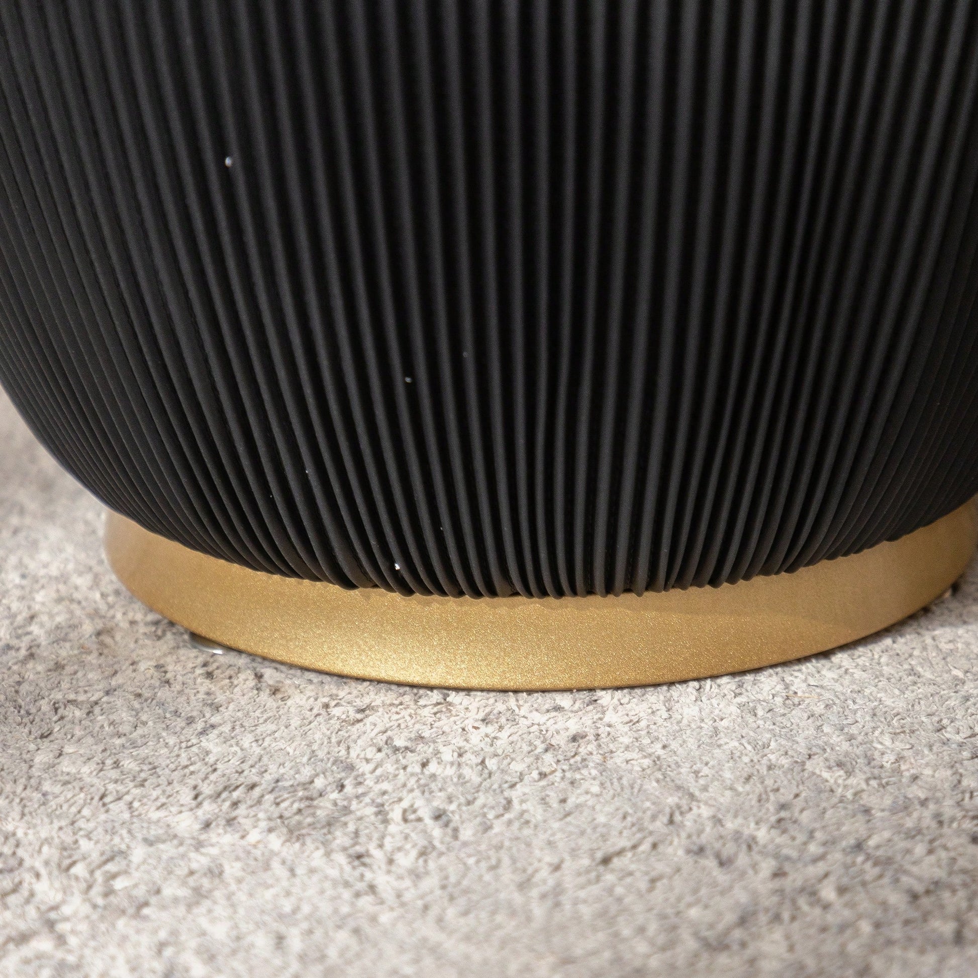1. Key Features - Drum-shaped design serves as a striking focal point in any room - Wrapped in dark grey PU leather with raised edges to prevent items from slipping - Top made from sintered stone, offering exceptional stability and resistance to scratches, stains, and heat - Base constructed from stylish gold-colored aluminum alloy for durability - Arrives fully assembled for hassle-free setup 2. Product Description This modern round drum coffee table combines elegance and functionality, making it a perfect addition to any decor. Its stunning drum-shaped design draws attention, while the dark grey PU leather exterior and raised edges provide both style and practicality. The sintered stone top ensures durability, resisting scratches, stains, and heat, while the gold-colored aluminum alloy base adds a touch of sophistication. Ideal for various settings, this versatile piece can be used as a coffee table, end table, or decorative accent in your living room, bedroom, office, or lounge area. Specifications - Dimensions: 19.7 inches in diameter - Material: PU leather, sintered stone, aluminum alloy - Color: Black with gold-colored base