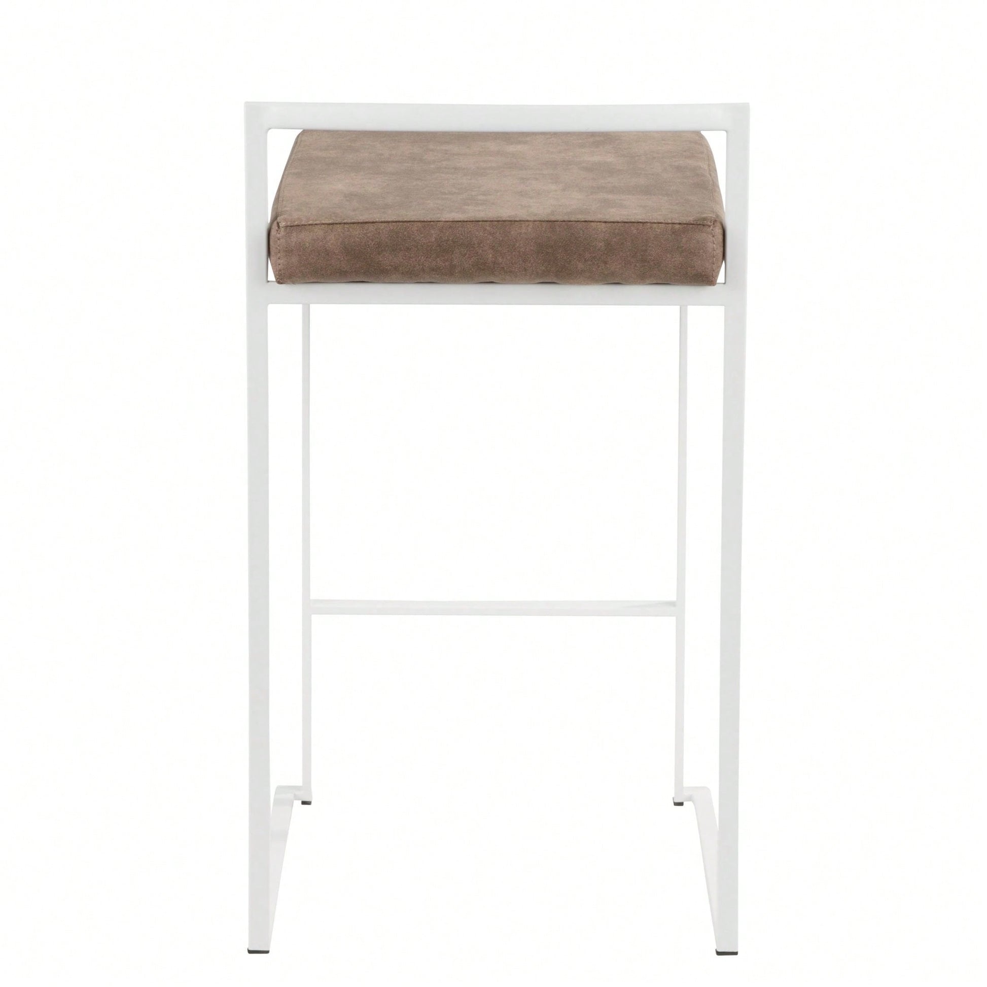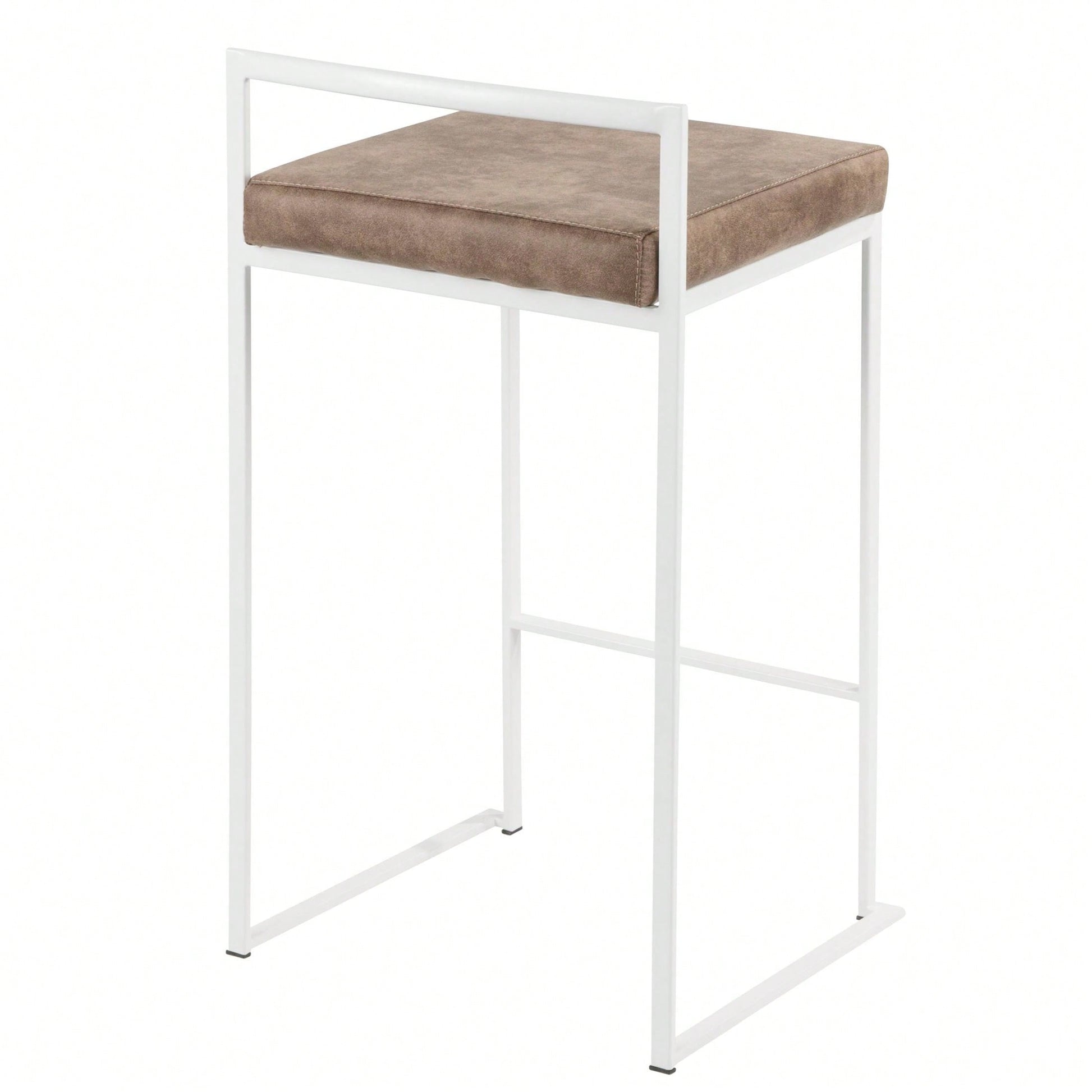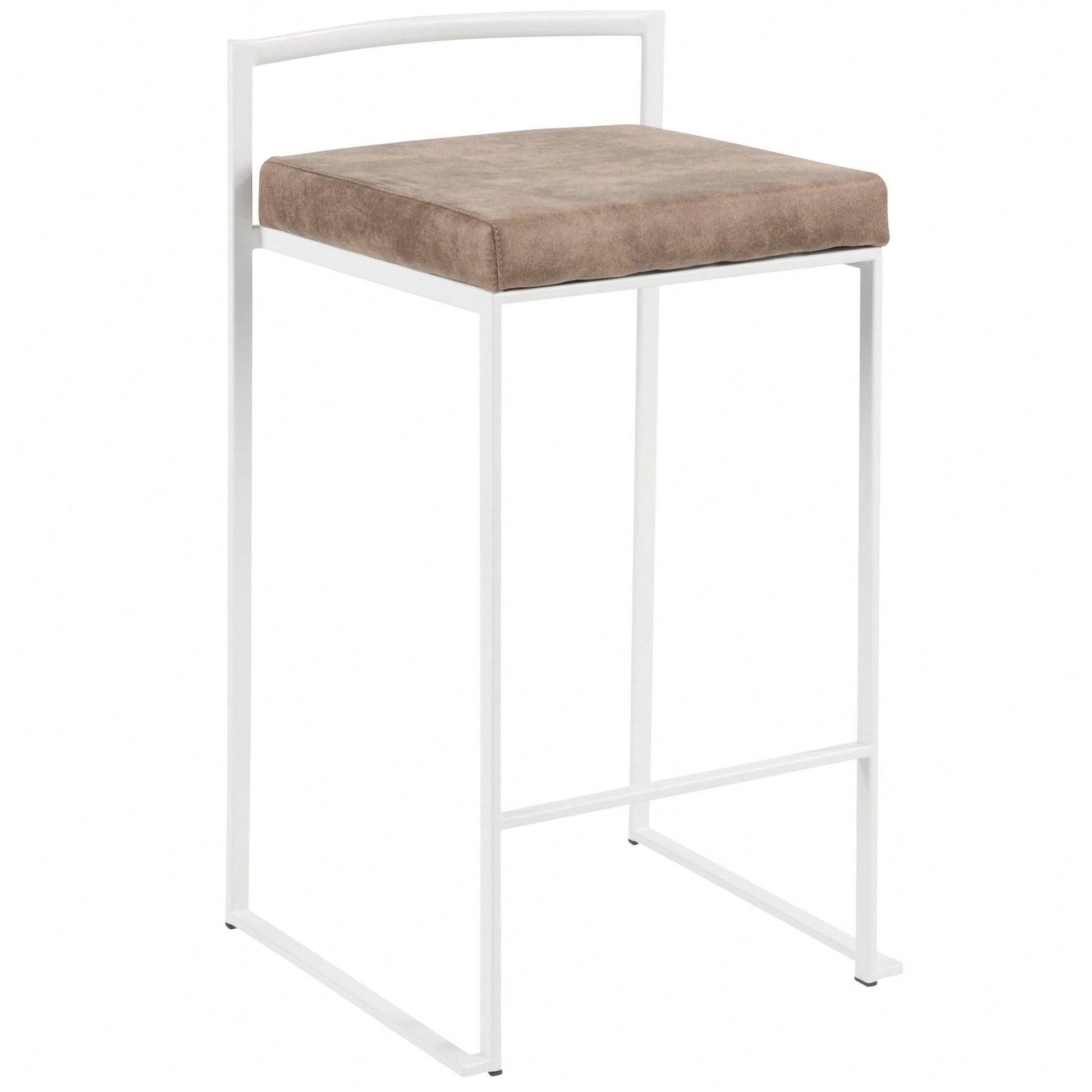 Contemporary Stackable Counter Stool In White With Brown Cowboy Fabric Cushion