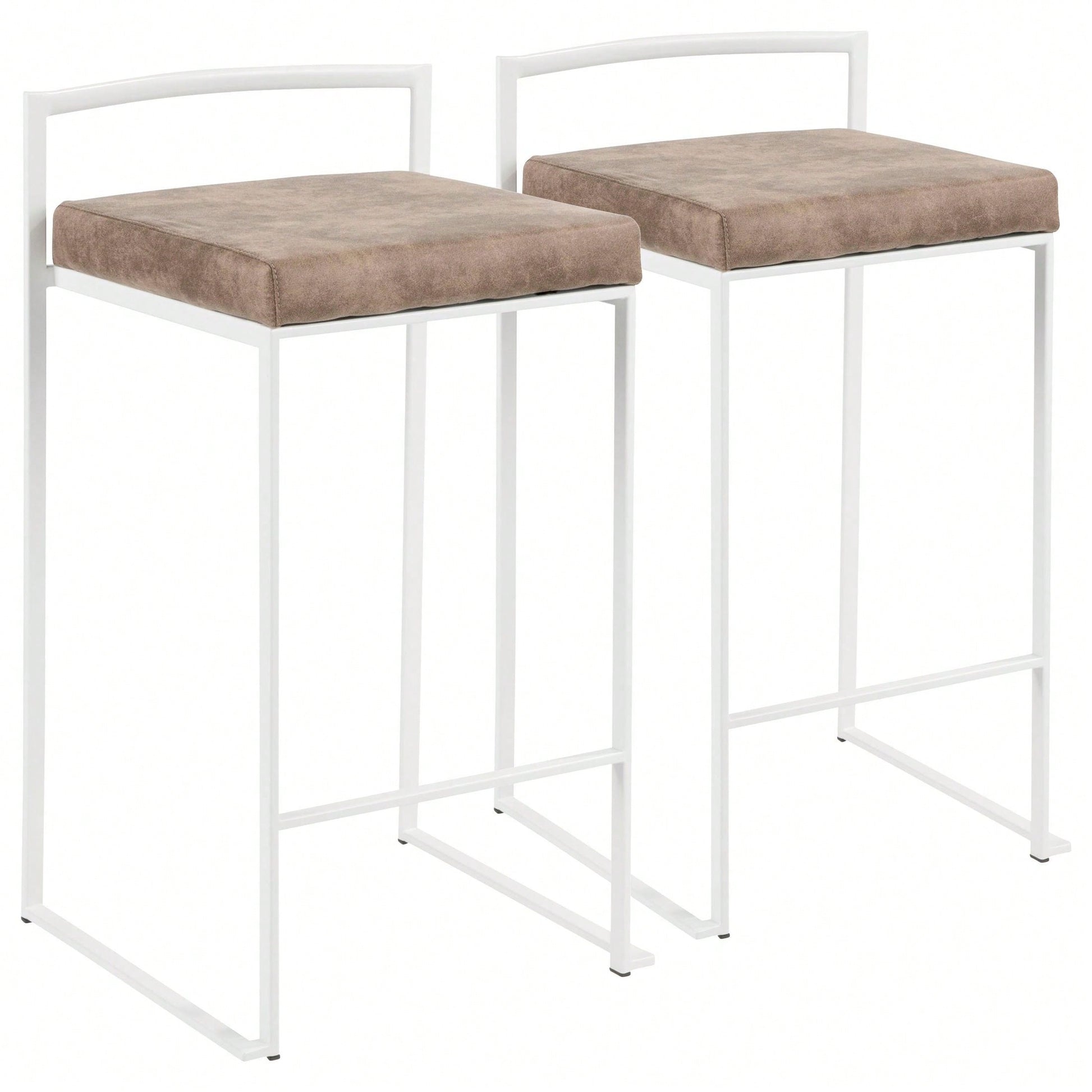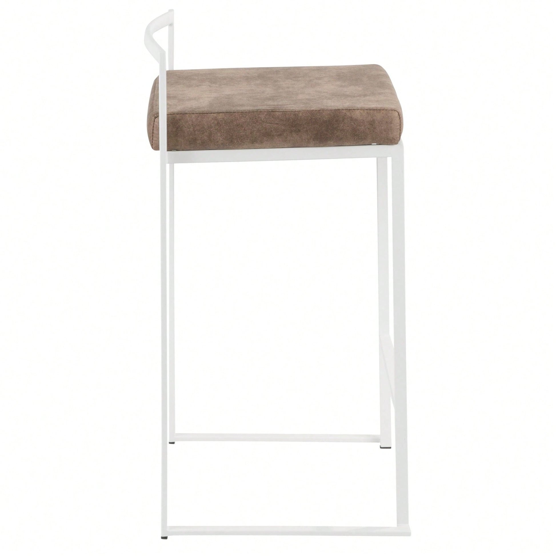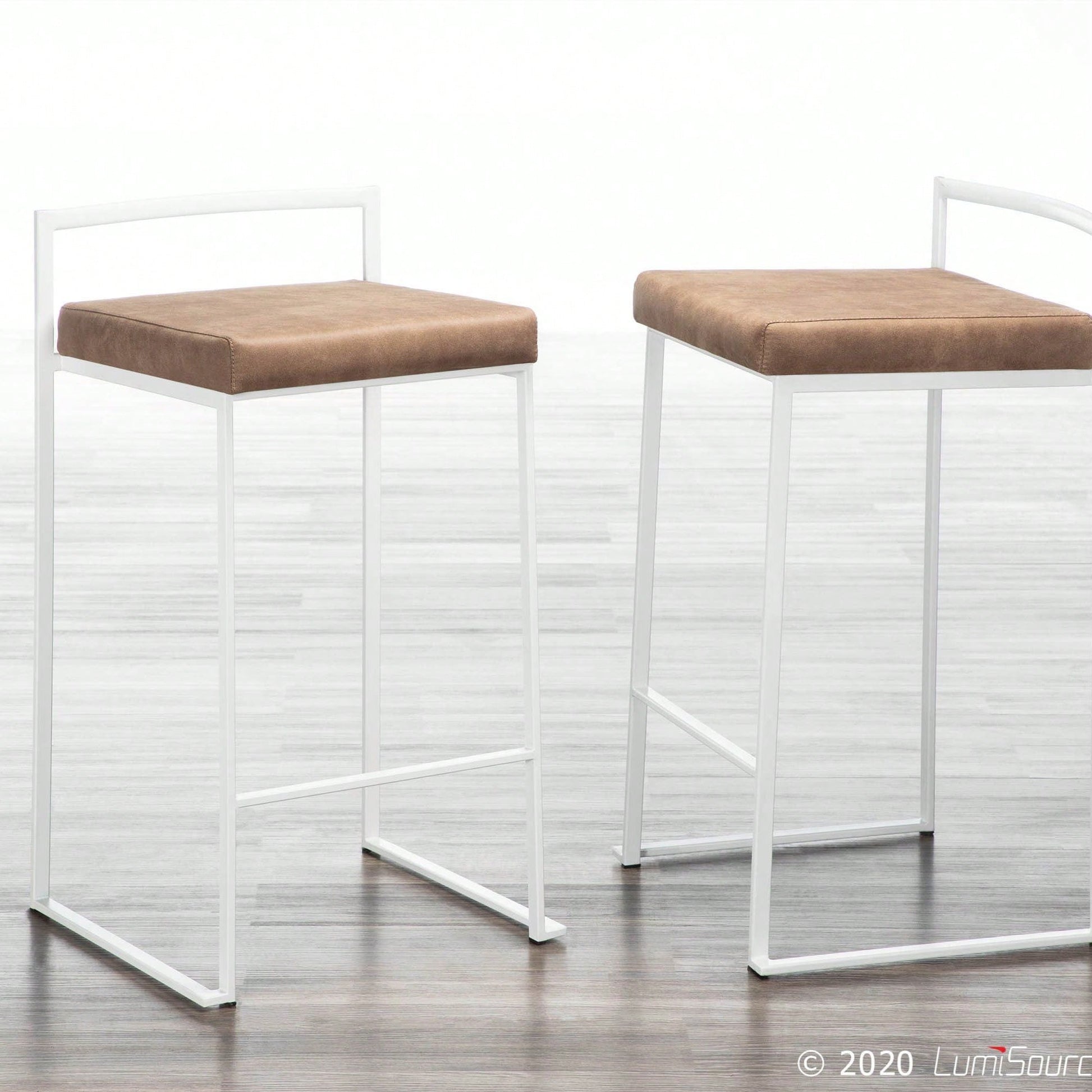 Contemporary Stackable Counter Stool In White With Brown Cowboy Fabric Cushion
